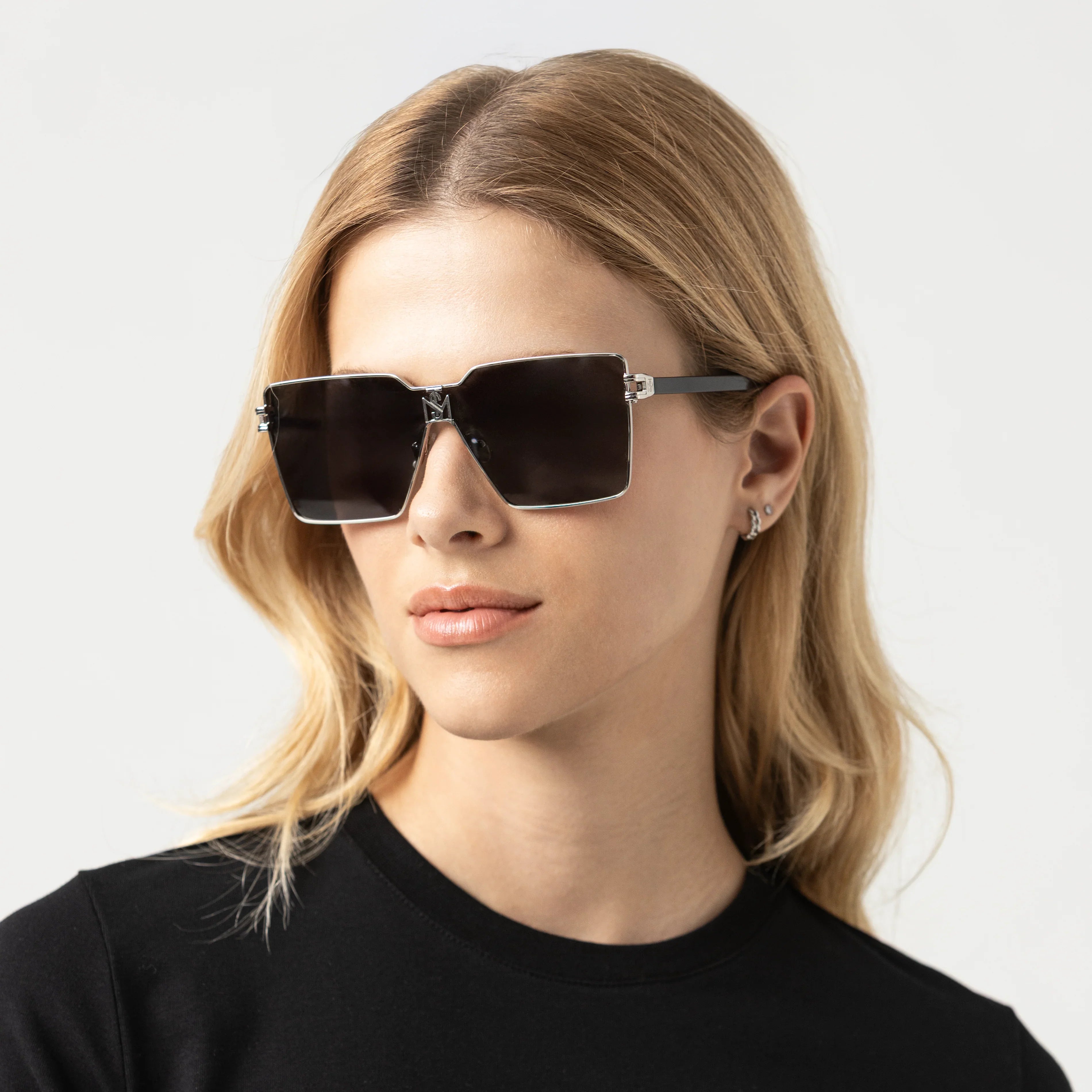 ALDA SUNGLASSES SHINY SILVER/BLACK TIPS BLACK SOLID GREY