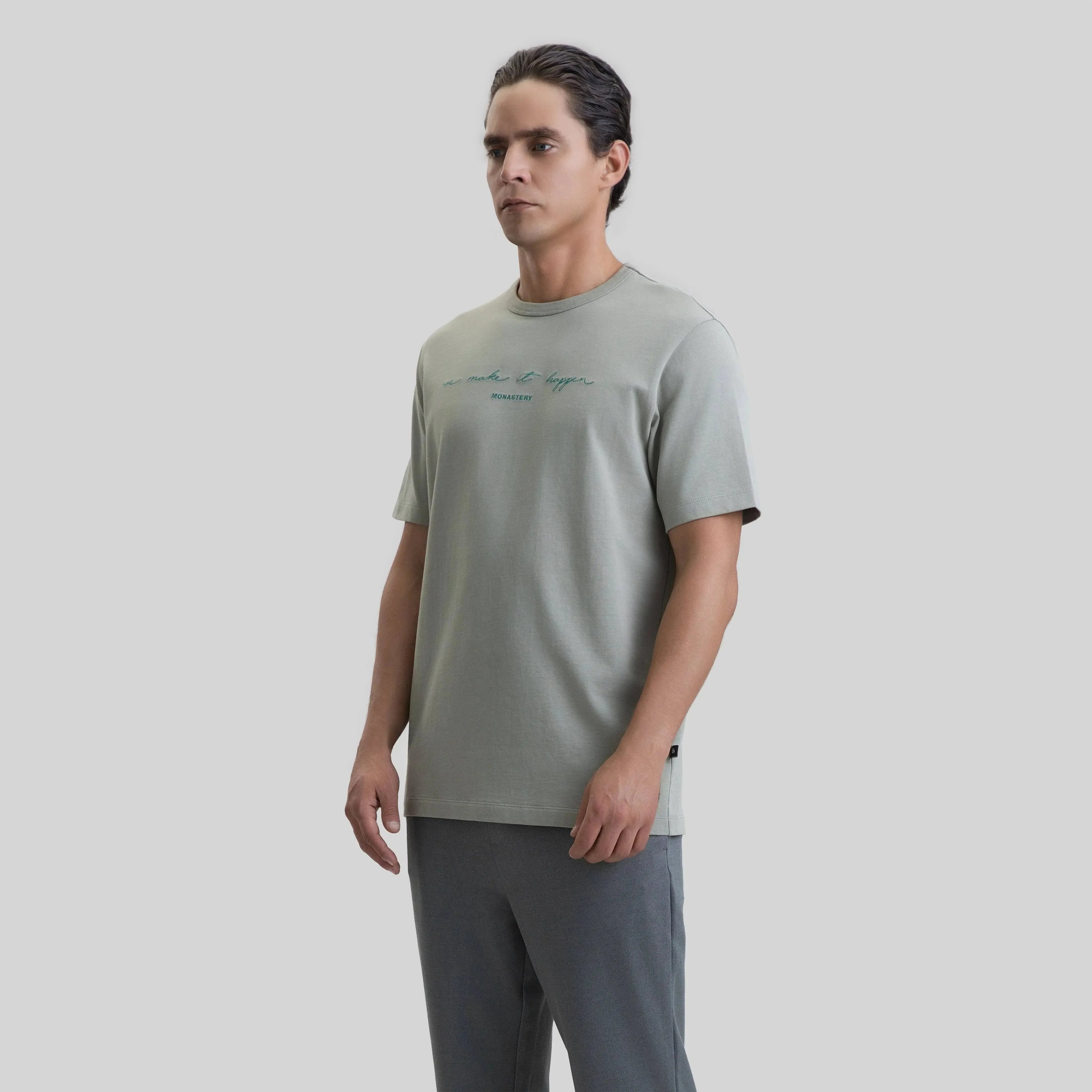 T-shirt masculina en algodón Peruano exclusivo para Monastery, elaborada en silueta cuello sesgo, que presenta un bordado en centro frente, con nuestra frase en cursiva y logo Monastery. Alpha es una prenda con un arte icónico renovado, que la convierte en un artículo muy versátil para combinar con tu vestuario.