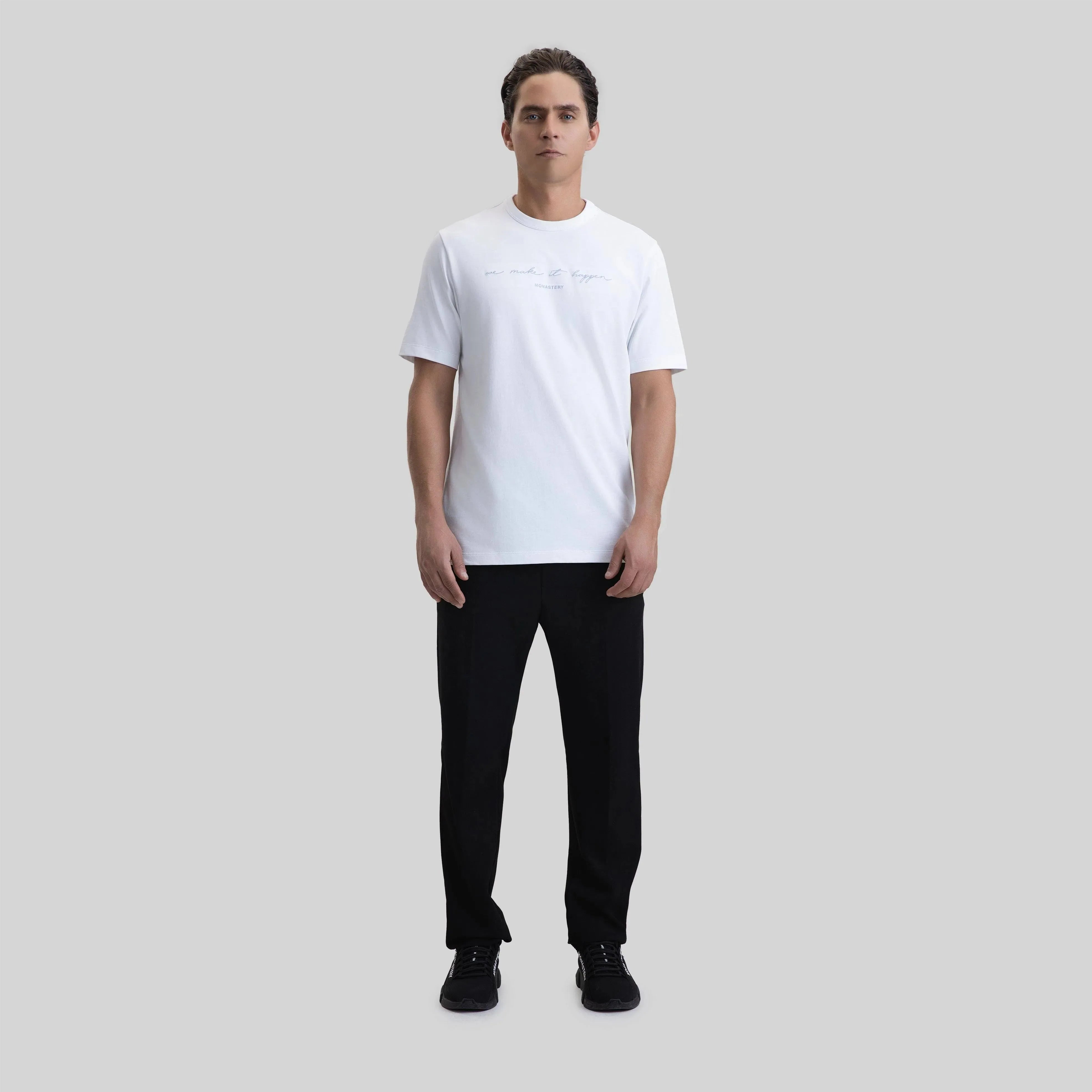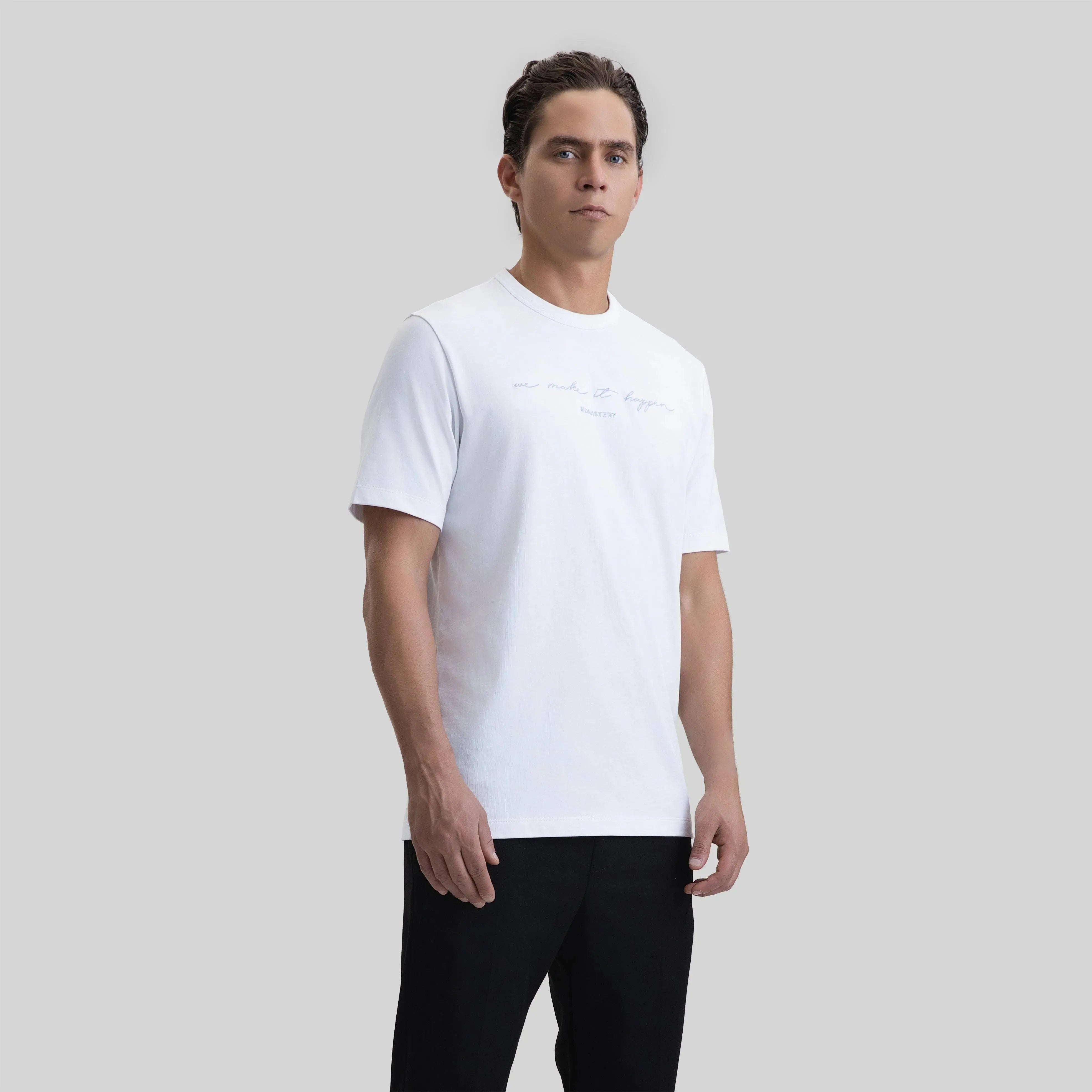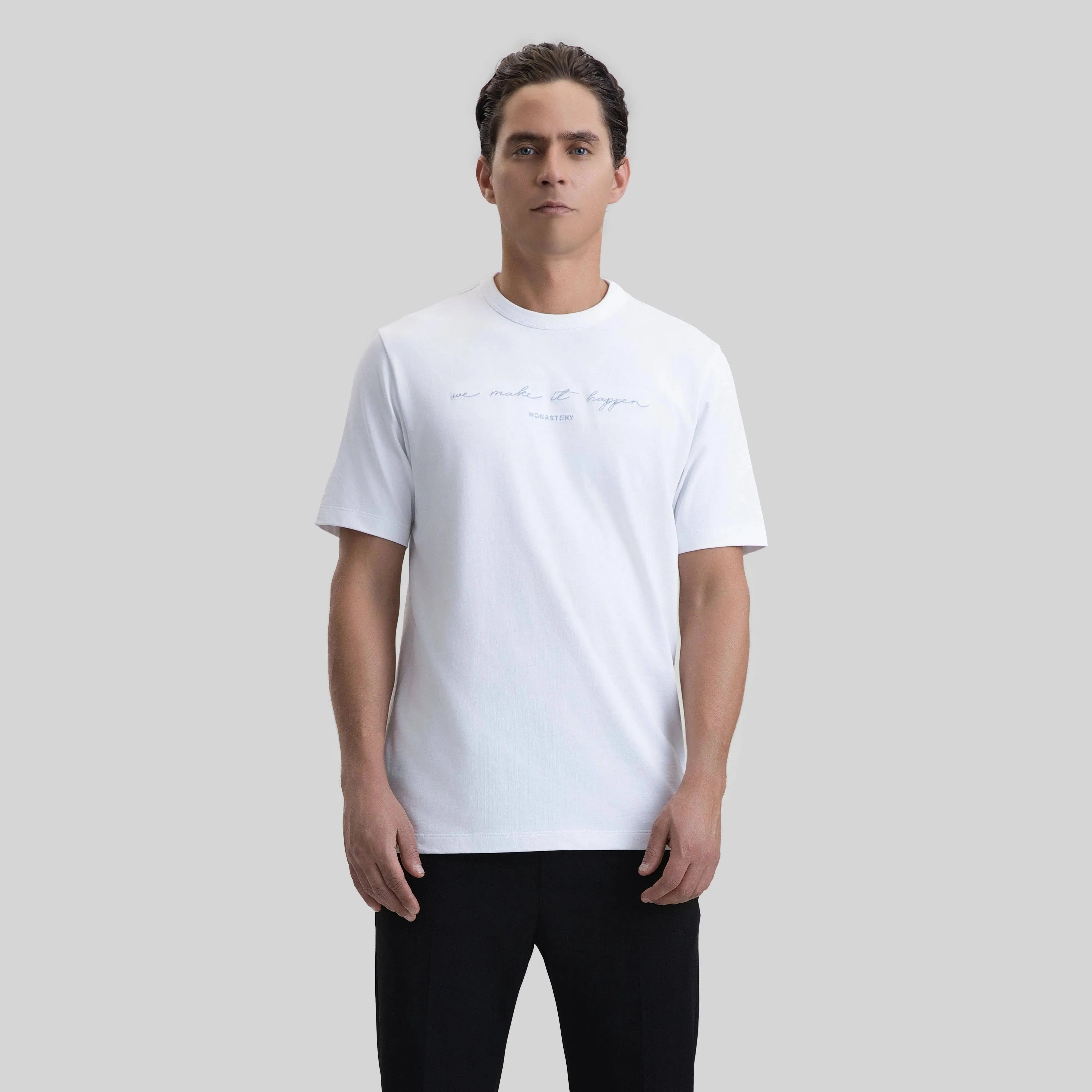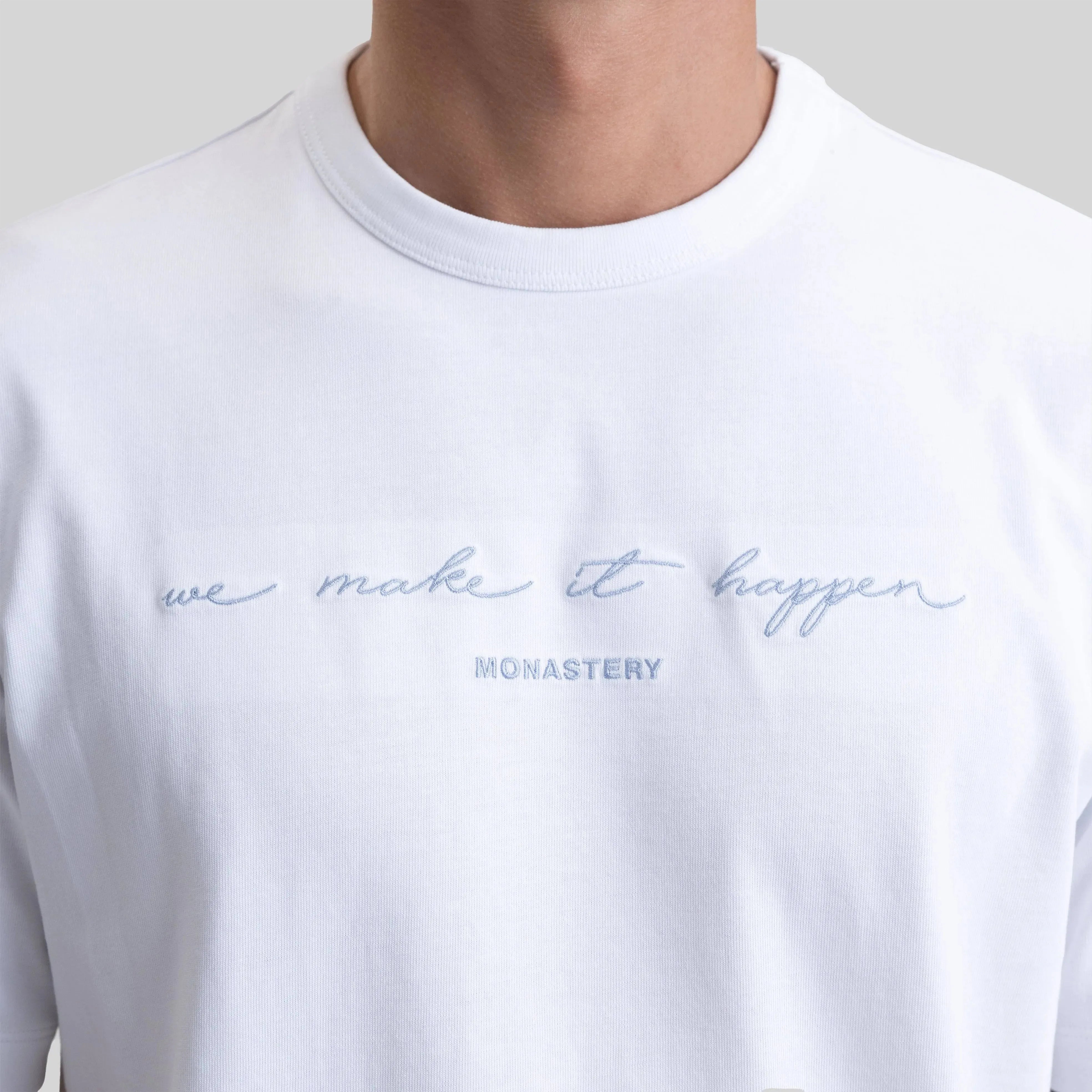 T-shirt masculina en algodón Peruano exclusivo para Monastery, elaborada en silueta cuello sesgo, que presenta un bordado en centro frente, con nuestra frase en cursiva y logo Monastery. Alpha es una prenda con un arte icónico renovado, que la convierte en un artículo muy versátil para combinar con tu vestuario.
