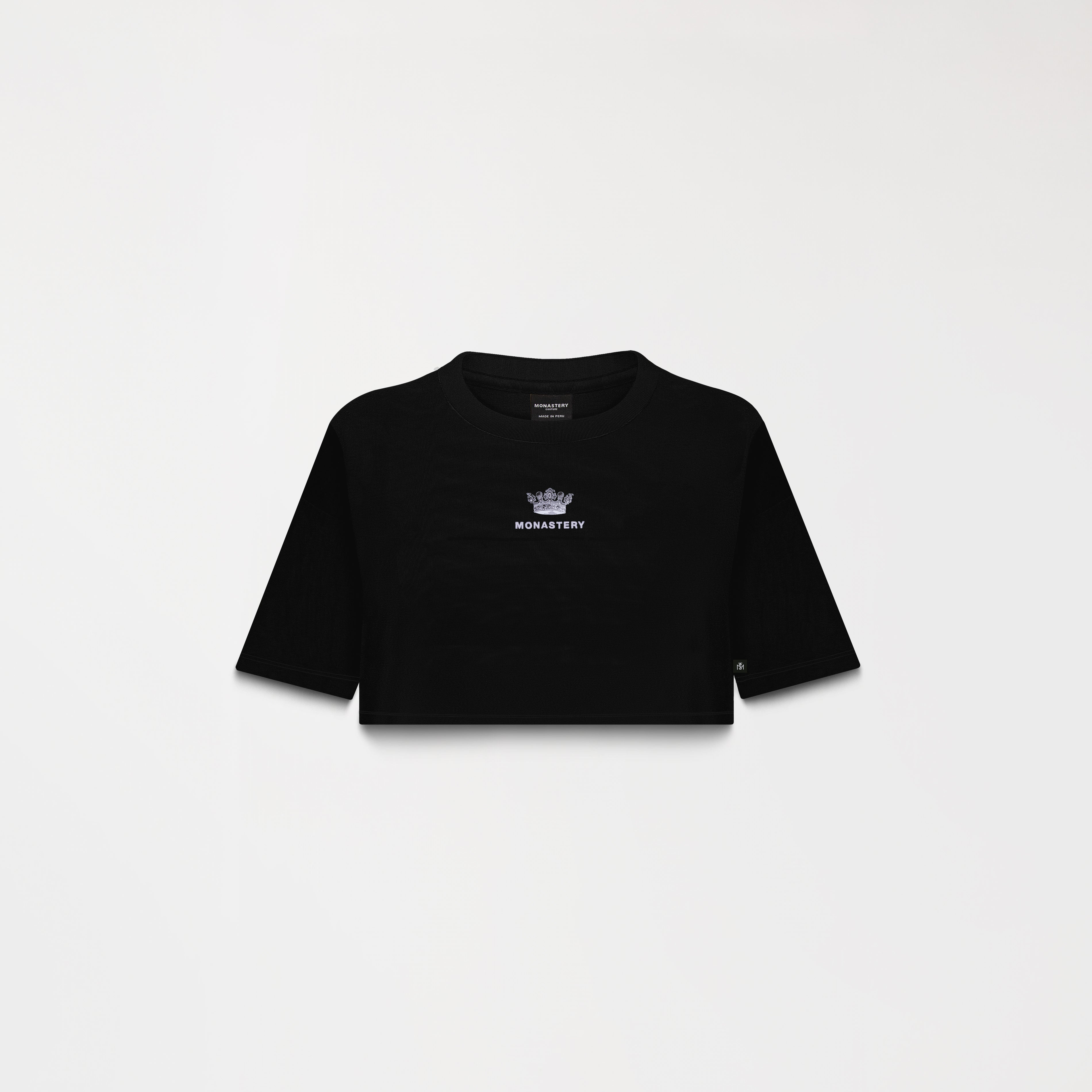 Crop top para mujer en algodón peruano exclusivo para Monastery, elaborada en silueta pequeña, Su corte holgado y corto lo hace ideal para un look fresco y casual. Con un color beige neutro y detalles en contraste, es una prenda versátil que se adapta a diversas ocasiones, Esta prenda presenta en frente un arte exclusivo para la colección The King y nuestro icónico logo Monastery en técnica flock, este crop top es ideal para quienes buscan un look cómodo y sofisticado gracias a su gran base textil y diseño.