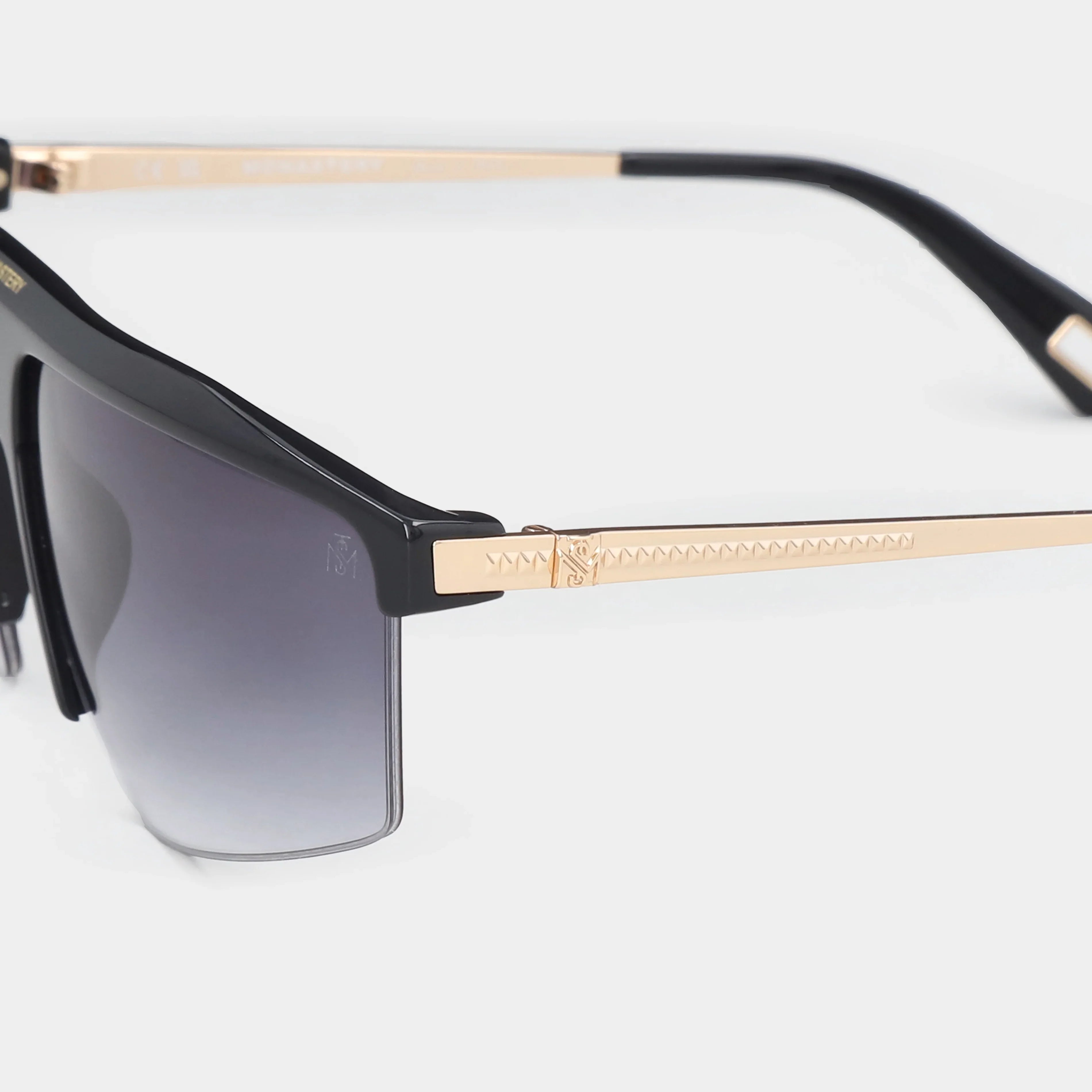 MSS2413-C11-63 ARAN SUNGLASSES MEN BLACK SHINY GOLD GRADIENT GREY