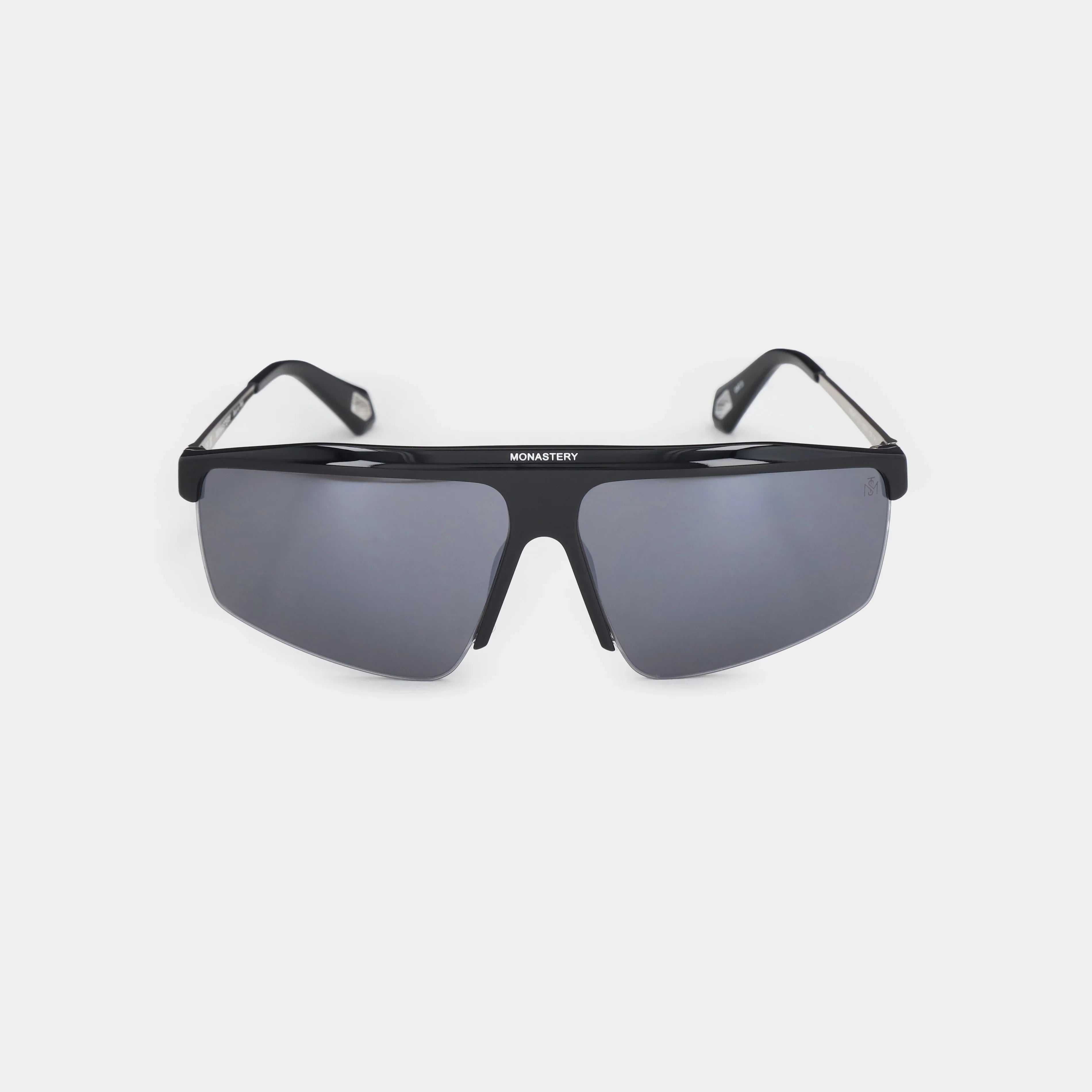 ARAN SUNGLASSES MEN BLACK SHINY SILVER SOLID GREY WITH LIGHT MIRROW