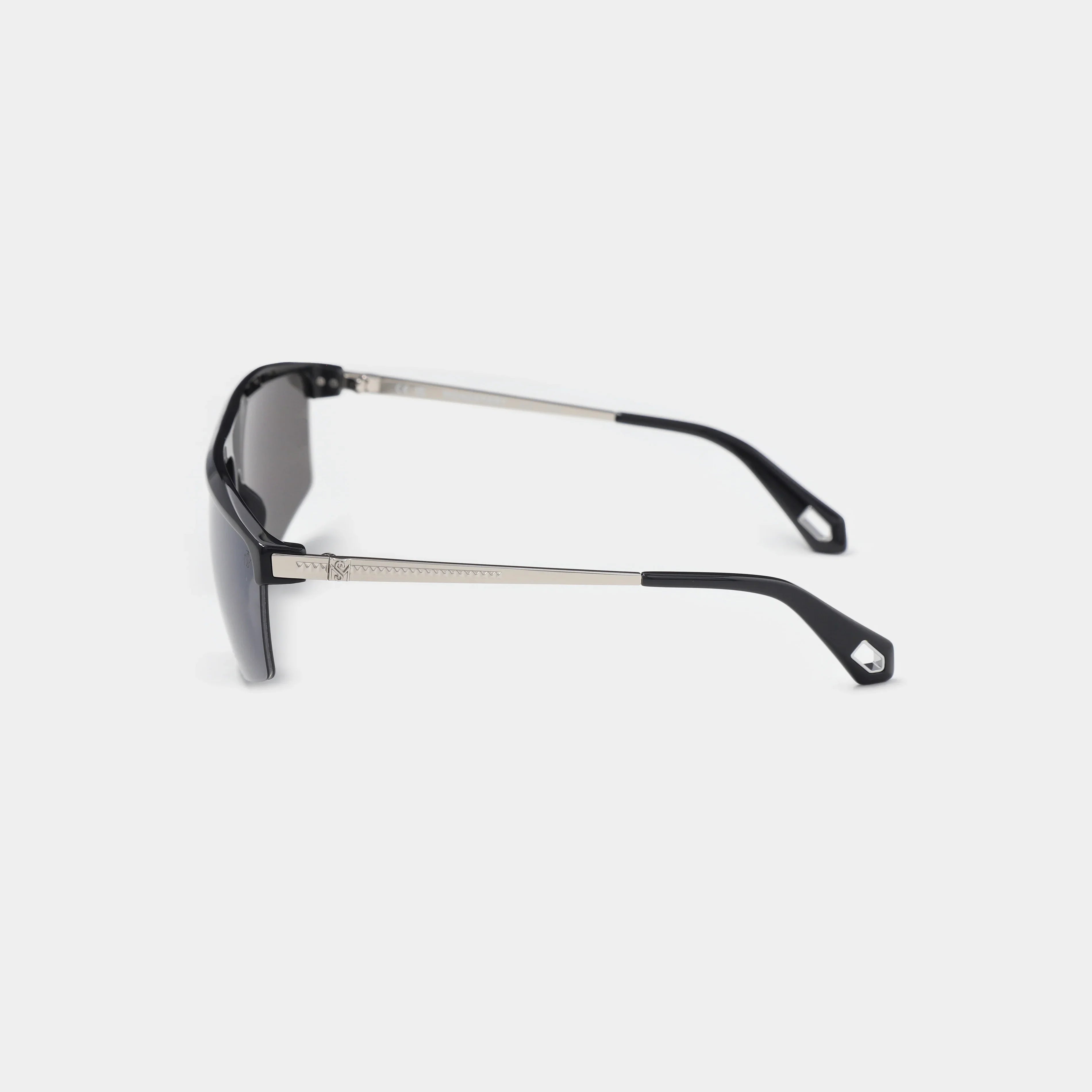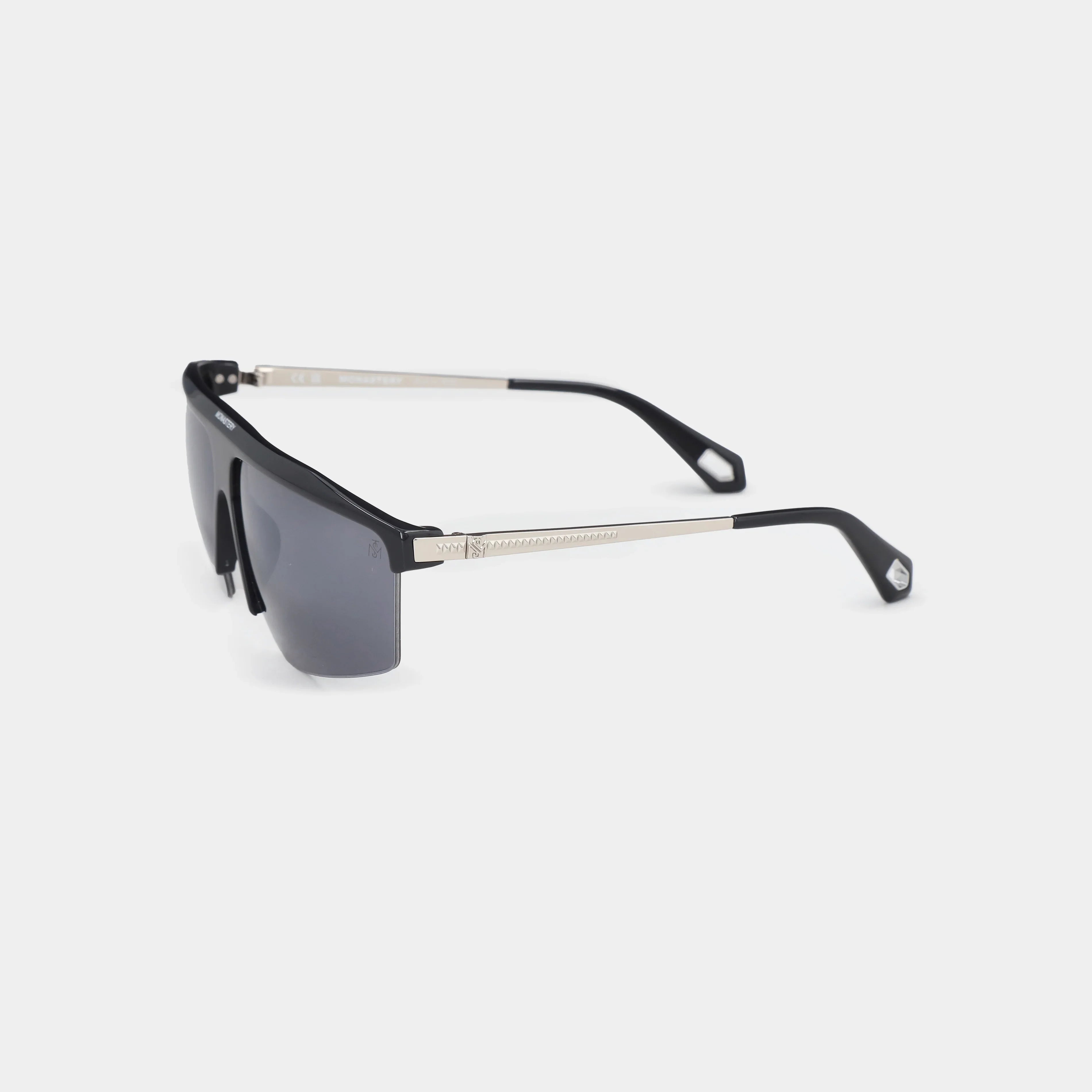 MSS2413-C10-63 ARAN SUNGLASSES MEN BLACK SHINY SILVER SOLID GREY WITH LIGHT MIRROW