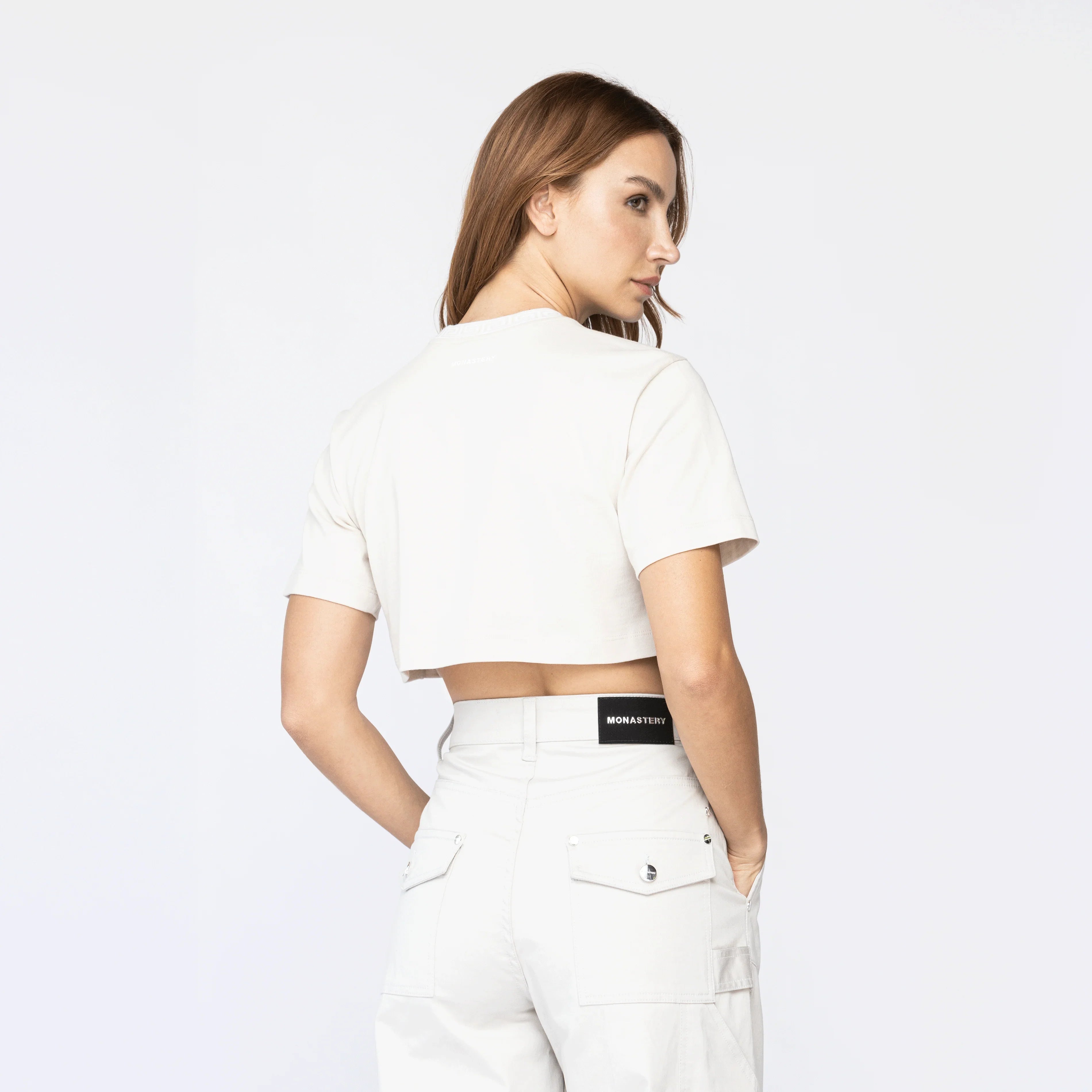 Crop top femenino en algodón 100% exclusivo para Monastery, silueta pequeña.