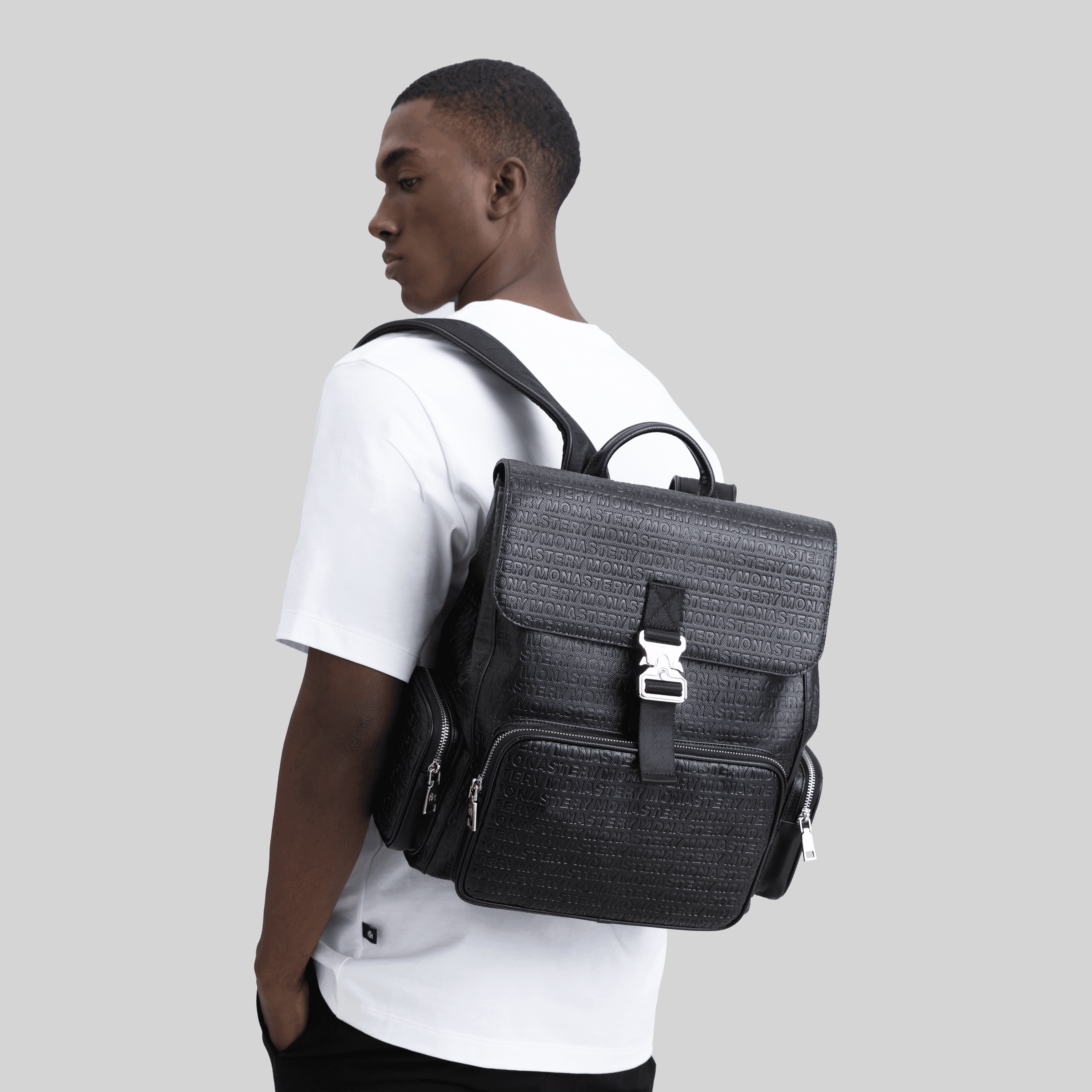Kathleen es una mochila de amplio almacenamiento, diseñada con múltiples bolsillos interiores y exteriores para máxima funcionalidad. Utiliza una técnica avanzada de marcado que logra un repujado continuo y claro de nuestro logo Monastery. Además, este artículo cuenta con cargaderas contramarcadas con nuestro logo, y está acompañada de placa, hebilla, sliders y cierres en color plata, elementos icónicos de nuestra identidad de marca.