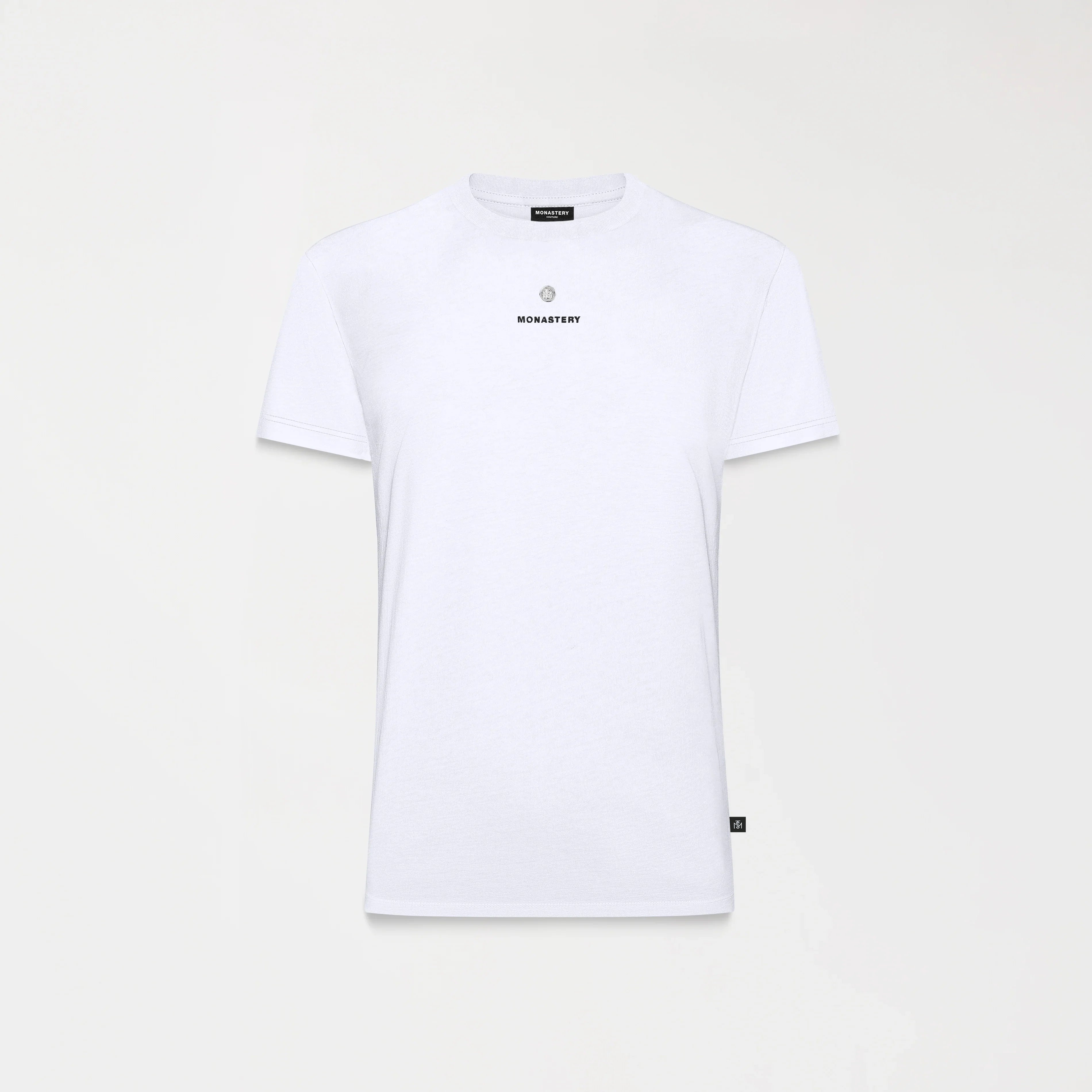 Camiseta para mujer en silueta pequeña elaborada en nuestra base textil mst oporto premium cotton y elastano para mayor comodidad y frescura. La referencia bryony está acompañada de una fina placa metálica contramarcada con el logo Tsm en color plata brillante y un texto Monastery estampado plano con detalles que le dan un toque distintivo y moderno.