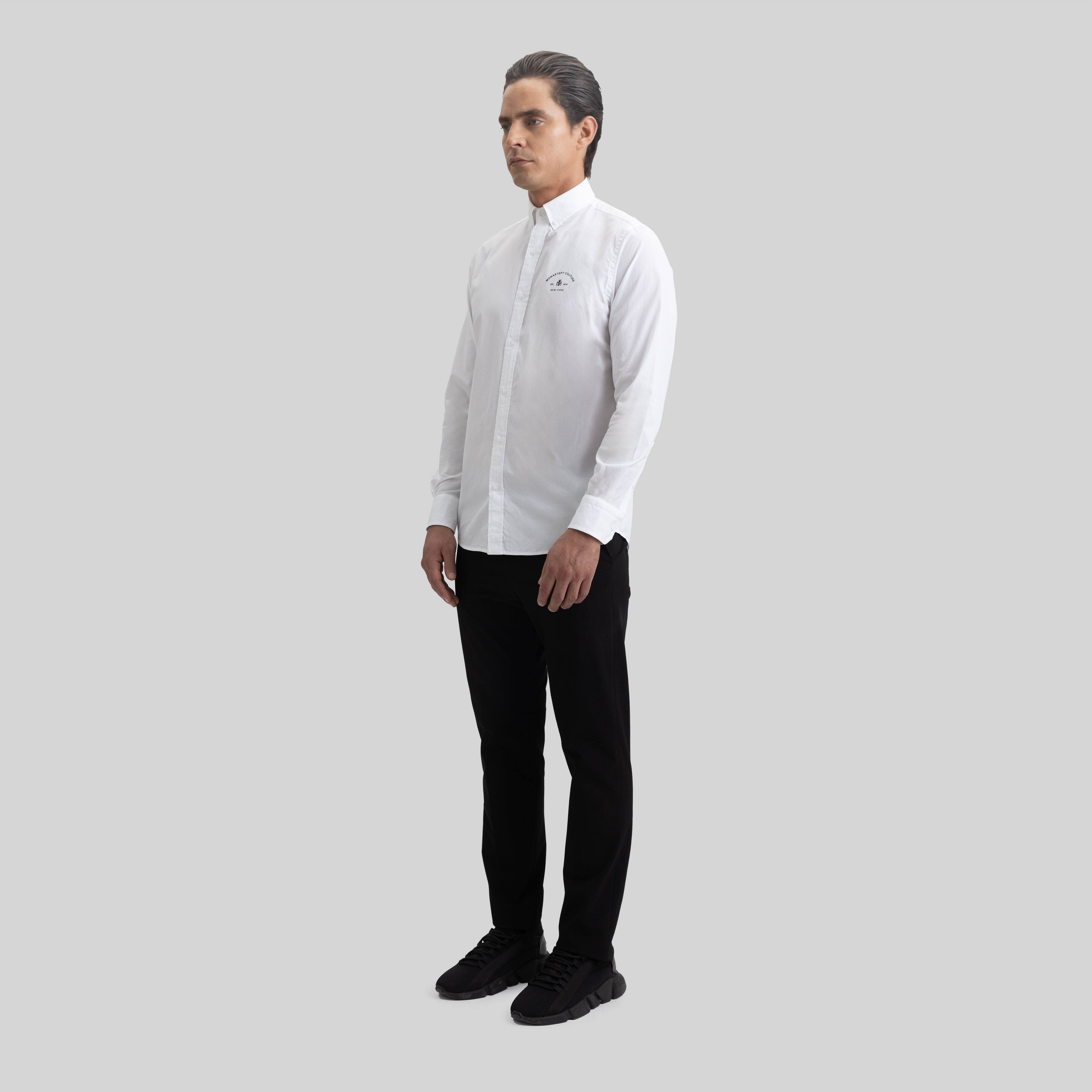 Esta camisa masculina de manga larga presenta una silueta regular y está elaborada en algodón Pima Peruano con elastano para proporcionar mayor confort. Bugatti es una opción fresca y cómoda, caracterizada por su diseño clásico y elegante. Incluye detalles bordados como el logo insignia en la espalda y en la perilla interna, además de un estampado en alta densidad del logo Monastery renovado en el punto del corazón. Esta prenda es un básico imprescindible para combinar con cualquier conjunto y lucir en ocasiones especiales con estilo.