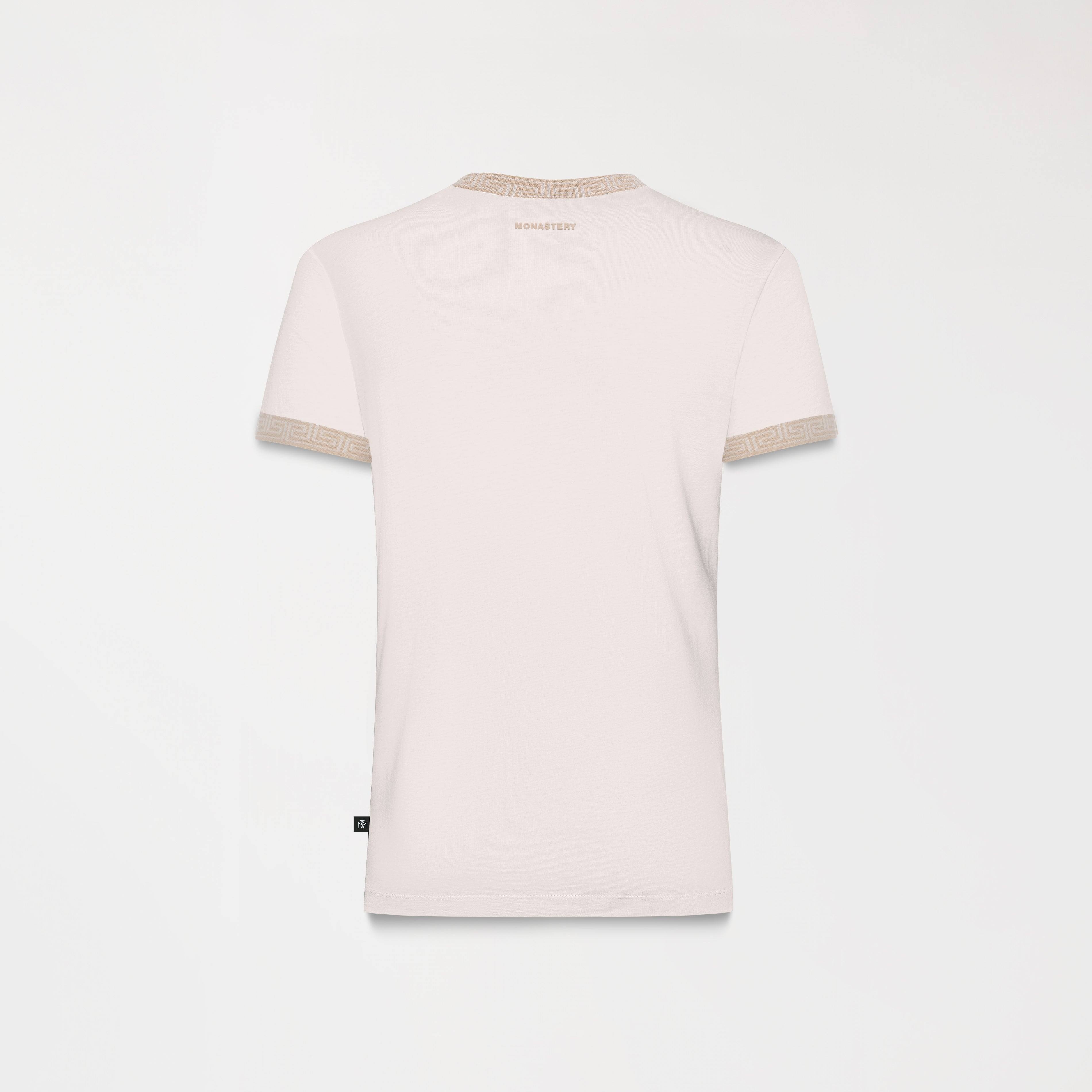 T-shirt femenina silueta ajustada elaborada en nuestra base textil premium cotton y elastano la cual brindan comodidad y moldean la silueta femenina, con cuellos y puños en tejido rectilíneo, acompañado de franjas con un destacado estilo dórico. Acompañado de un llamativo bordado tono a tono en el frente con espalda estampada tono a tono en alta densidad con los logos clásicos de la marca.