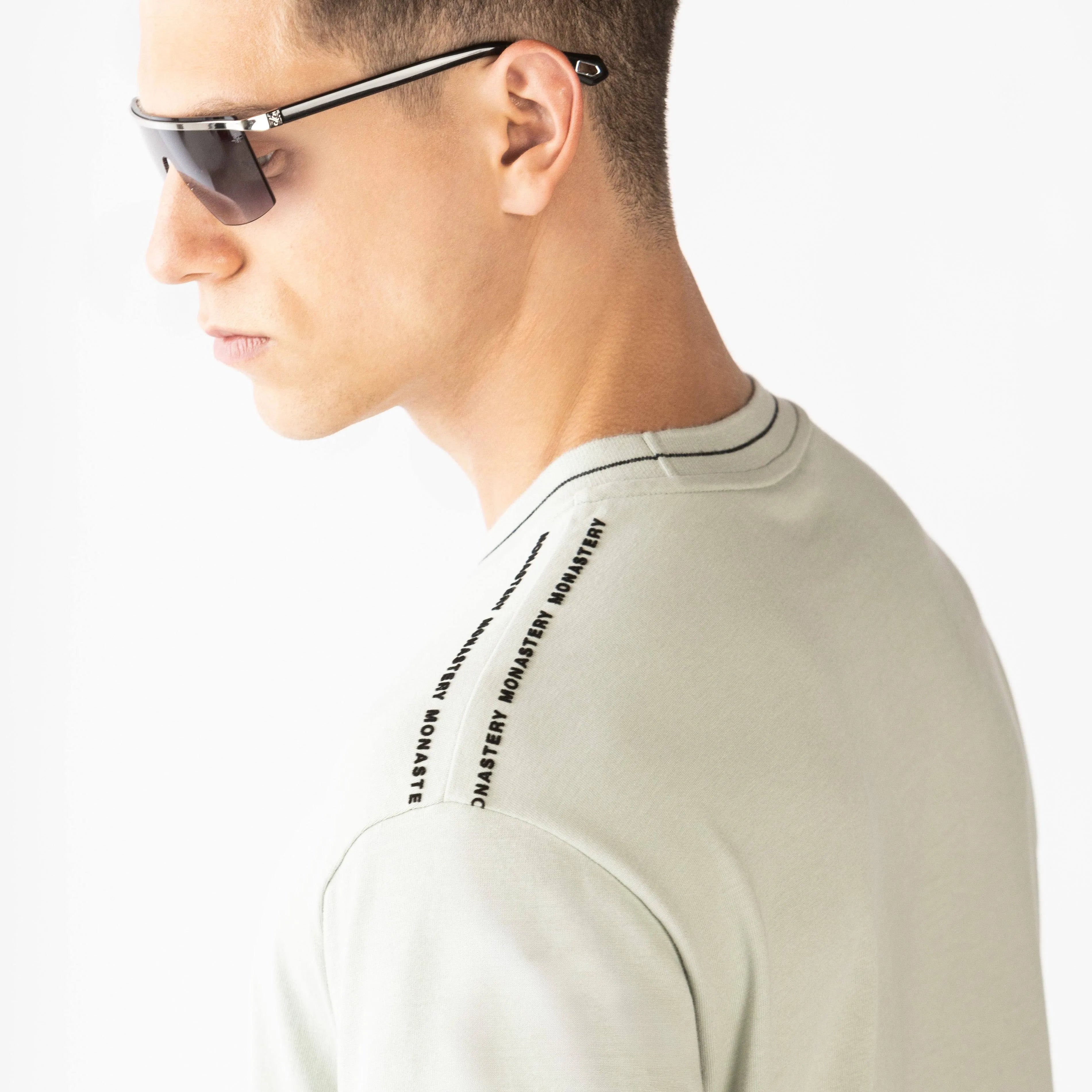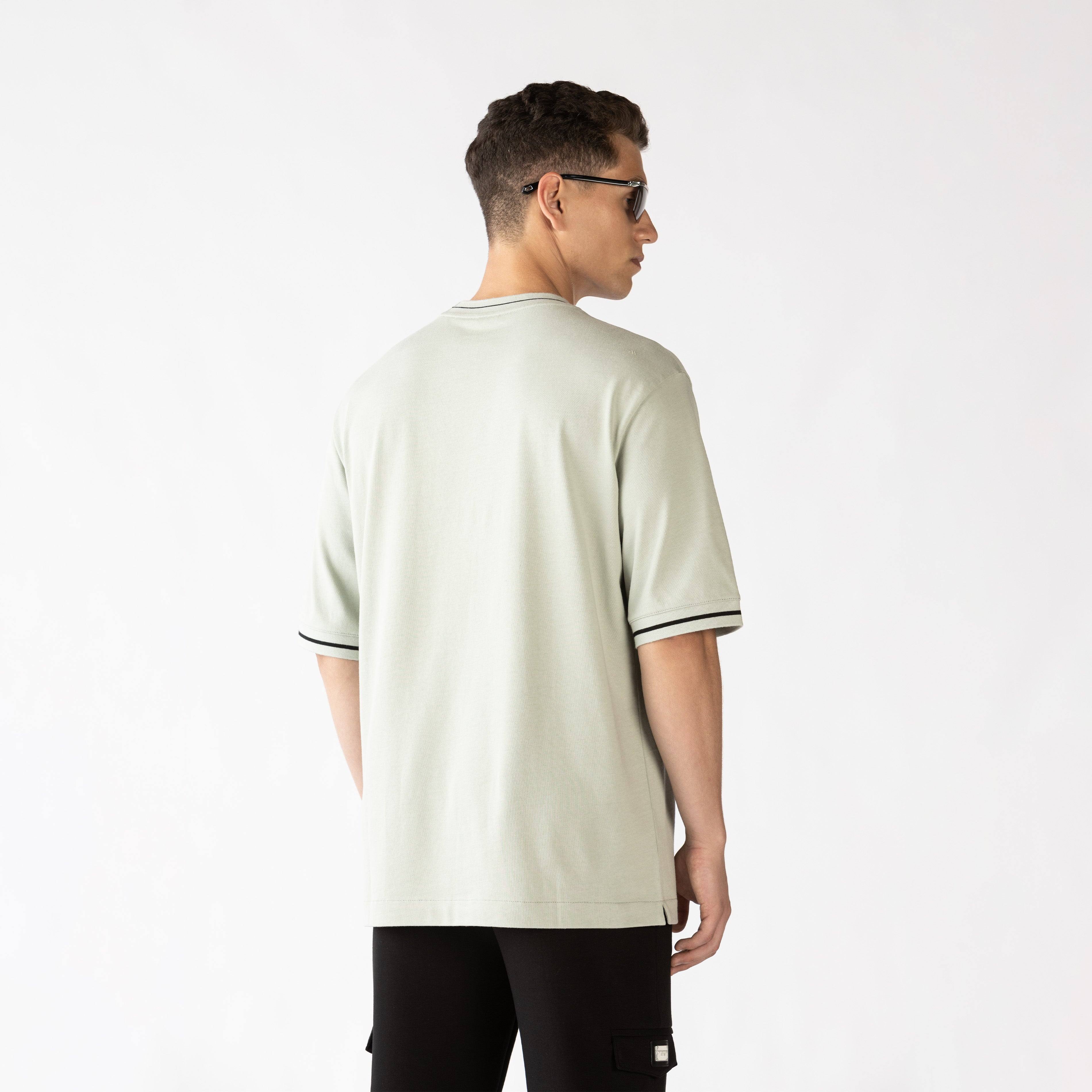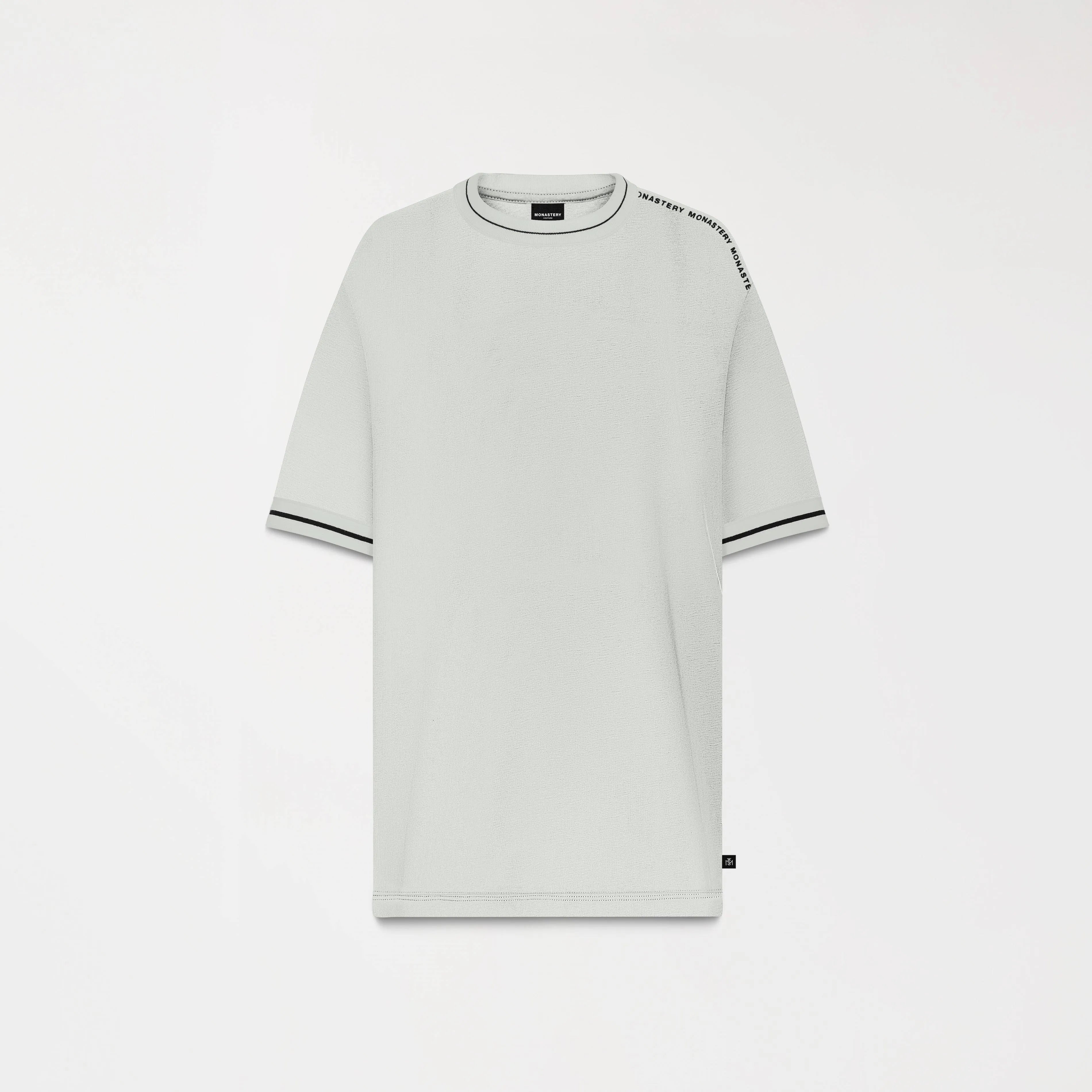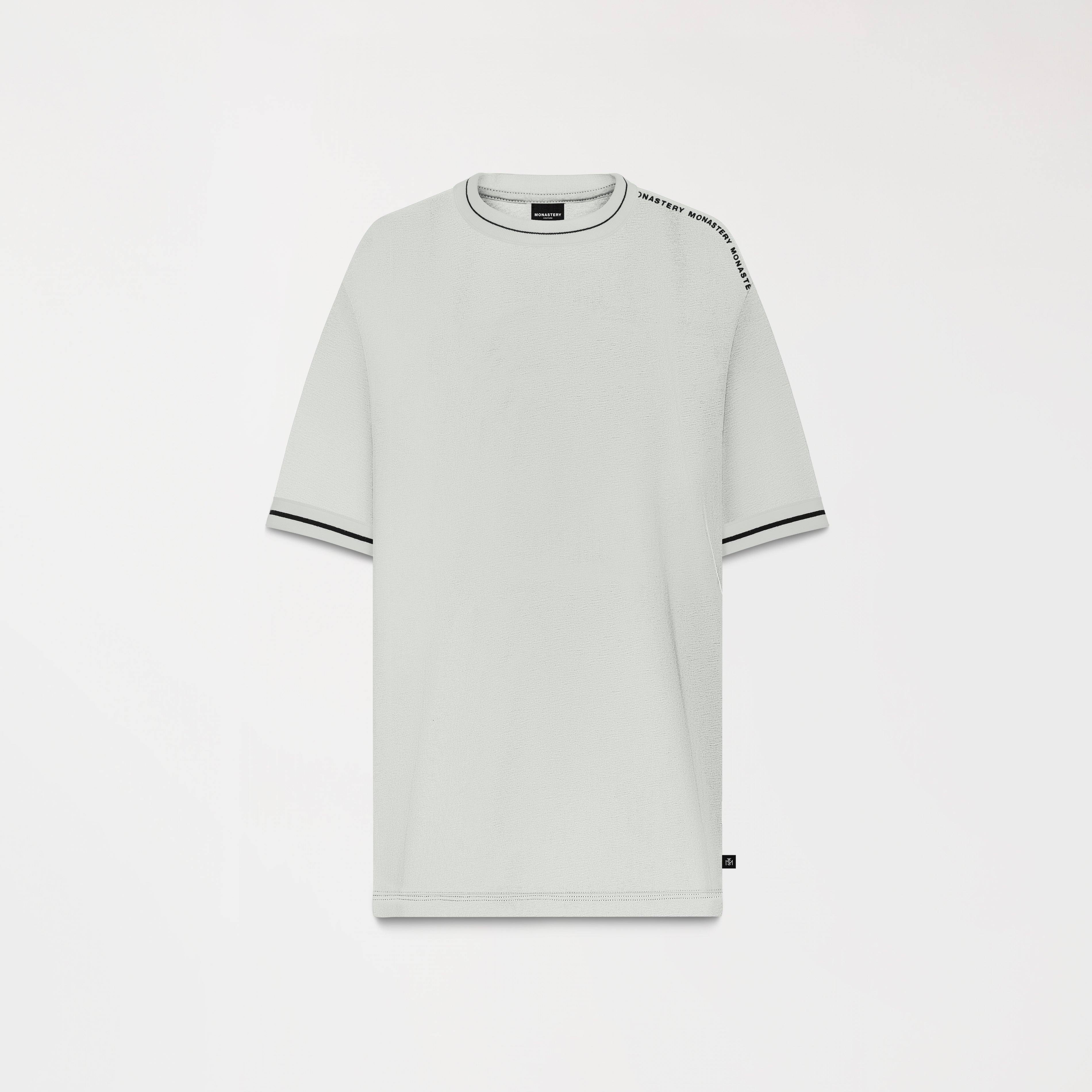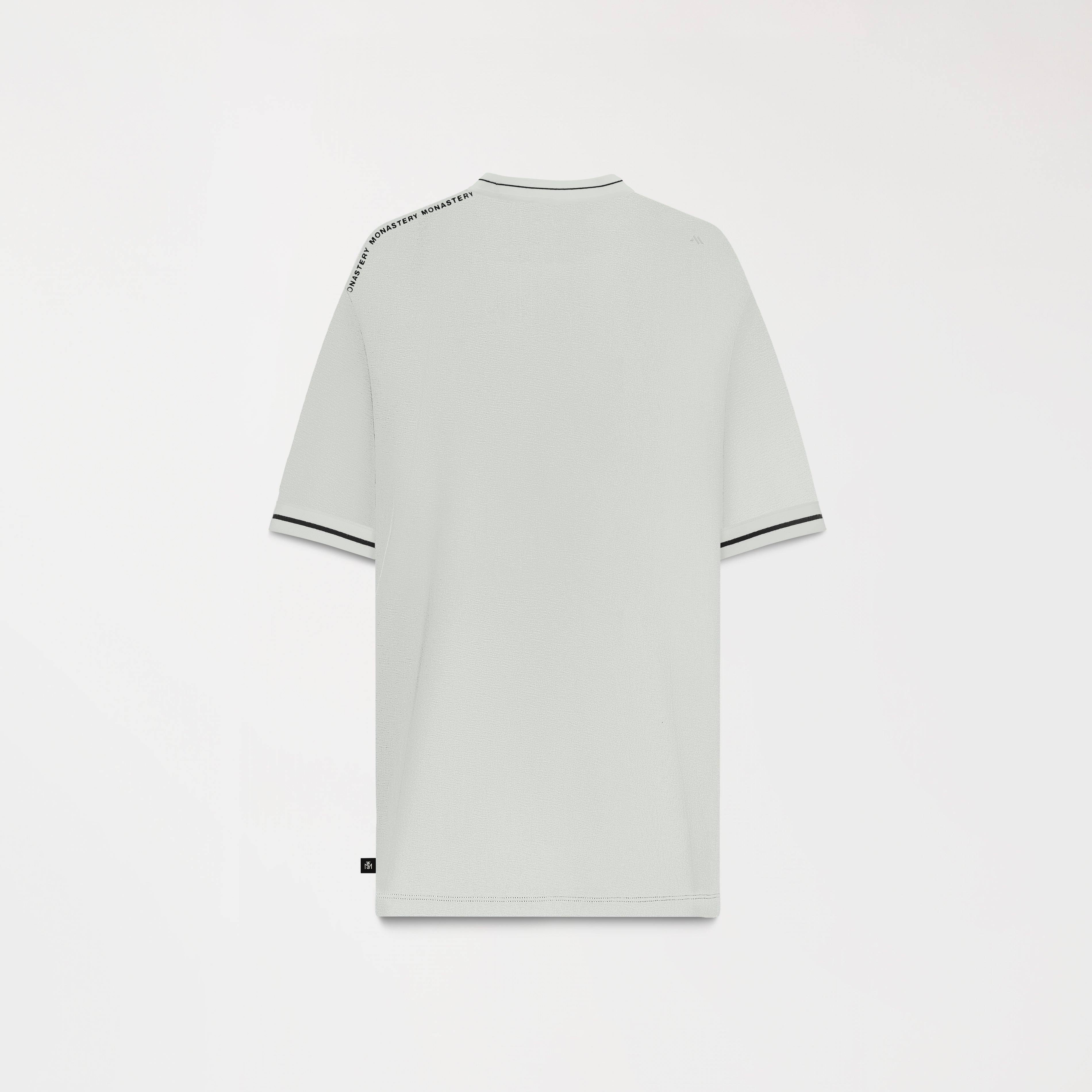 Camiseta Oversized gris mineral para hombre, confeccionada en algodón exclusivo para Monastery, esta camiseta presenta un cuello tejido de 2.5 cm de alto y puños tejidos, que añaden comodidad y estilo. En el hombro izquierdo del frente, destaca un estampado en flock que aporta un toque distintivo. La parte posterior cuenta con artes insignia en alta densidad, ofreciendo un acabado elegante y moderno. Ideal para quienes buscan un look relajado y sofisticado.