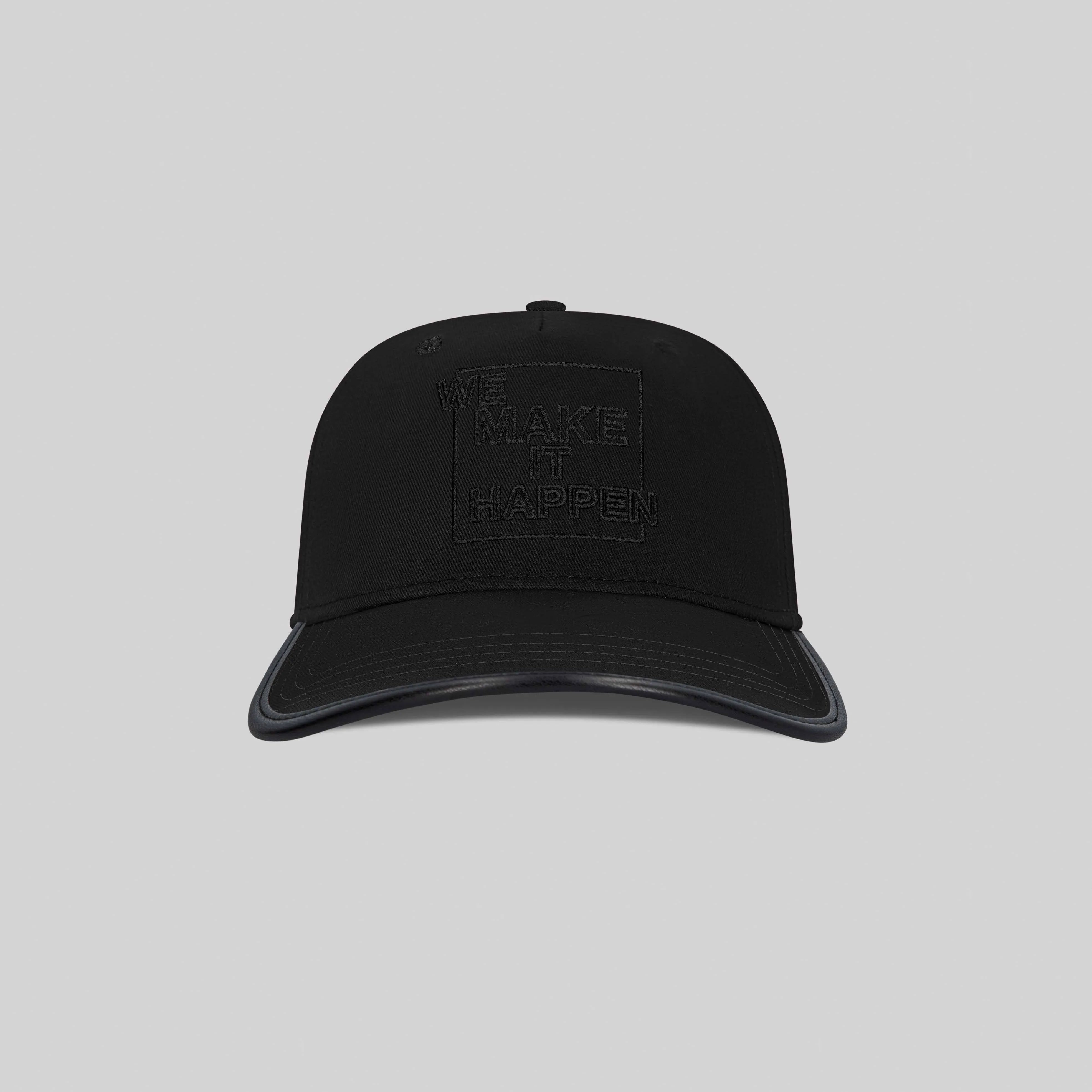 Gorra negra Petty elaborada en Twill de algodón 100%, en color negro, con tres opciones de colores de bordado, verde, negro y moonbean. Petty es un artículo con visera que tiene detalle de sesgo negro en efecto cuero, en todo el contorno de la visera. Su arte es un bordado resultado de la reinvención visual de nuestra frase icónica de marca. Este accesorio es dinámico y clásico, que además cuenta con un sistema de cierre con correa en cuero 100%, con el logo de la marca repujado. Con un diseño versátil y de alta calidad, esta gorra es ideal para complementar tu estilo con un toque distintivo.