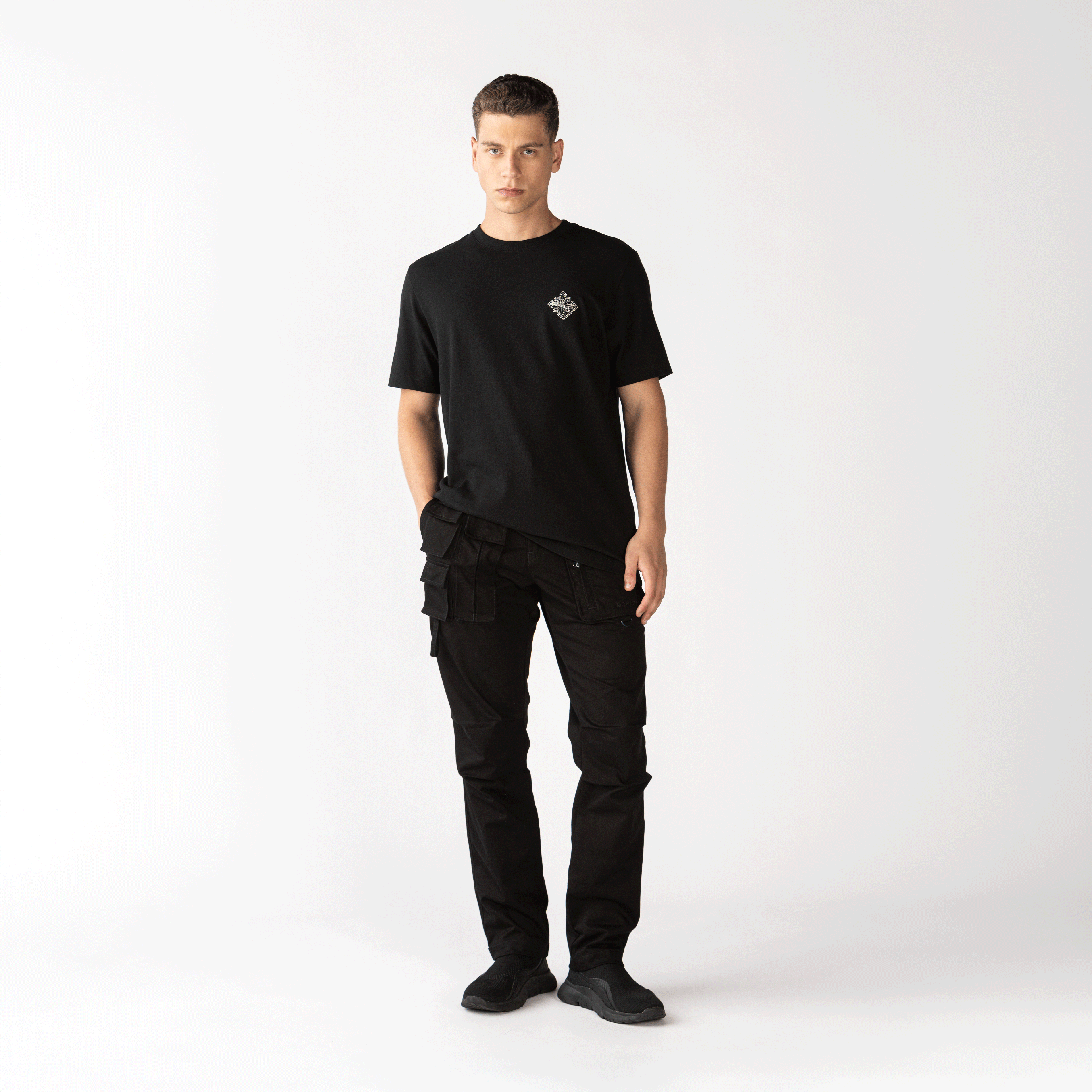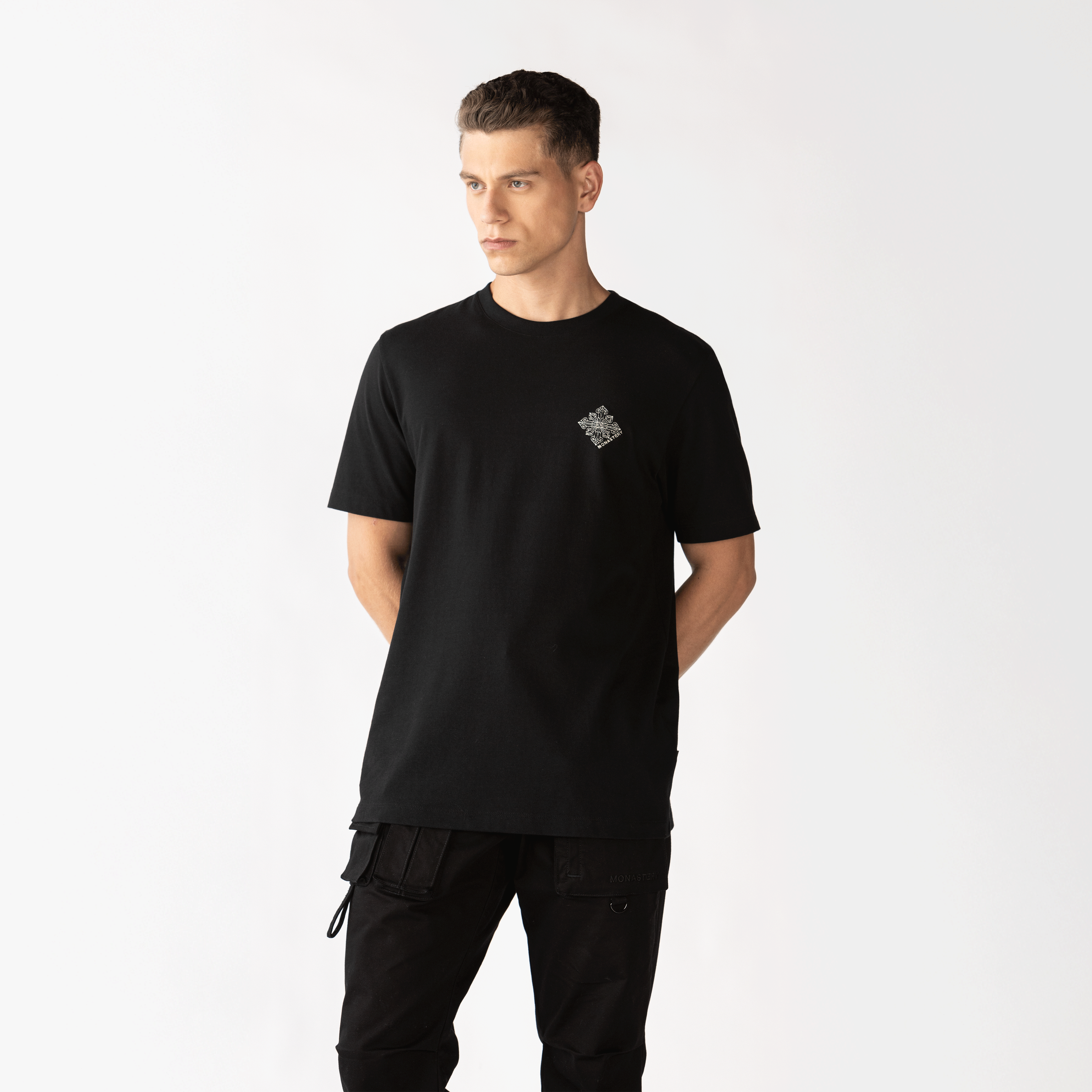 La camiseta negra Catterdale elaborada en silueta regular, confeccionada en algodón exclusivo para Monastery, esta camiseta ofrece una textura suave y cómoda. Destaca un arte bordado plano en forma de cruz, ubicado en punto corazón, que aporta un toque moderno y significativo. En la parte posterior, las artes insignias están elaboradas en alta densidad, brindando un acabado distintivo y elegante. Ideal para quienes buscan un estilo único y contemporáneo.