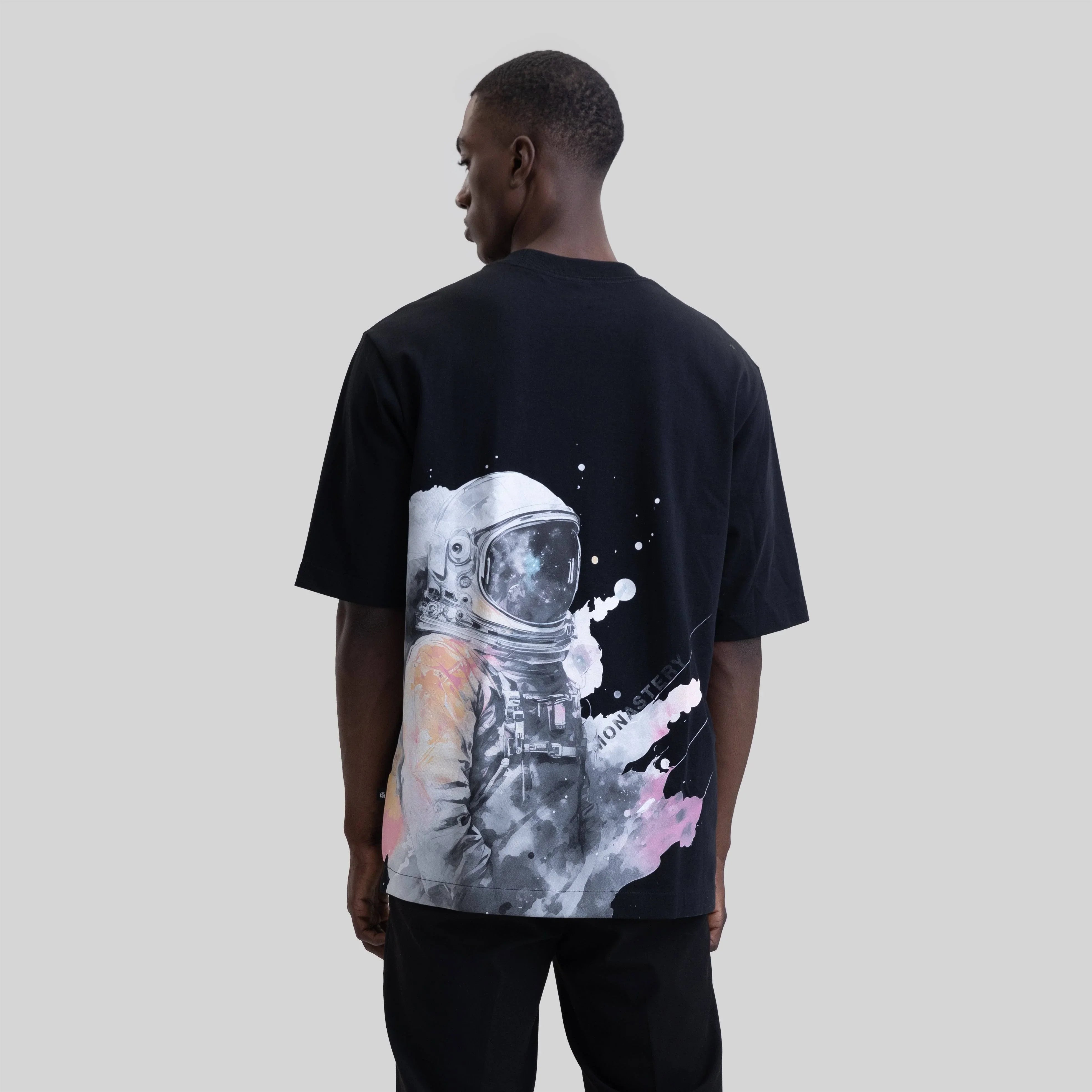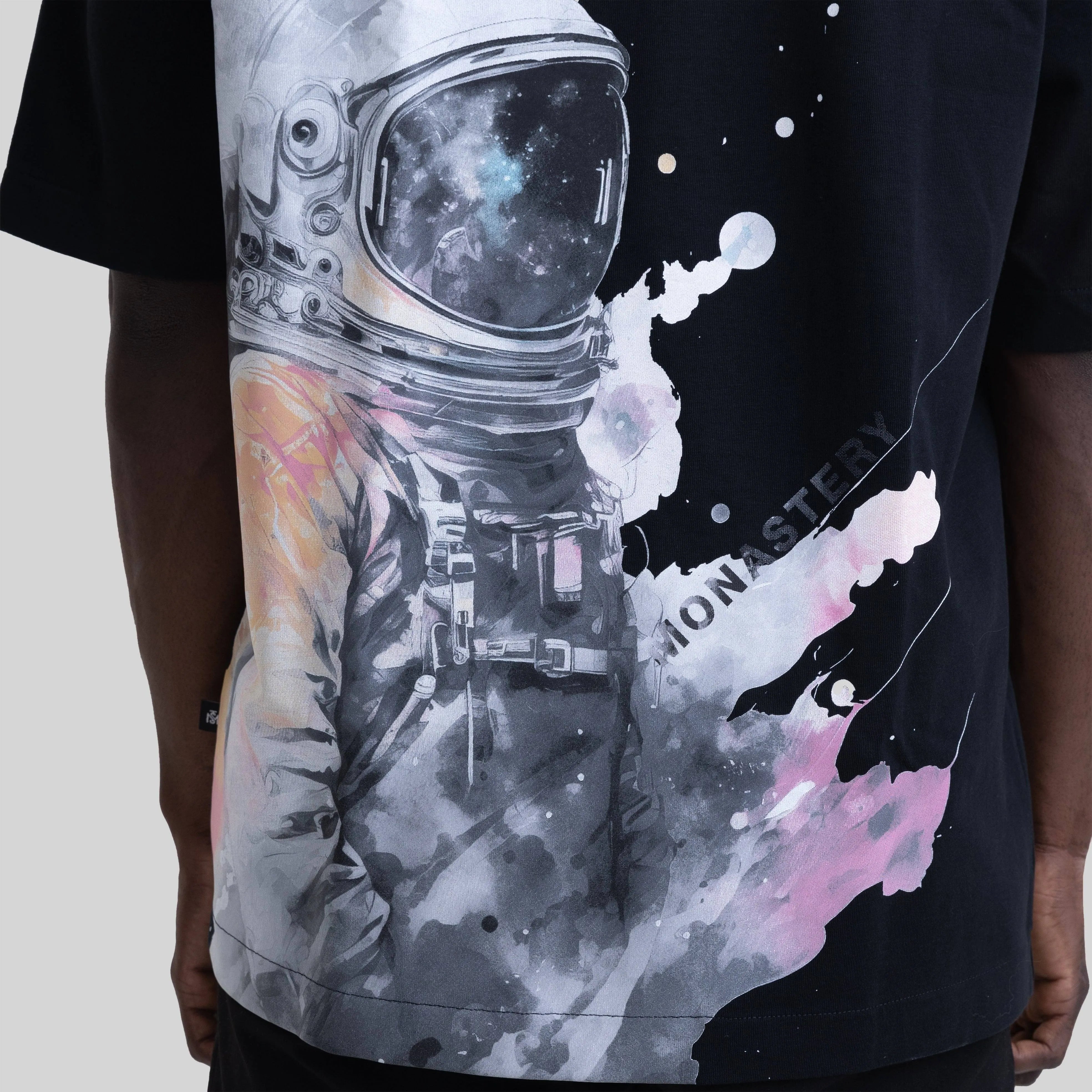 Camiseta de hombre oversize elaborada en silueta con cuello de 3 cm, en la parte posterior cuenta con nuestro emblemático astronauta en una técnica estampada en tramas, en la parte delantera hacia el ruedo cuenta con el texto Monastery estampado en alta densidad. Crescent es una prenda con un arte icónico renovado, que le permite ser muy versátil para combinar con tu vestuario.