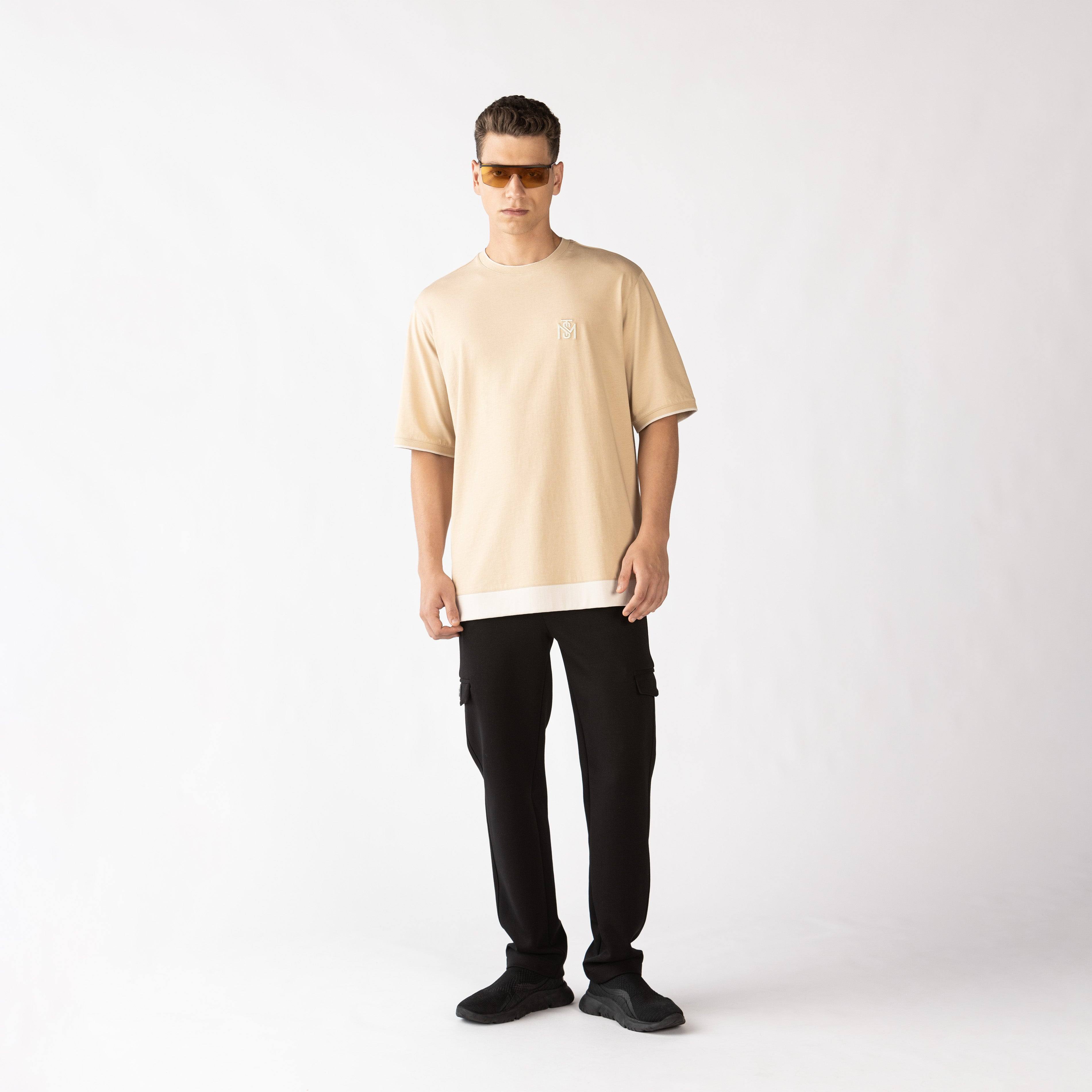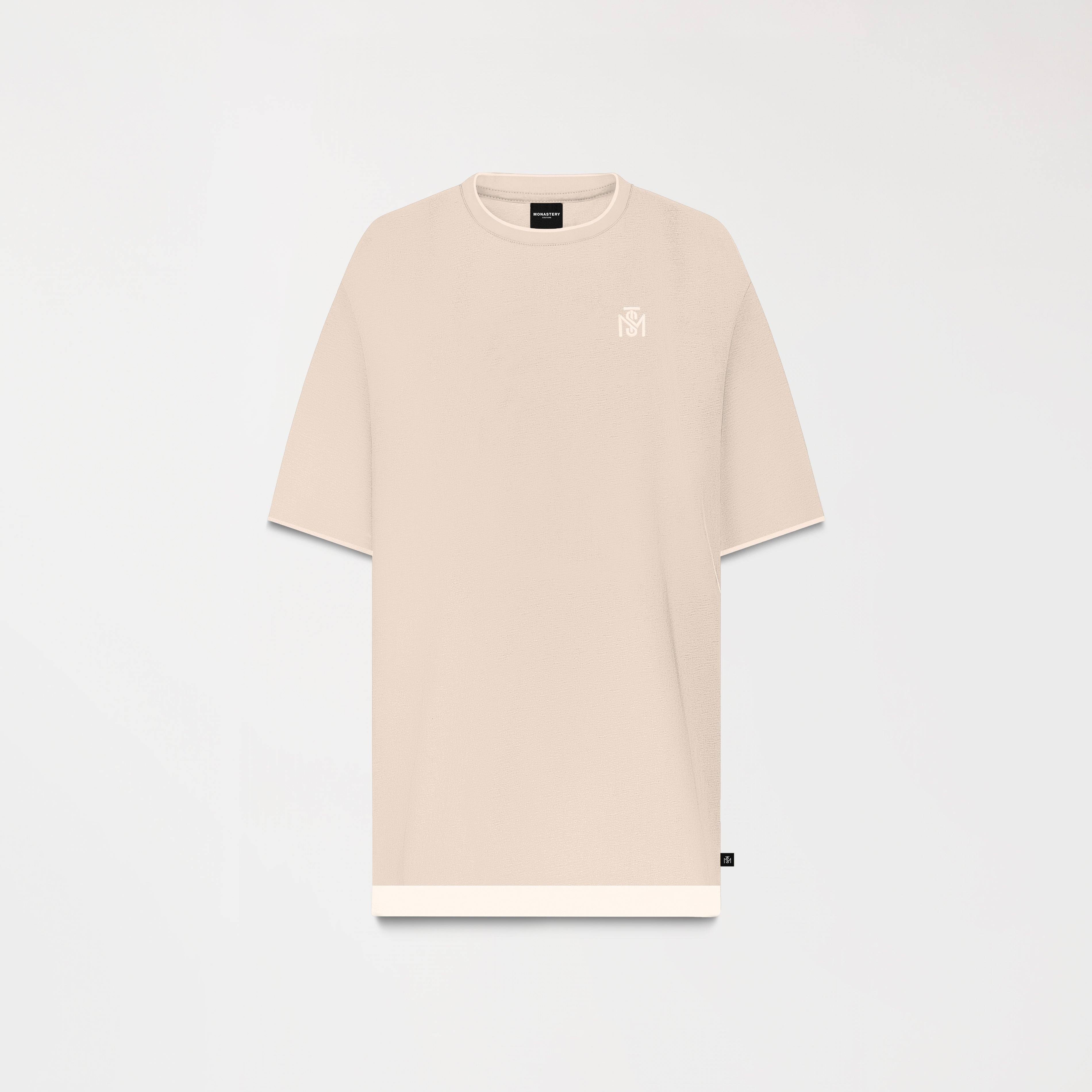 Camiseta Oversized irish cream para hombre, elaborada en algodón exclusivo para Monastery, esta camiseta presenta un cuello y puños tejido de 2 cm de alto y un fajón de 5 cm, que combinan comodidad y estilo. En el frente, destaca un arte bordado ubicado en punto corazón, que le da un toque distintivo, mientras que la parte posterior cuenta con los artes insignia en alta densidad, ofreciendo un acabado moderno y elegante. Ideal para un look relajado y contemporáneo.