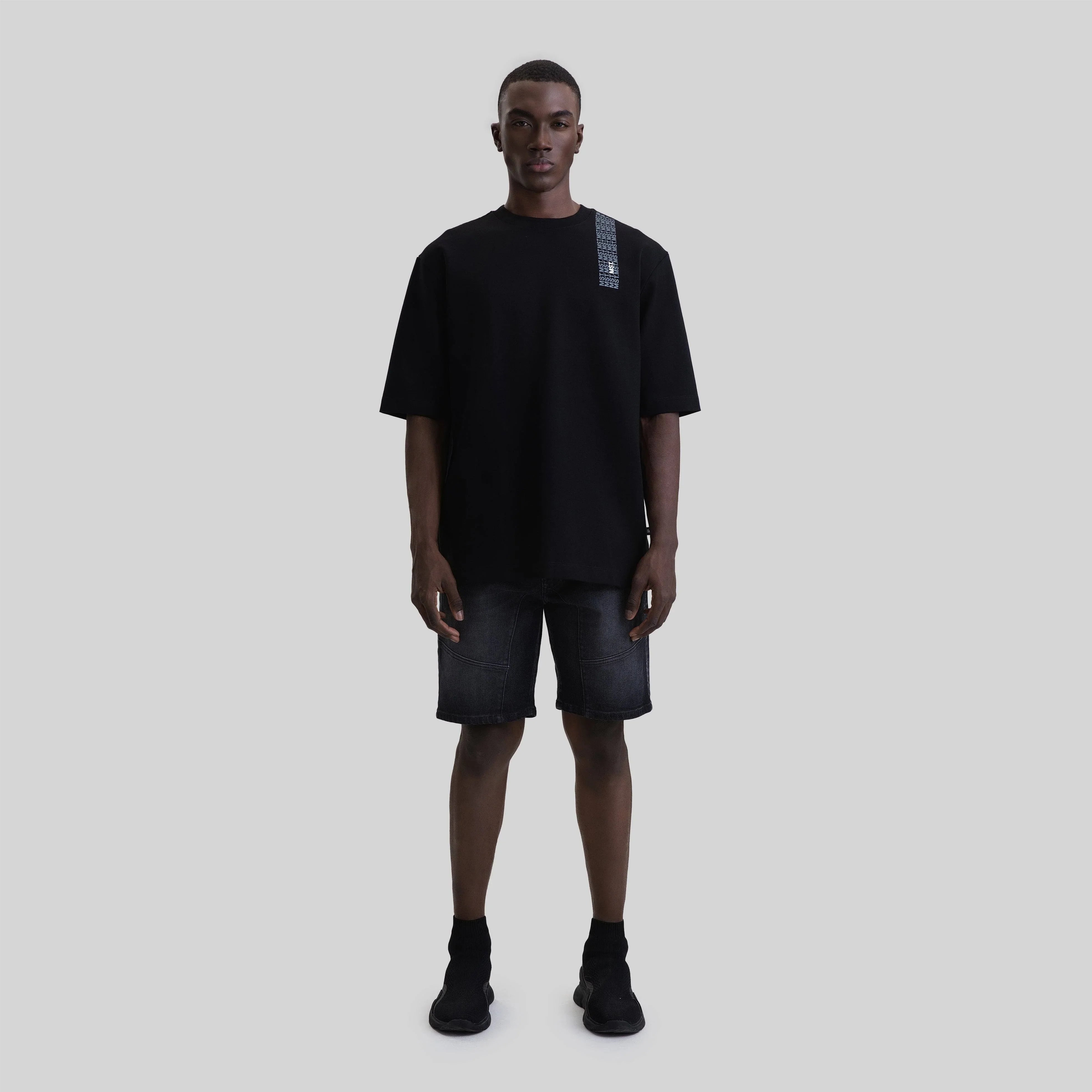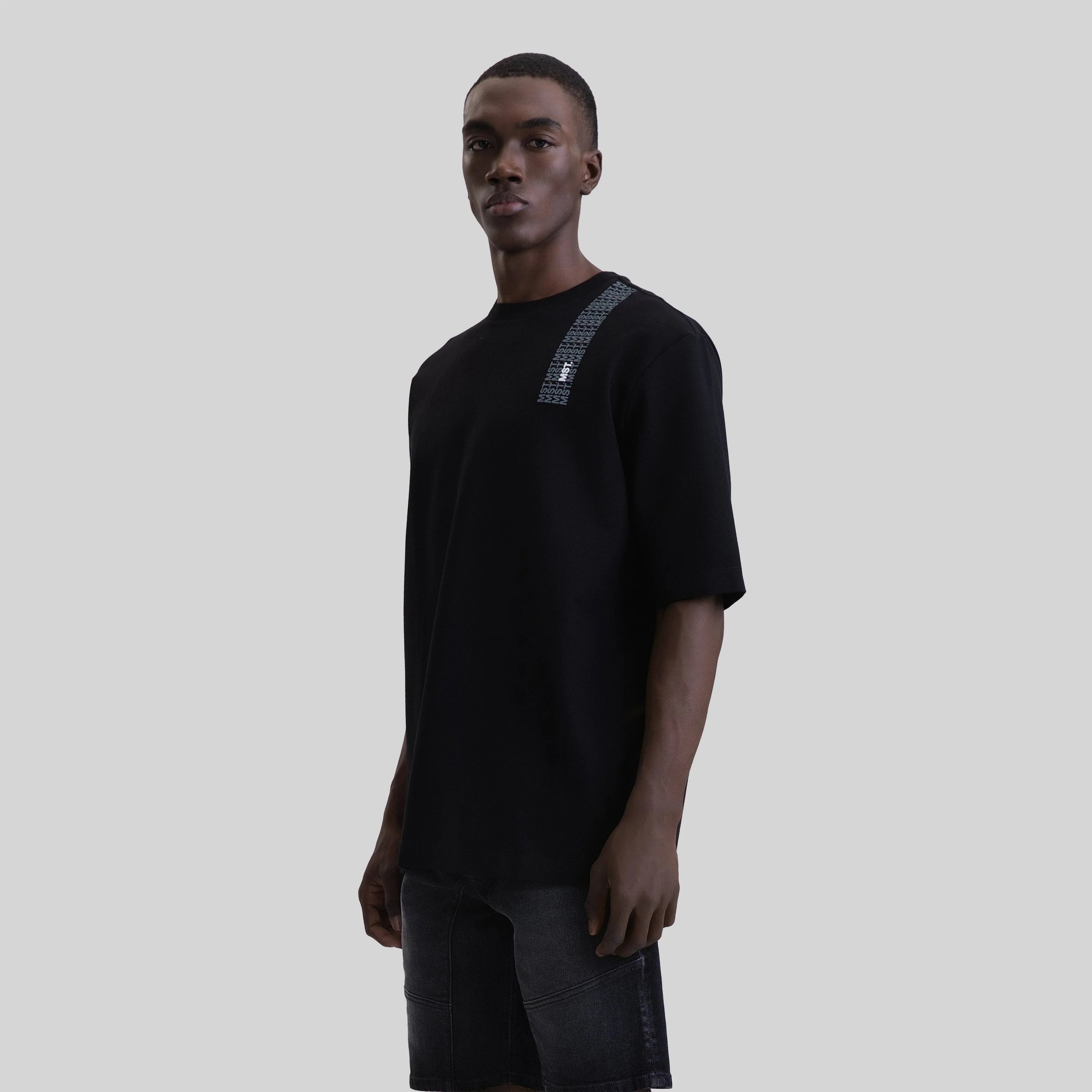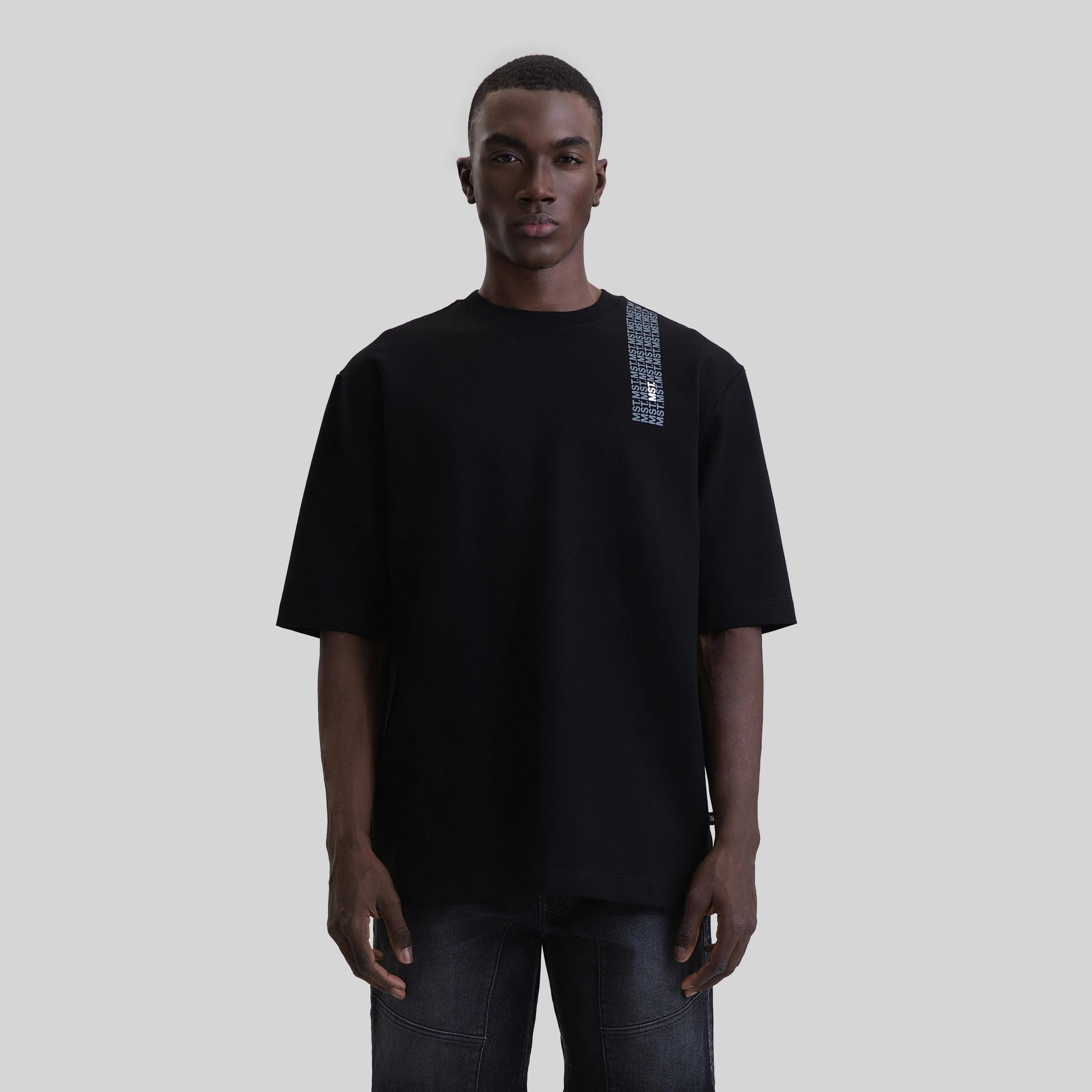 Camiseta de hombre confeccionada en silueta oversize. A la altura del hombro derecho, presenta un estampado en patrón con las siglas MST que se extiende hacia la espalda. Draconis es una prenda con un arte icónico renovado, lo que le otorga una gran versatilidad para integrarse a tu vestuario.