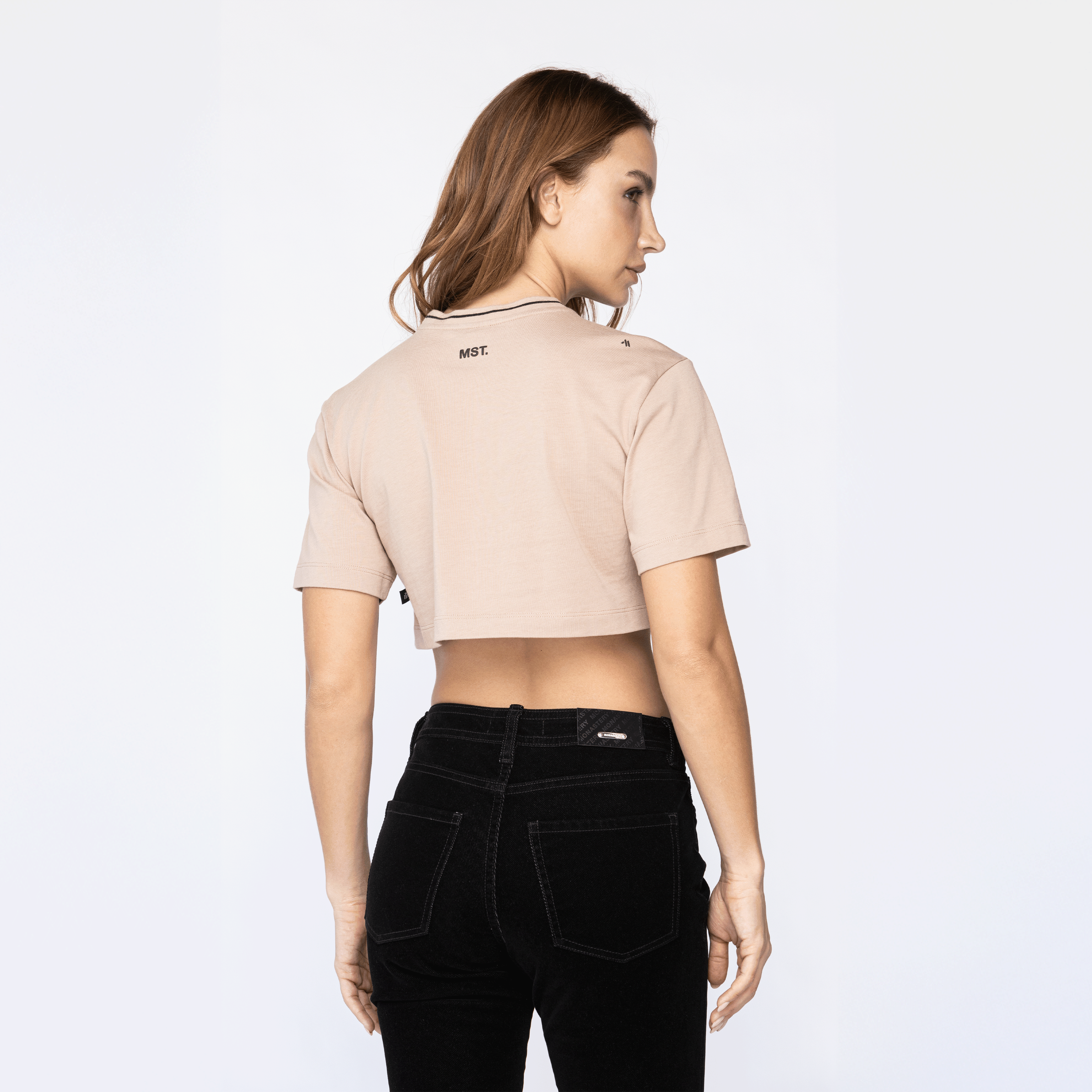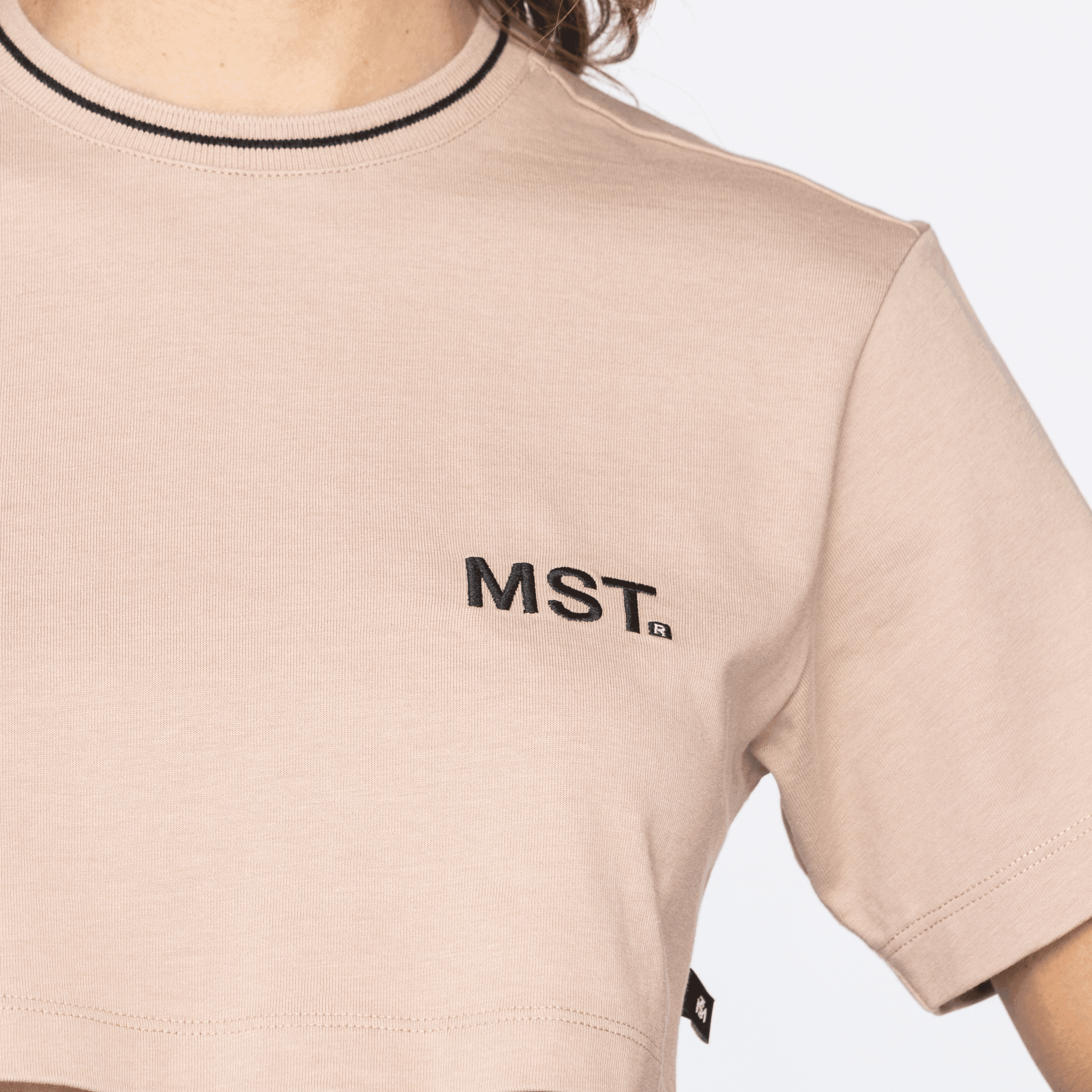 Crop top femenino en algodón 100% exclusivo para Monastery, elaborada en silueta pequeña, Elden presenta un bordado en punto corazón del icónico logo MST, el cual añade un relevante toque de la identidad de marca, esta referencia tiene cuello en tejido rectilíneo la cual es una opción versátil, perfecta para combinar con una variedad de atuendos.