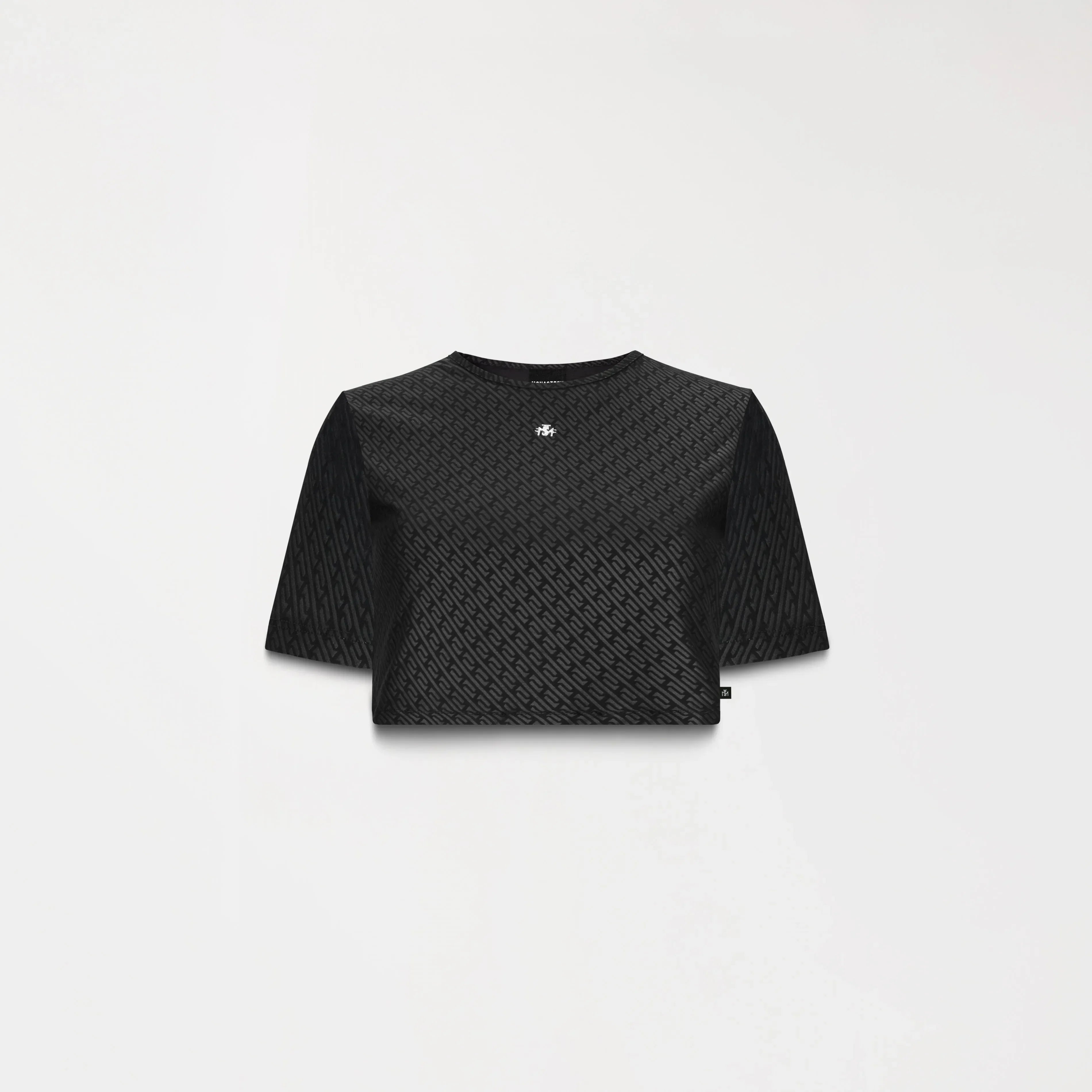 Monastery Crop top con cuello sesgo, elaborado en nuestra base textil Seul, esta base textil es exclusiva para Monastery, es marcado al calorcon un patron hecho especialmente para la marca. Esmme cuenta con una placa metalica a la altura del busto de nuestro logo Tsm y en posterior con nuestro logo Monastery, ambasplacas cuentan con un baño en plata añadiendo brillo y elegancia a la prenda. Esta prenda resalta la identidad de la marca atravez de cada uno de sus detalles.