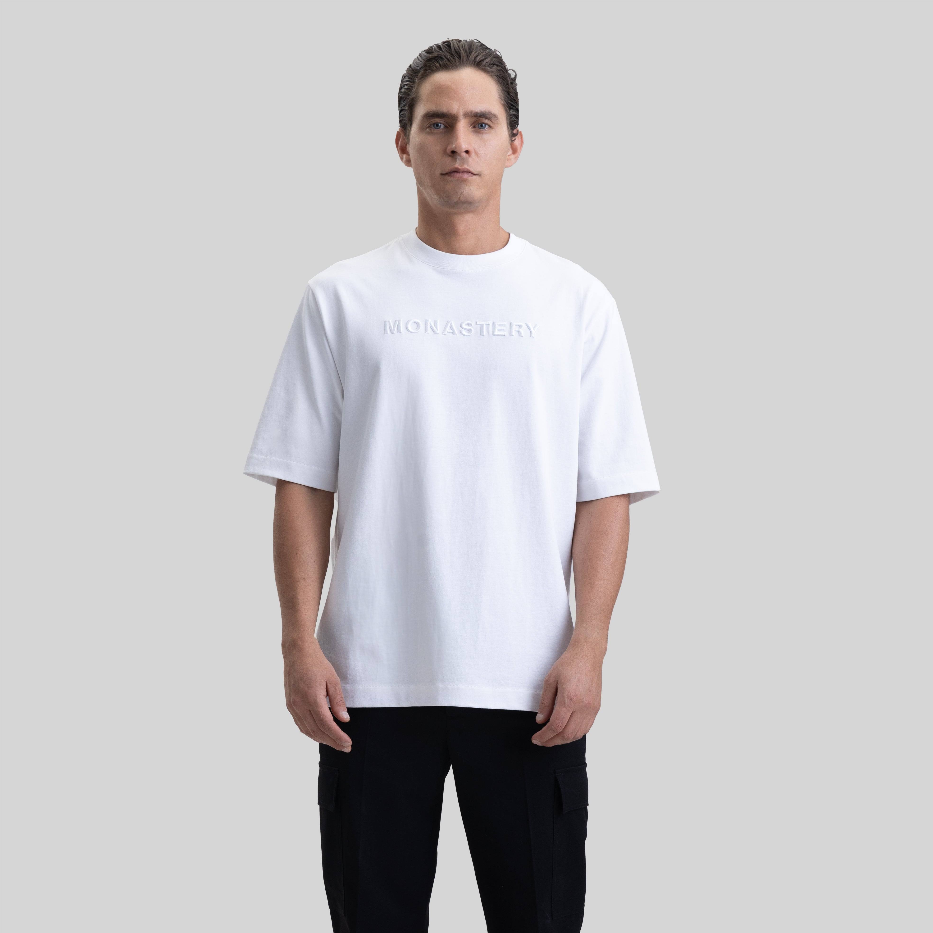 Camiseta oversize masculina, elaborada en algodón peruano exclusivo de Monastery. Este artículo cuenta con nuestro logo Monastery bordado en el centro del frente, y en la espalda, presenta nuestros logos insignia estampados. Faenza es un básico oversize perfecto para combinar con tu armario.