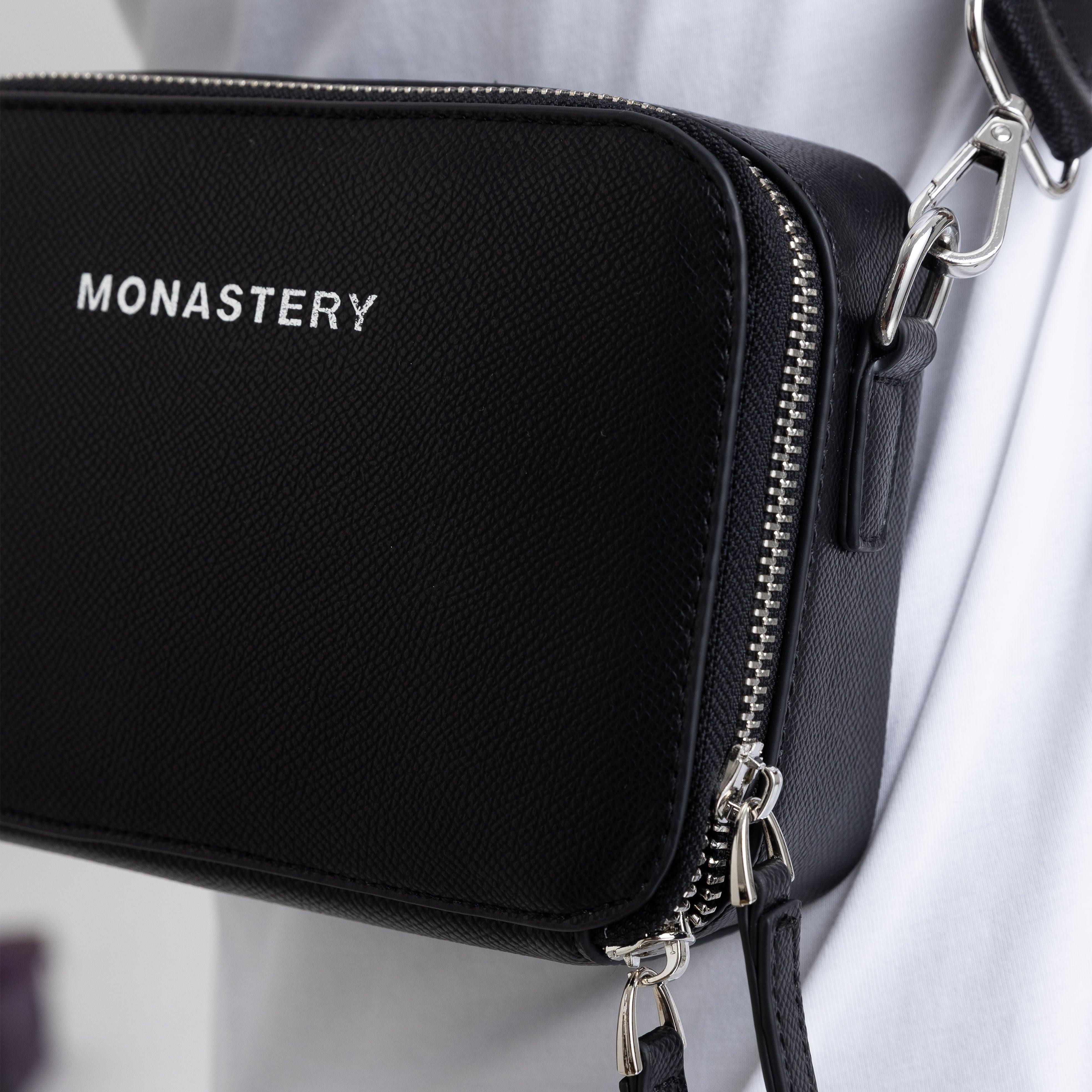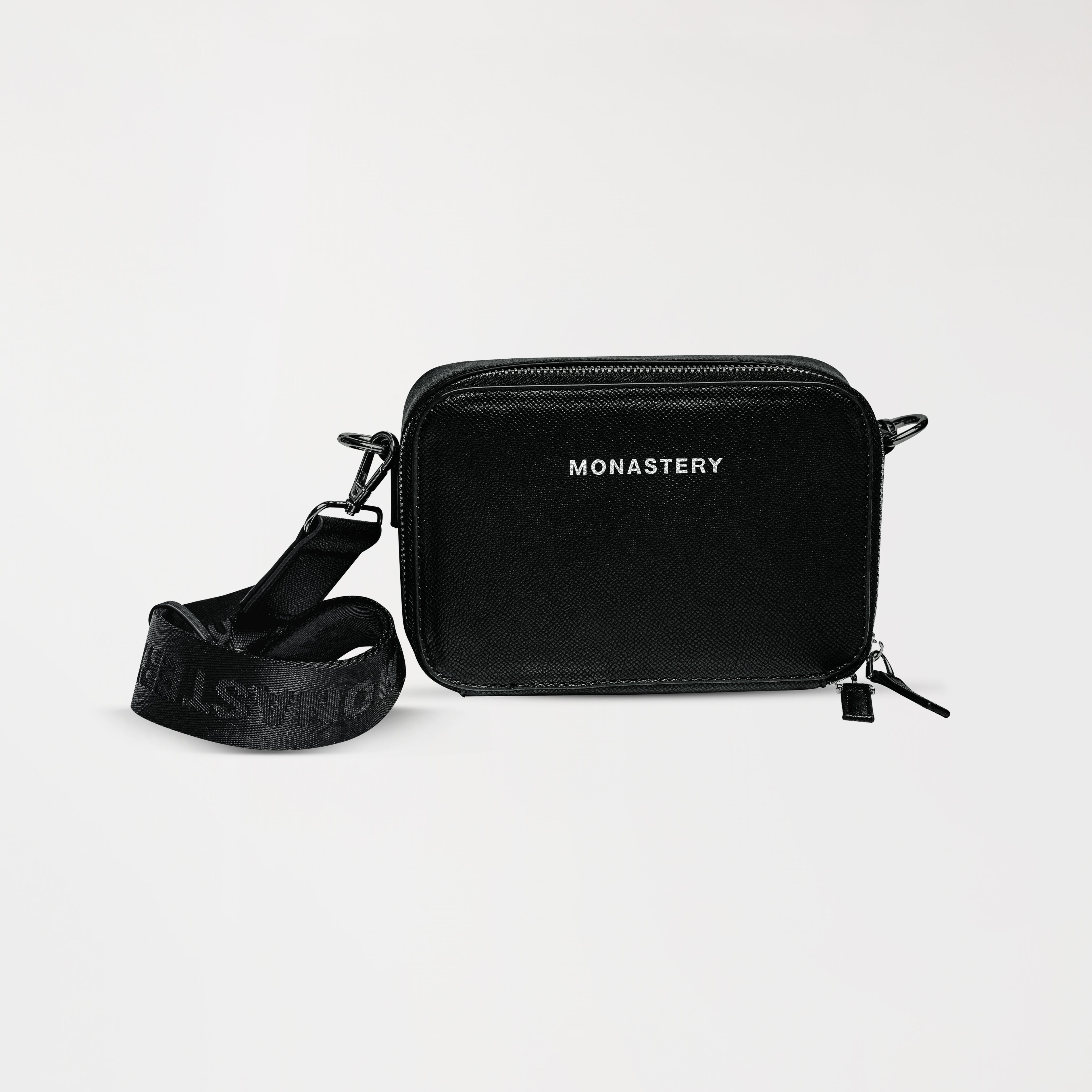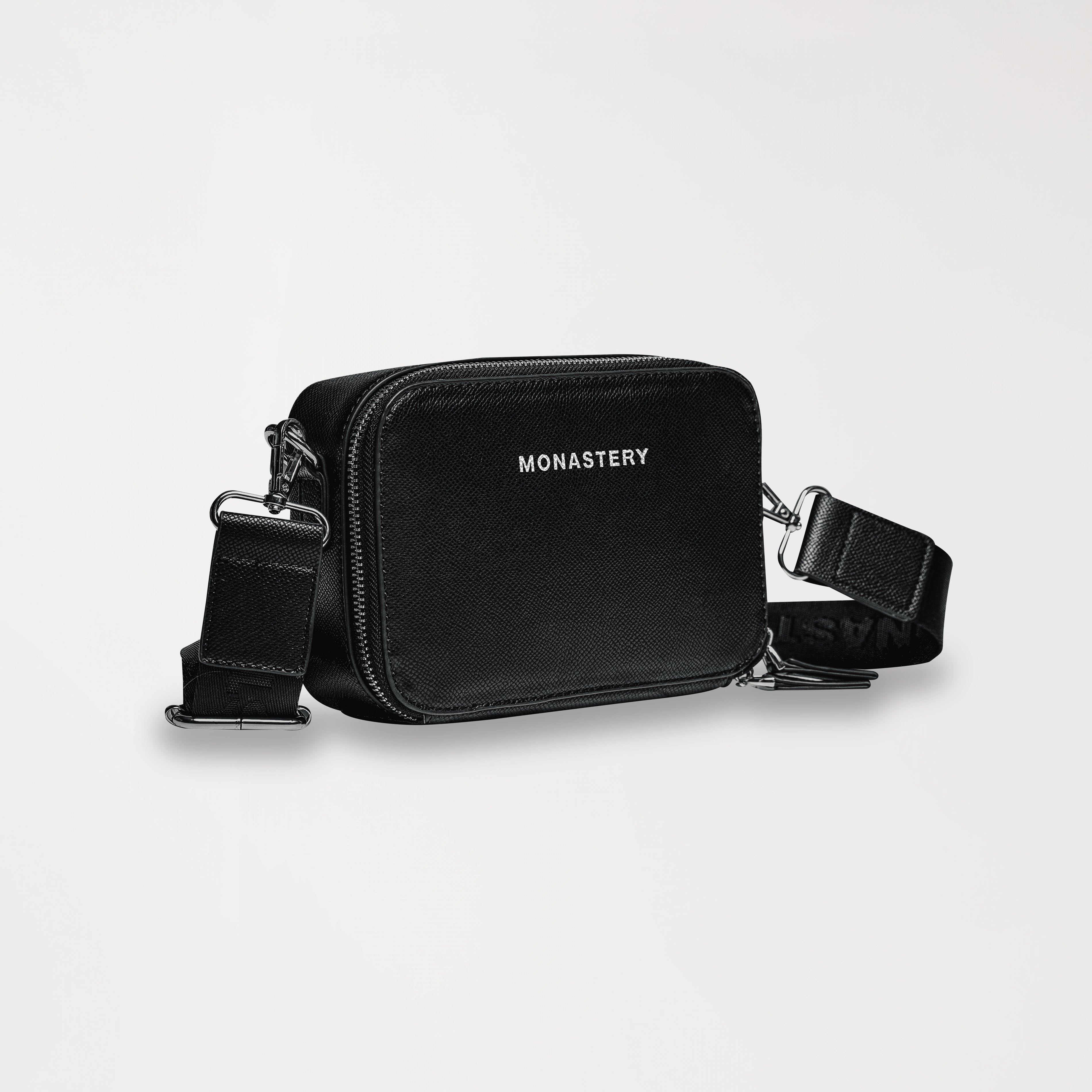 El FannyPack Shum ofrece un amplio compartimento principal con doble slider, facilitando su apertura y comodidad. En su cara exterior, presenta el logo Monastery estampado en letras plata brillante, armonizando con sus herrajes y cierres. Además, cuenta con una cargadera en Jacquard que incorpora sutilmente el logo de la marca entre su tejido.