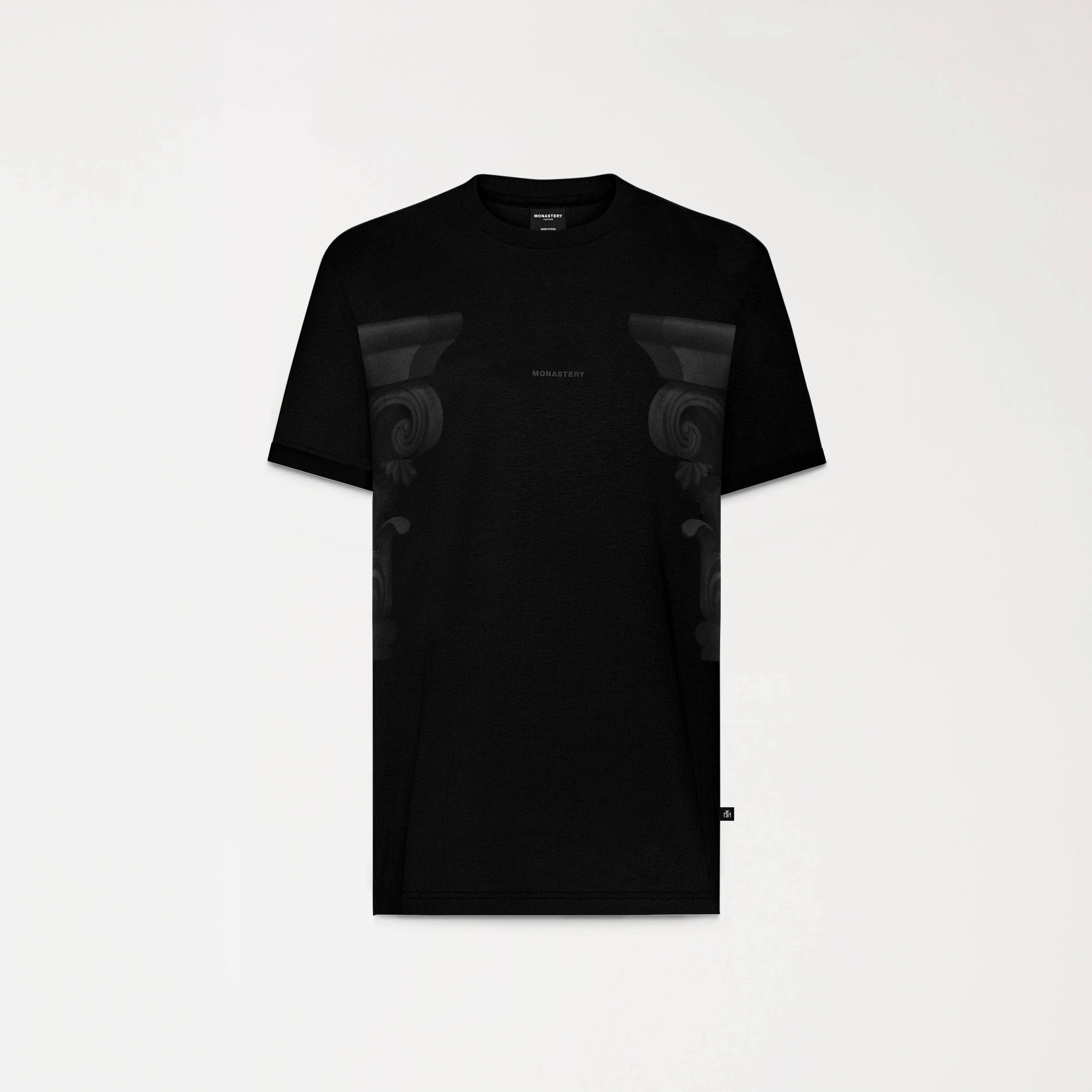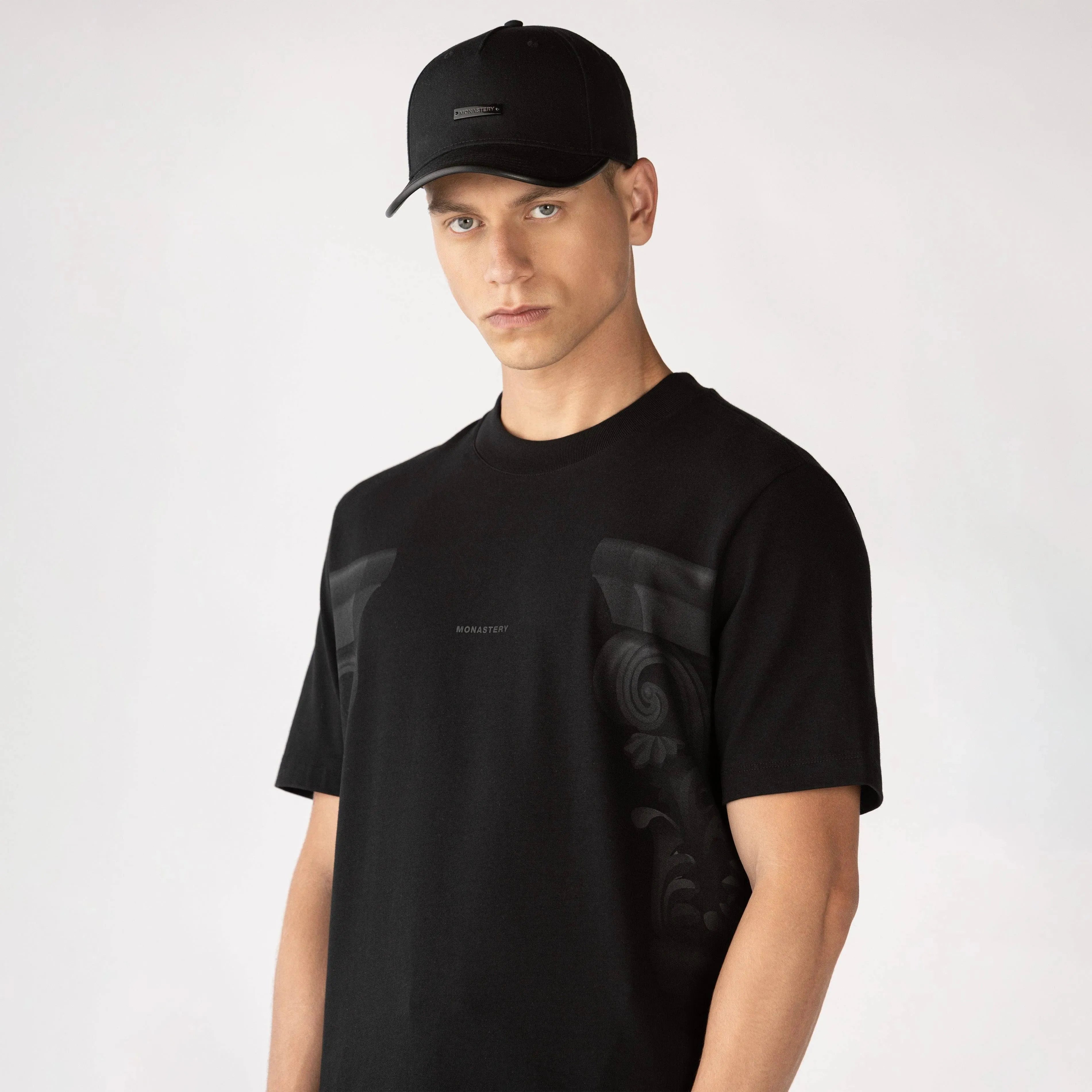 La camiseta negra masculina Flectcher elaborada en algodón Monastery de alta calidad, esta camiseta de silueta regular presenta un cuello de 3 cm que garantiza comodidad y un ajuste perfecto. En el frente, destaca un estampado por tramas que alude al concepto de la colección, aportando un diseño moderno y atractivo. Además, los logos insignia están elaborados en alta densidad, ofreciendo un acabado distintivo y elegante. Ideal para quienes buscan un look contemporáneo y sofisticado, esta camiseta es una excelente adición a cualquier guardarropa.