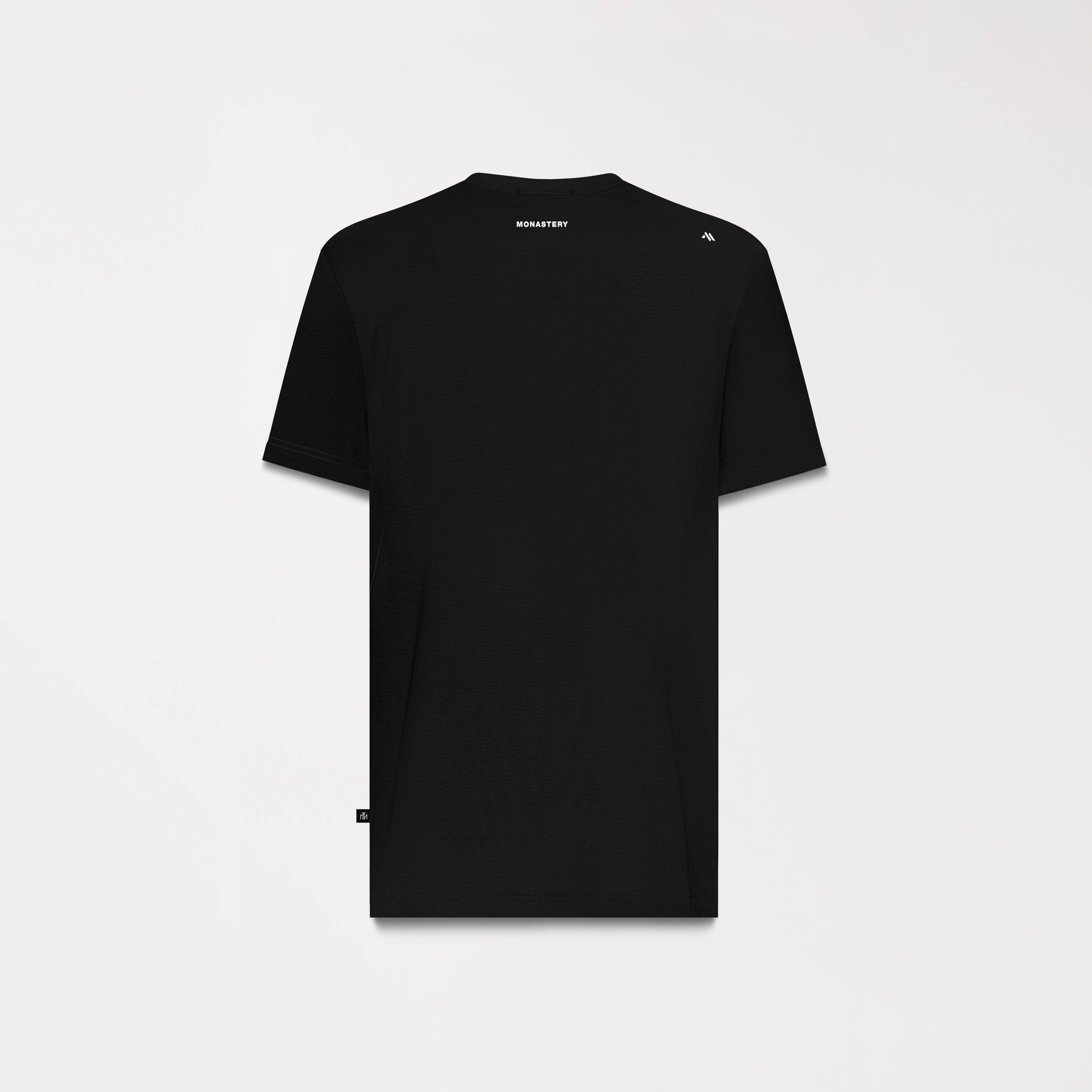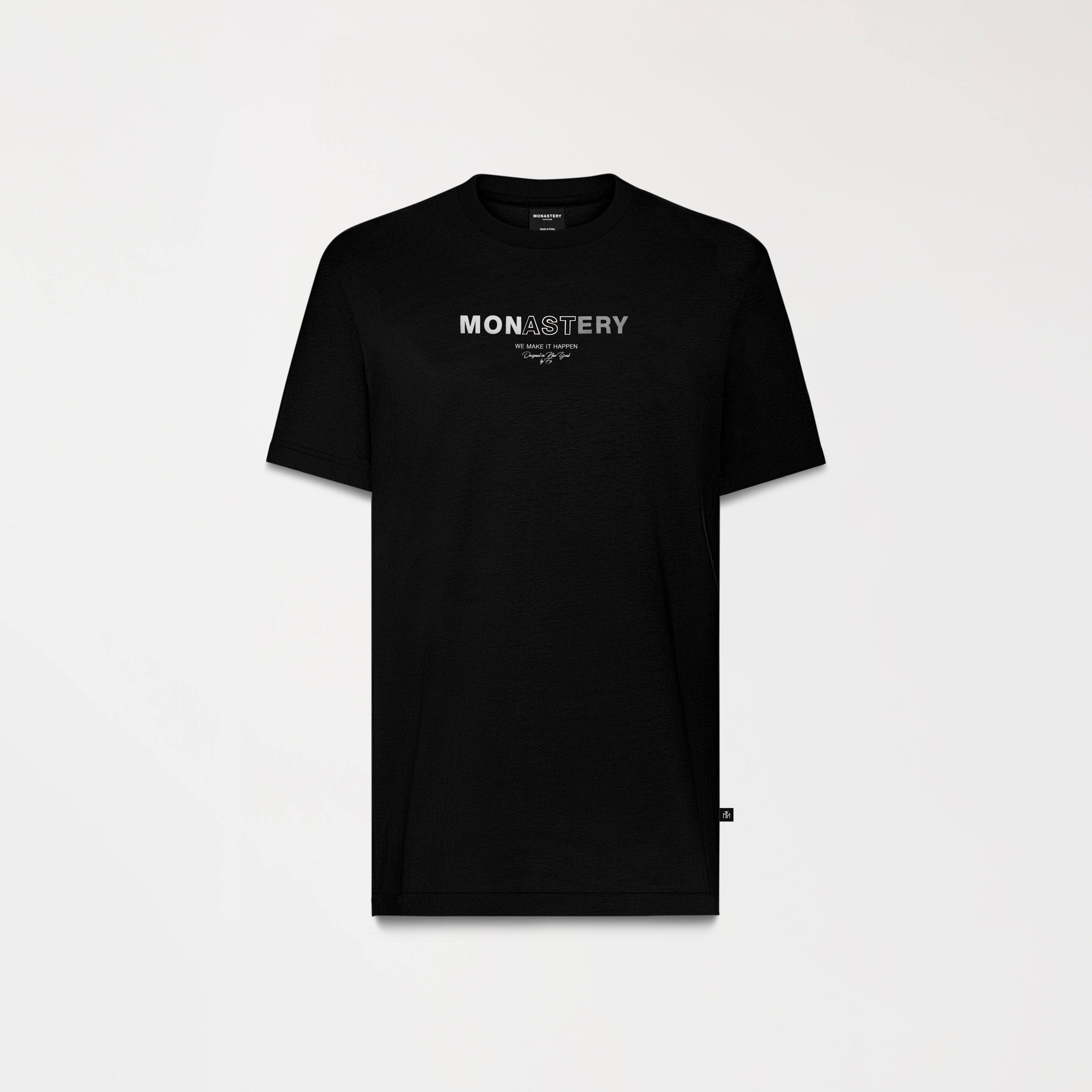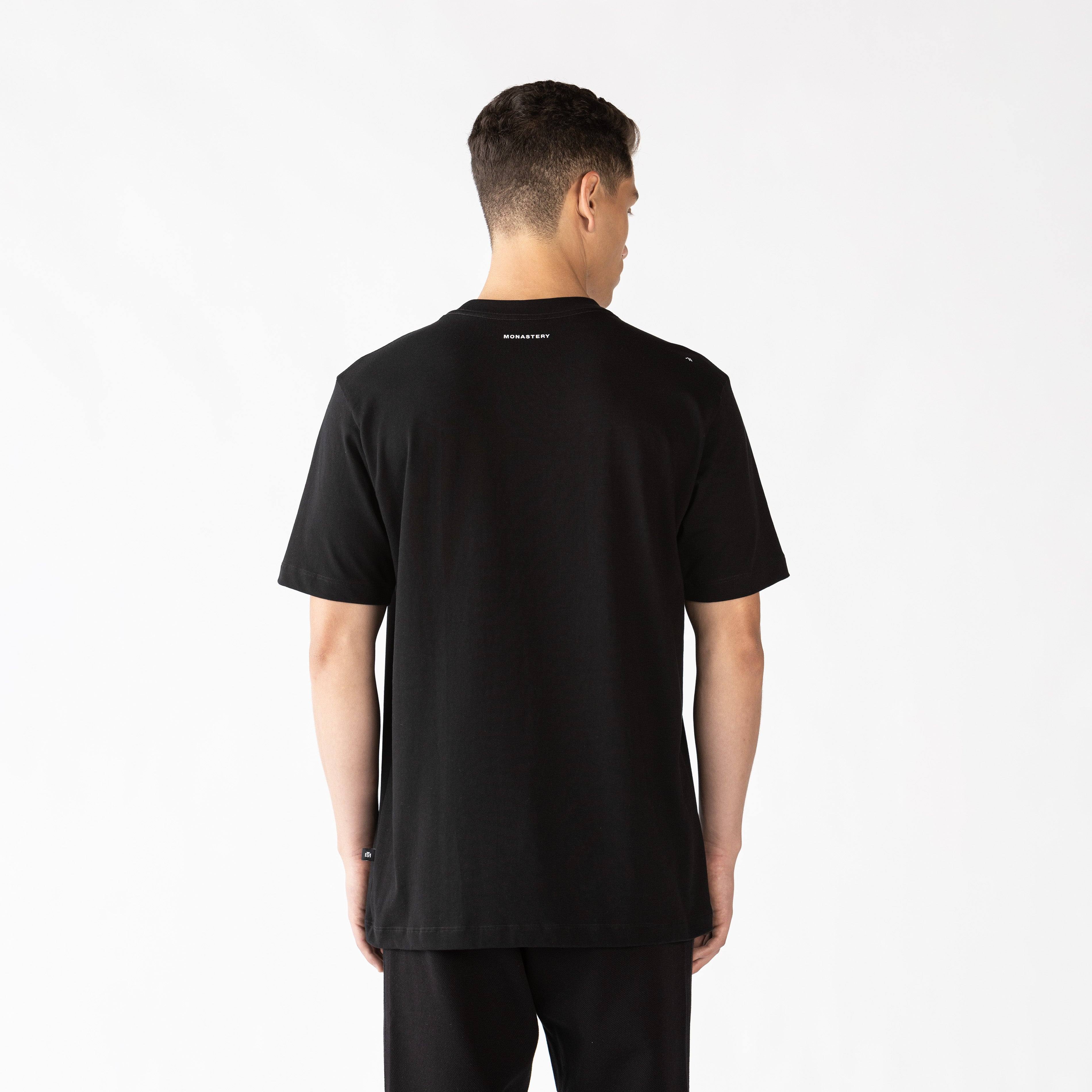 La camiseta Four negra de silueta regular, está elaborada en algodón Monastery destacado por su peso y su excelente tacto .En el frente presenta un estampado el cual combina diferentes tecnicas permitiendo un equilibrio y un toque distintivo en el posterior cuenta con estampados clasicos en tecnica plana en tono contraste con la tela principal .Four es una prenda con un arte icónico renovado, haciendo este articulo fácilmente reconocible, muy versatil para combinar con tu vestuario.