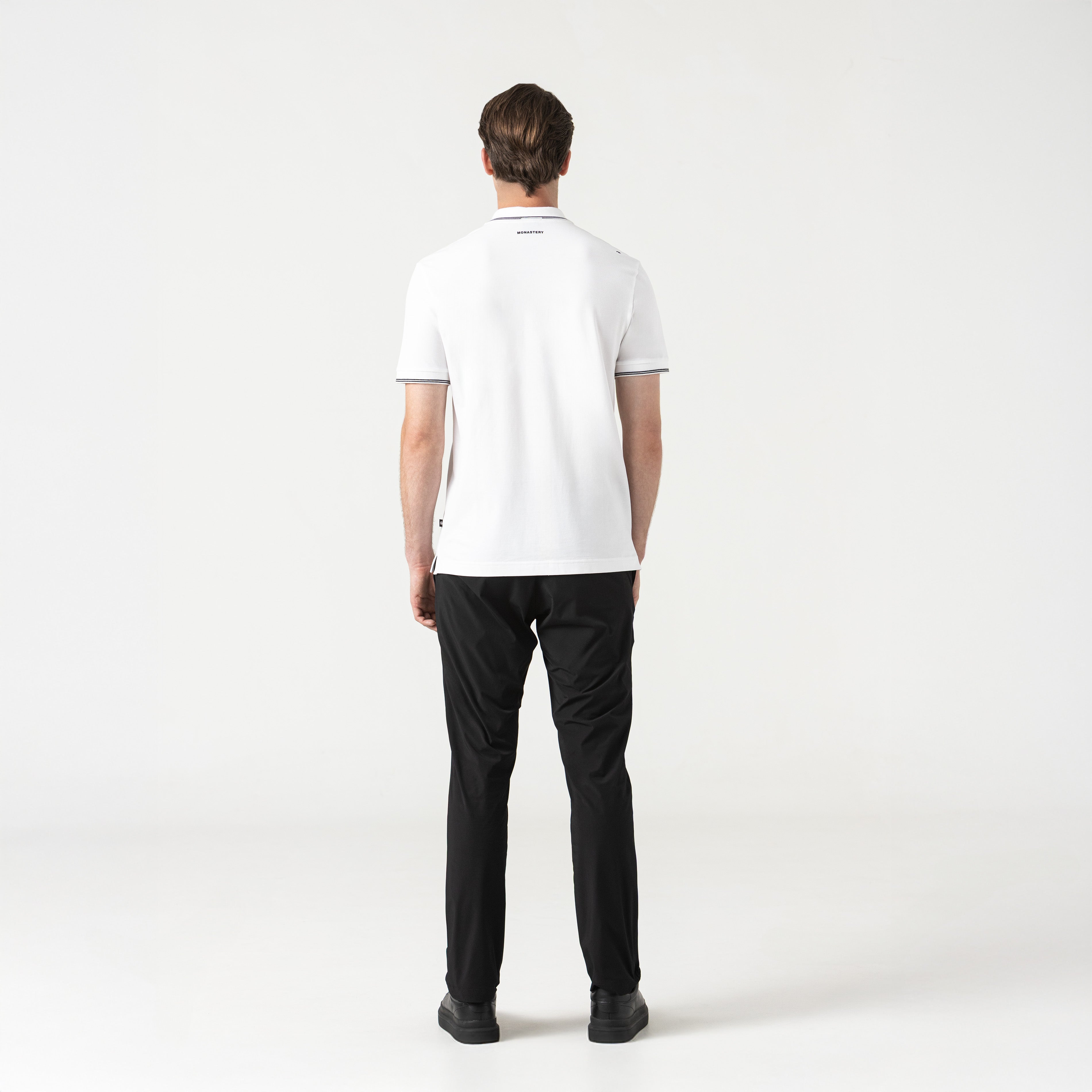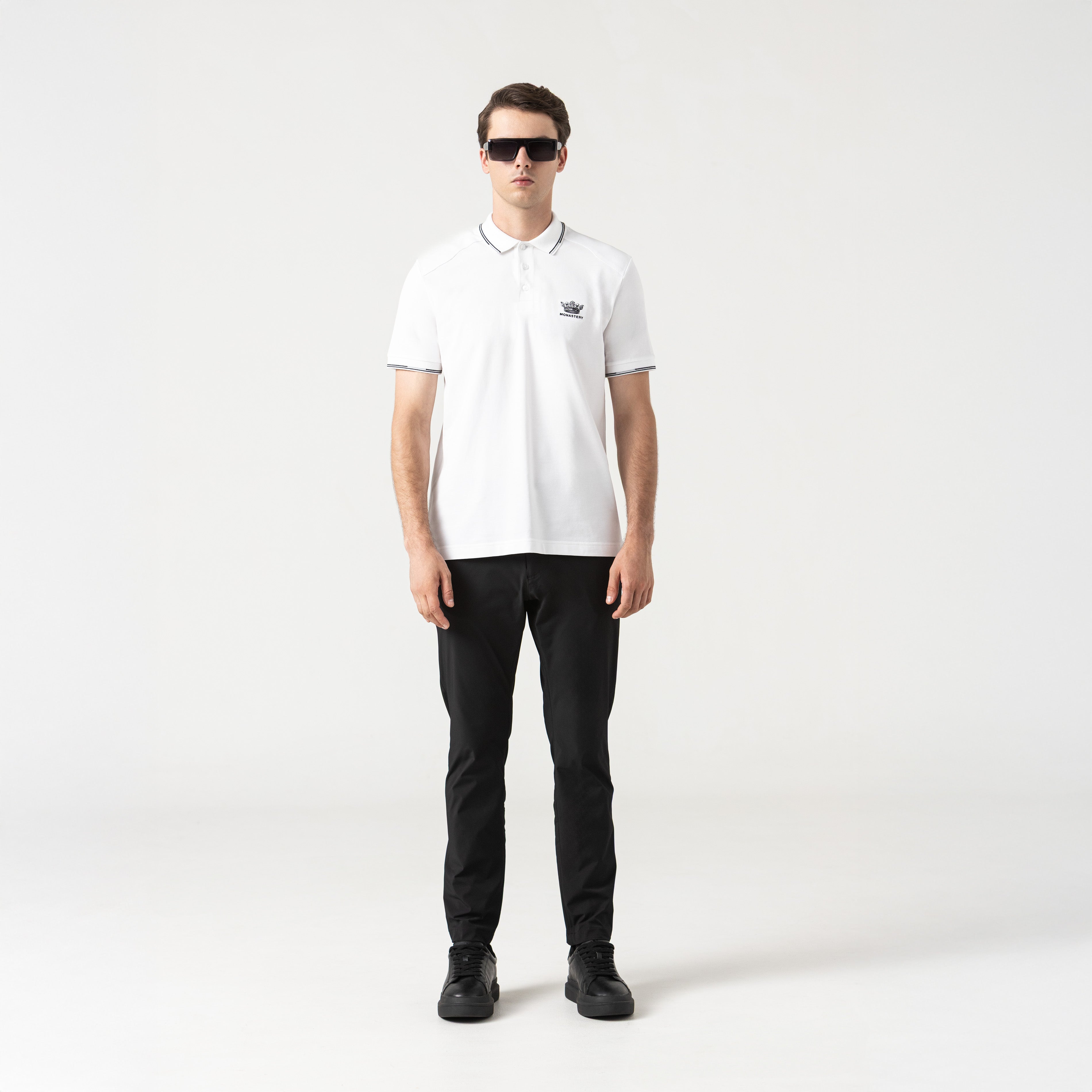 Camiseta tipo polo masculina, elaborada en algodón 100% pima peruano exclusivo para la marca. Franz es una referencia fresca y cómoda, con una silueta clásica y elegante, presenta un diseño renovado de almilla en hombros, cuello y puños en tejido rectilíneo con líneas en contraste, hechos especialmente para ésta referencia, en frente tiene nuestro logo Monastery y una novedosa corona The King bordada en contraste y logos insignia en espalda en alta densidad. Convirtiendo este artículo ideal para lucir en cualquier ocasión.