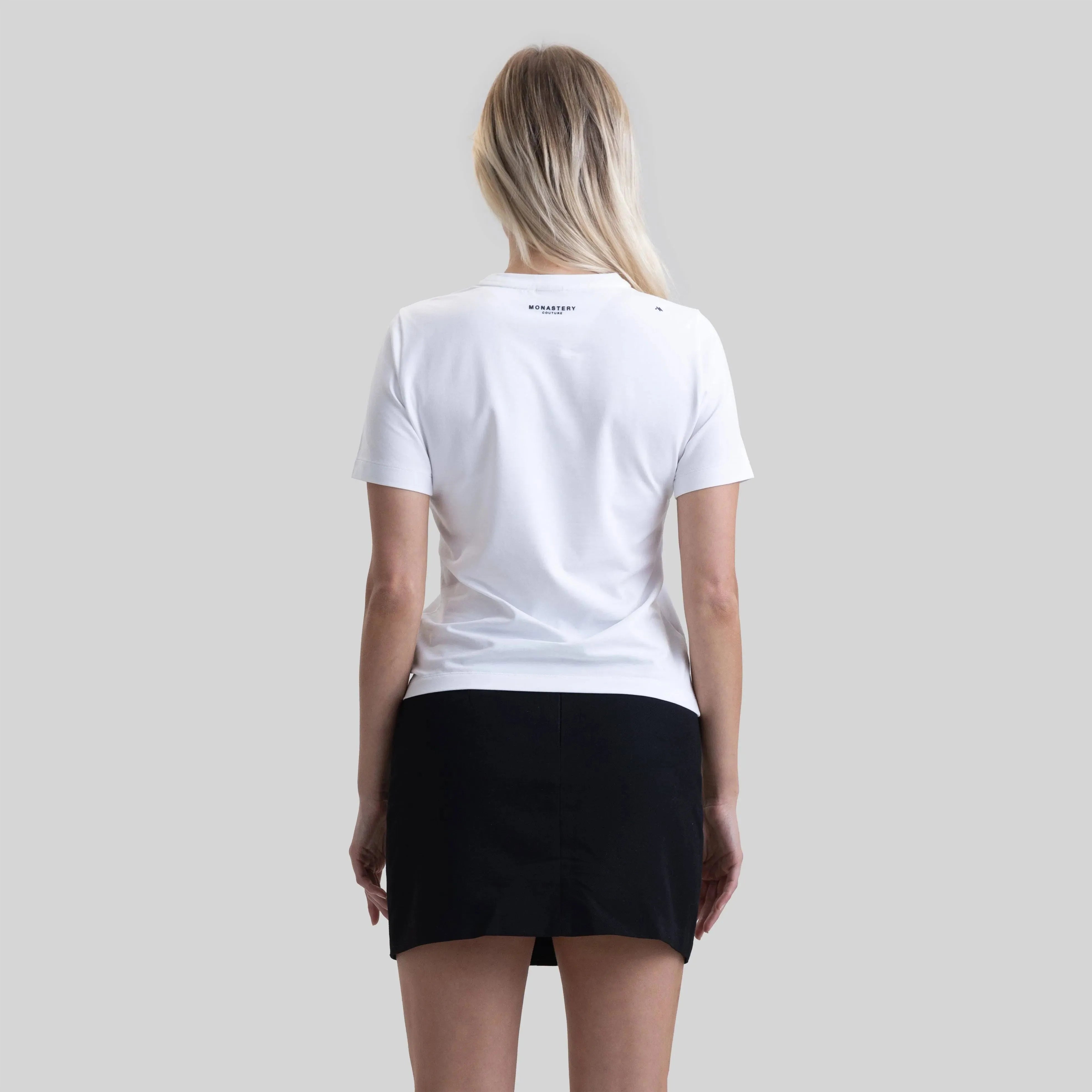 Te presentamos Ginebra, la camiseta femenina que redefine el estilo clásico con un toque contemporáneo. Confeccionada en premium cotton con elastano, esta prenda ofrece una comodidad y frescura inigualables. Su silueta ajustada presenta un estampado del logo Monastery en el centro del frente, acompañado de una frase de marca bordada en cursiva. Ginebra es una prenda esencial para tu estilo, con logos reinventados y texturas que complementan su sobriedad, haciendo de ella un básico imprescindible en tu armario.