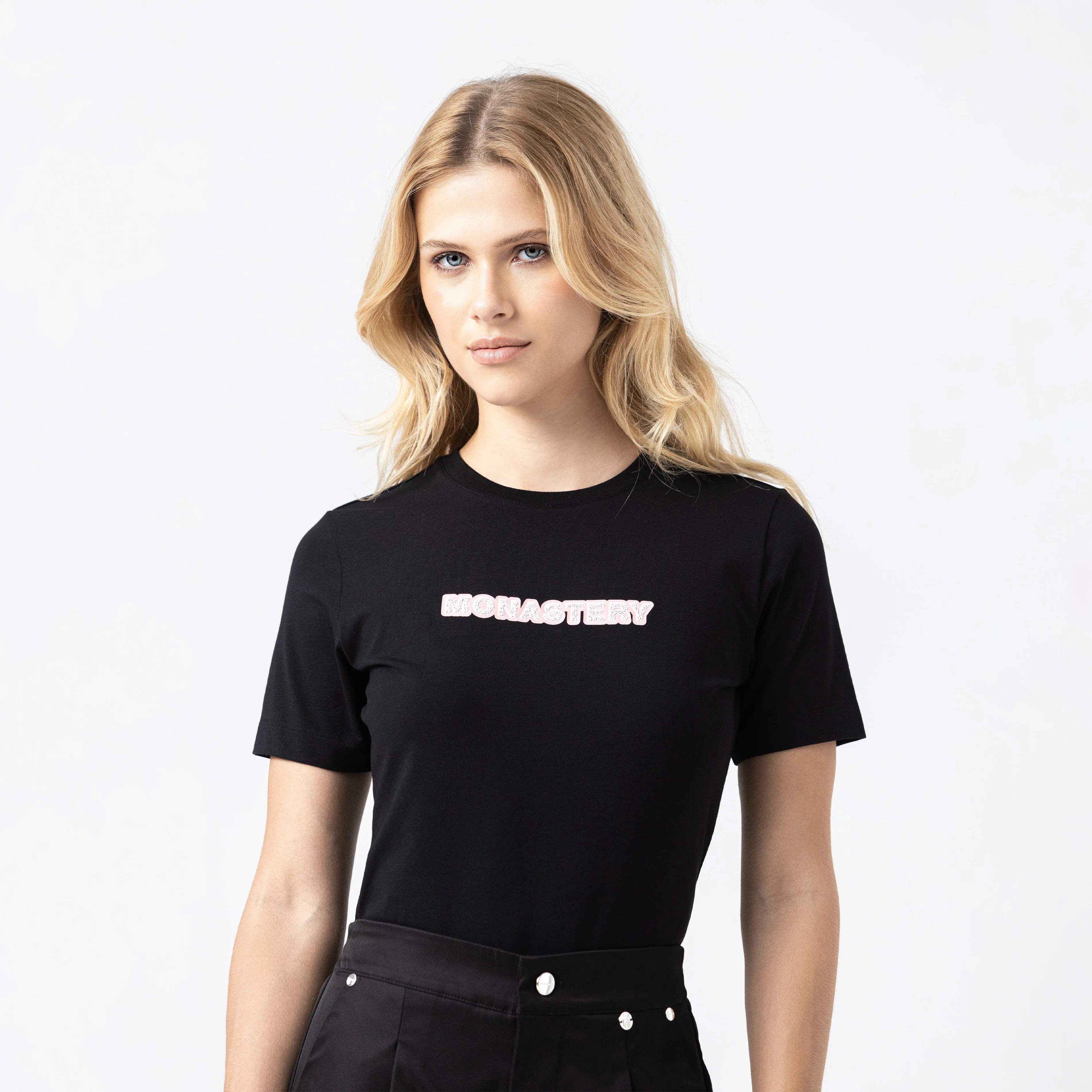 Camiseta femenina, elaborada en premium Cotton con elastano para mayor comodidad y frescura. Este artículo tiene una silueta ajustada, la cual resalta la figura femenina, con un arte de nuestro logo Monastery, en una tecnica mixta de caviar y estampado plano, una referencia con textura y un efecto visual mas dinamico. Esta acompañada de los logos clasicos en espalda tono bridal rose convirtiendo este articulo en una prenda versátil para combinar con tu vestuario, ideal para lucir en tu día a día.