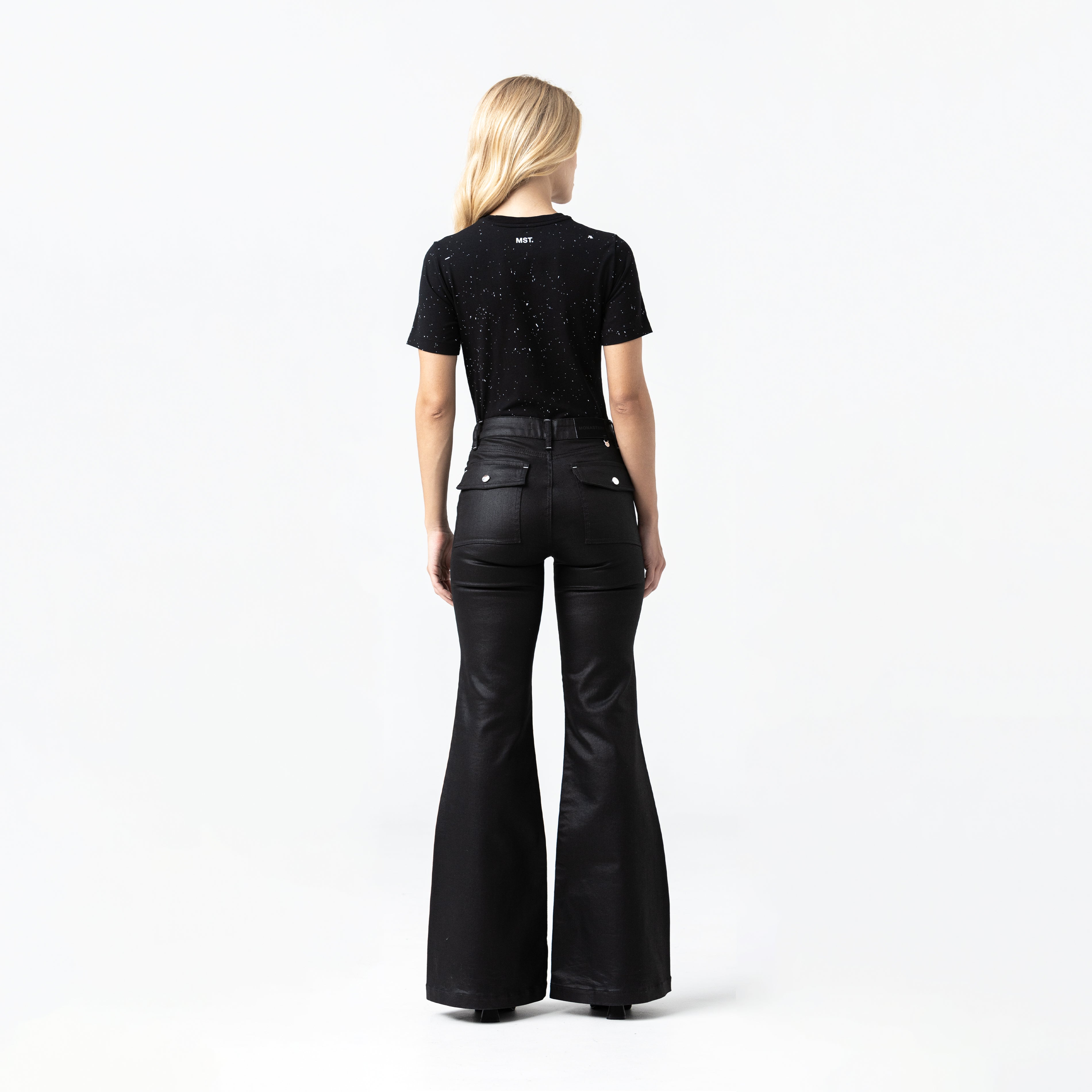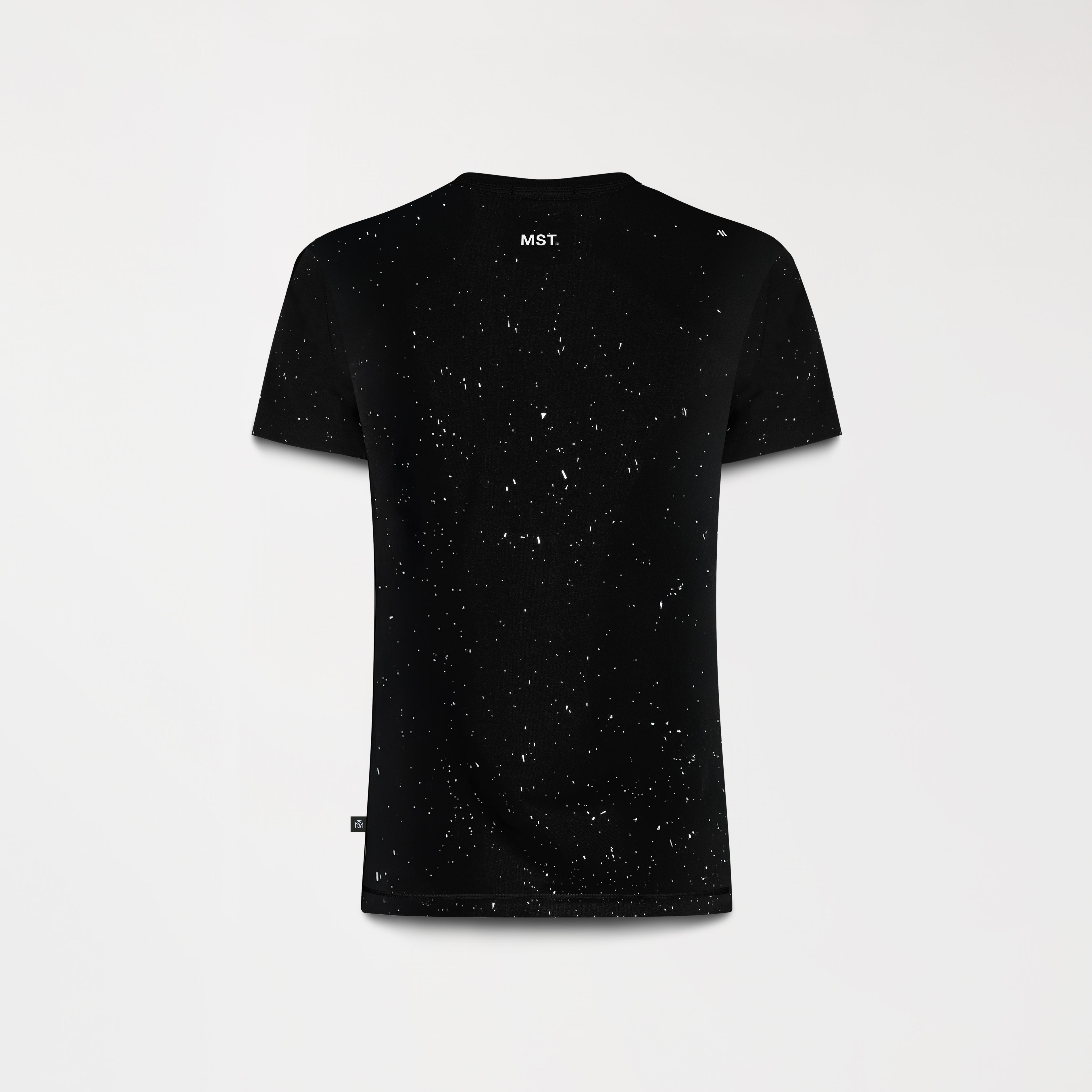 Camiseta para mujer elaborada con una silueta pequeña pensado para resaltar la figura femenina, Kaace es un diseño que presenta el icónico logo MST en técnica estampado plano y se destaca un fondeo con un patrón de pequeñas motas blancas distribuidas uniformemente en toda la superficie de la prenda, creando un efecto distintivo y dinámico, Elaborada en premium cotton y elastano para mayor comodidad y frescura.