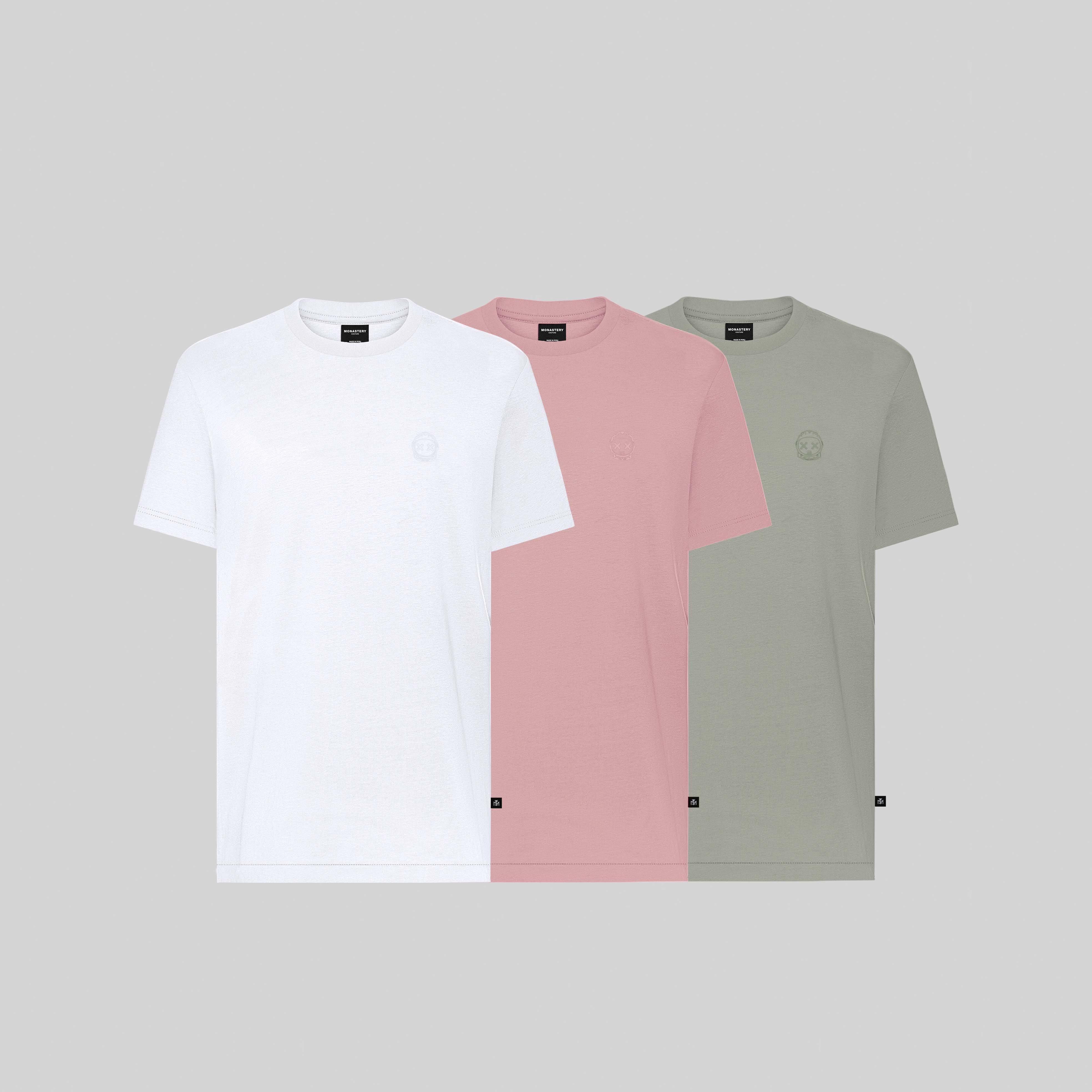 KART THREE PACK T-SHIRT MEN REGULAR SEAGRASS - WHITE - BRIDAL ROSE