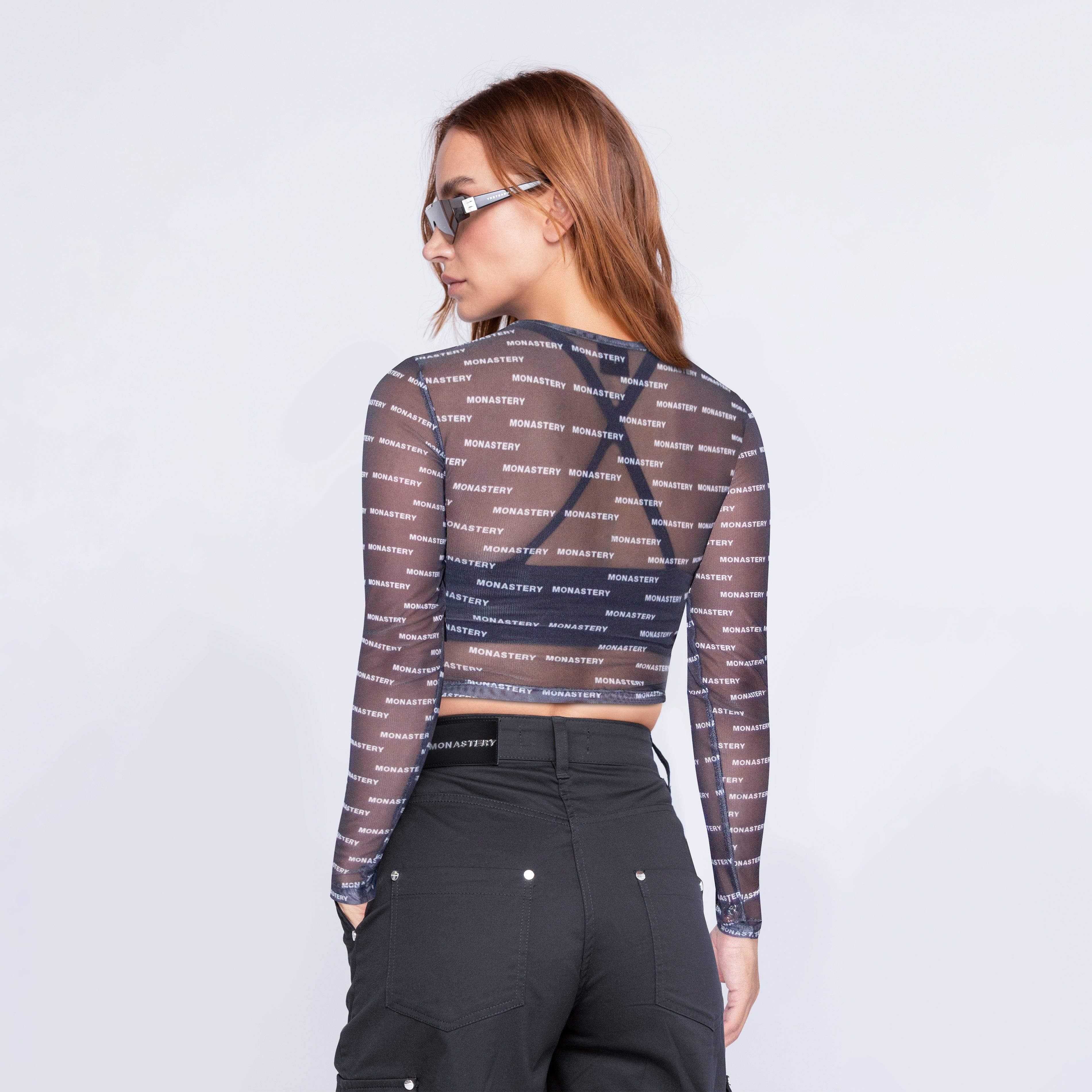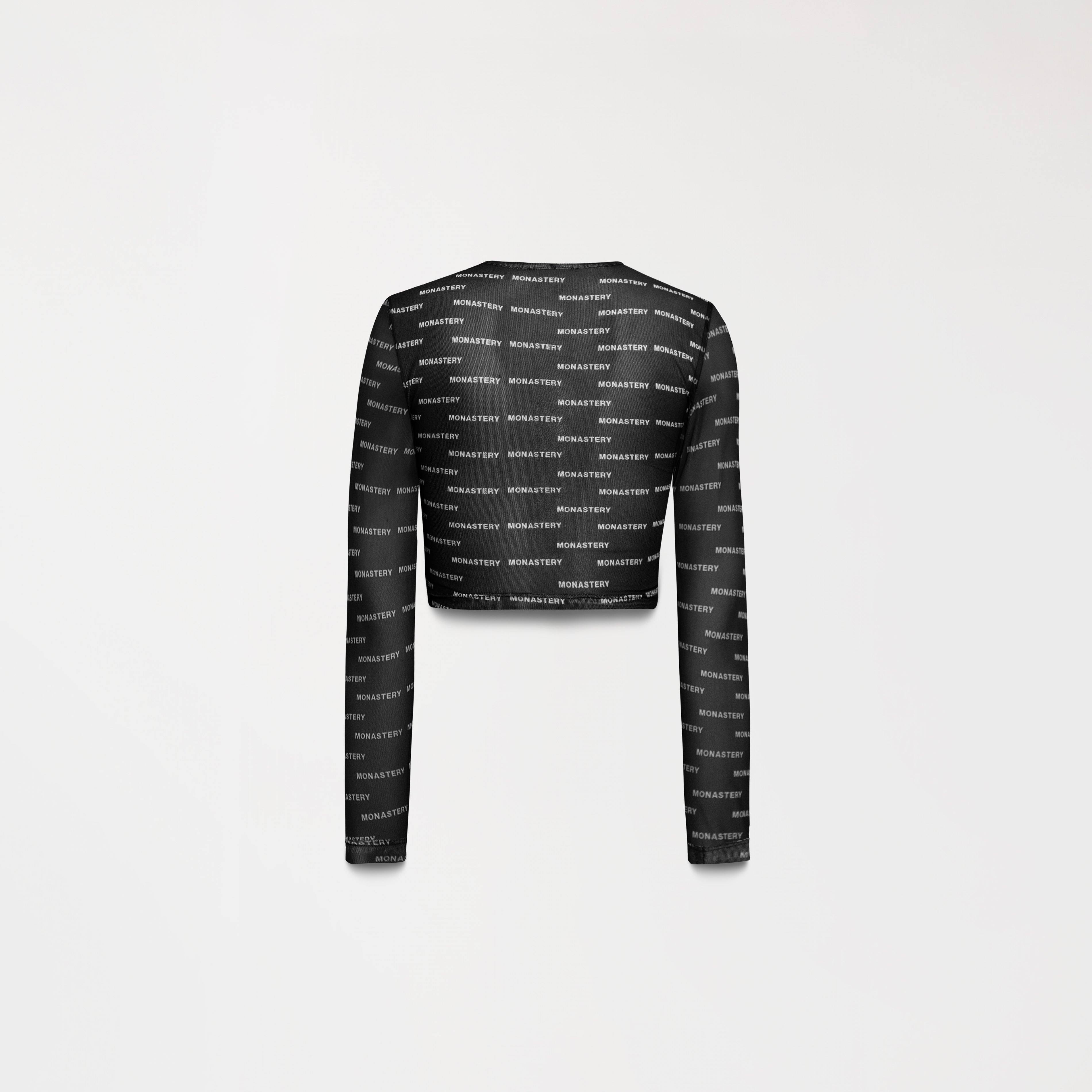 La prenda se distingue por su diseño único logrado mediante sublimación continua, utilizando la palabra Monastery" creando un efecto visual impactante. El patrón de la palabra se distribuye de forma fluida, envolviendo la prenda de manera elegante .