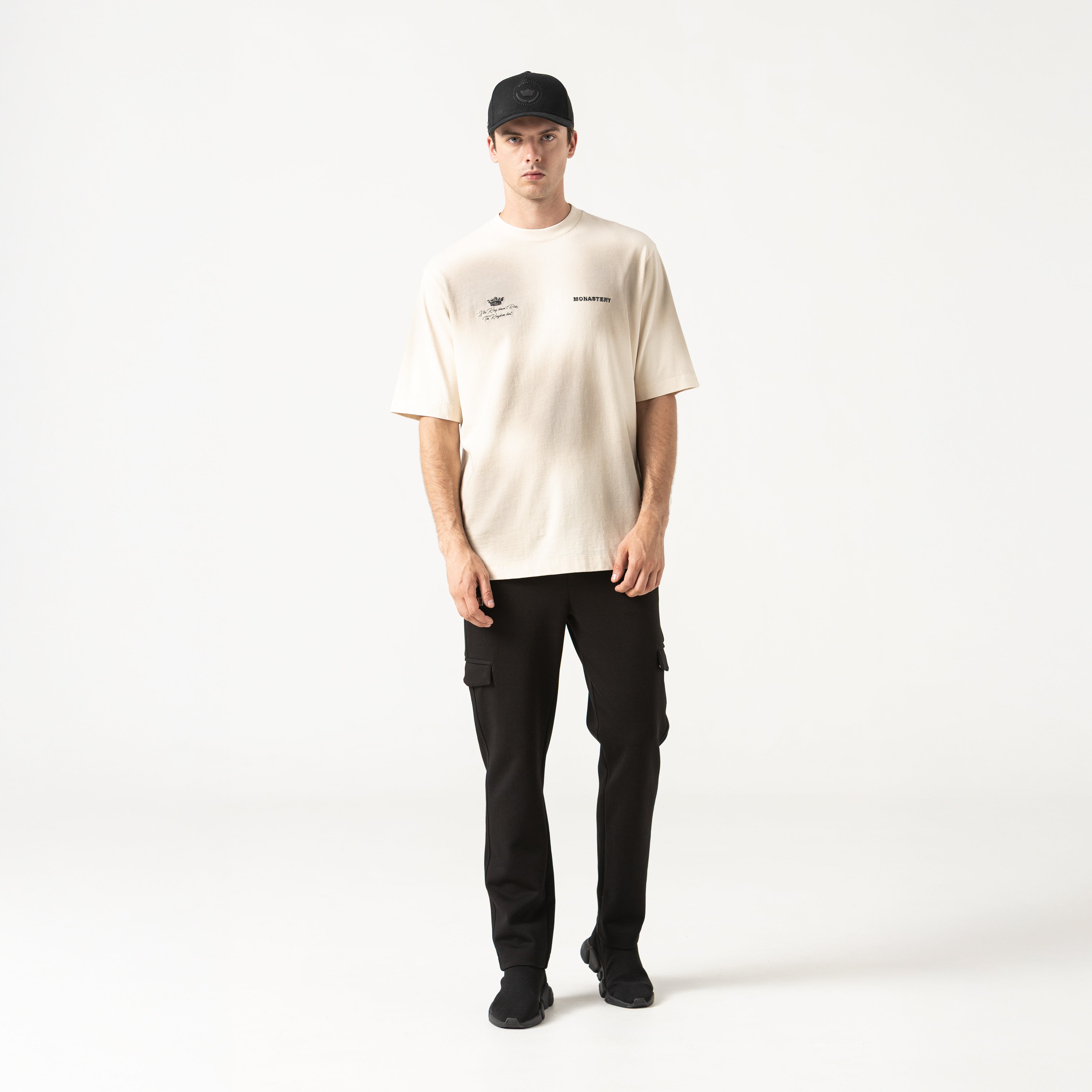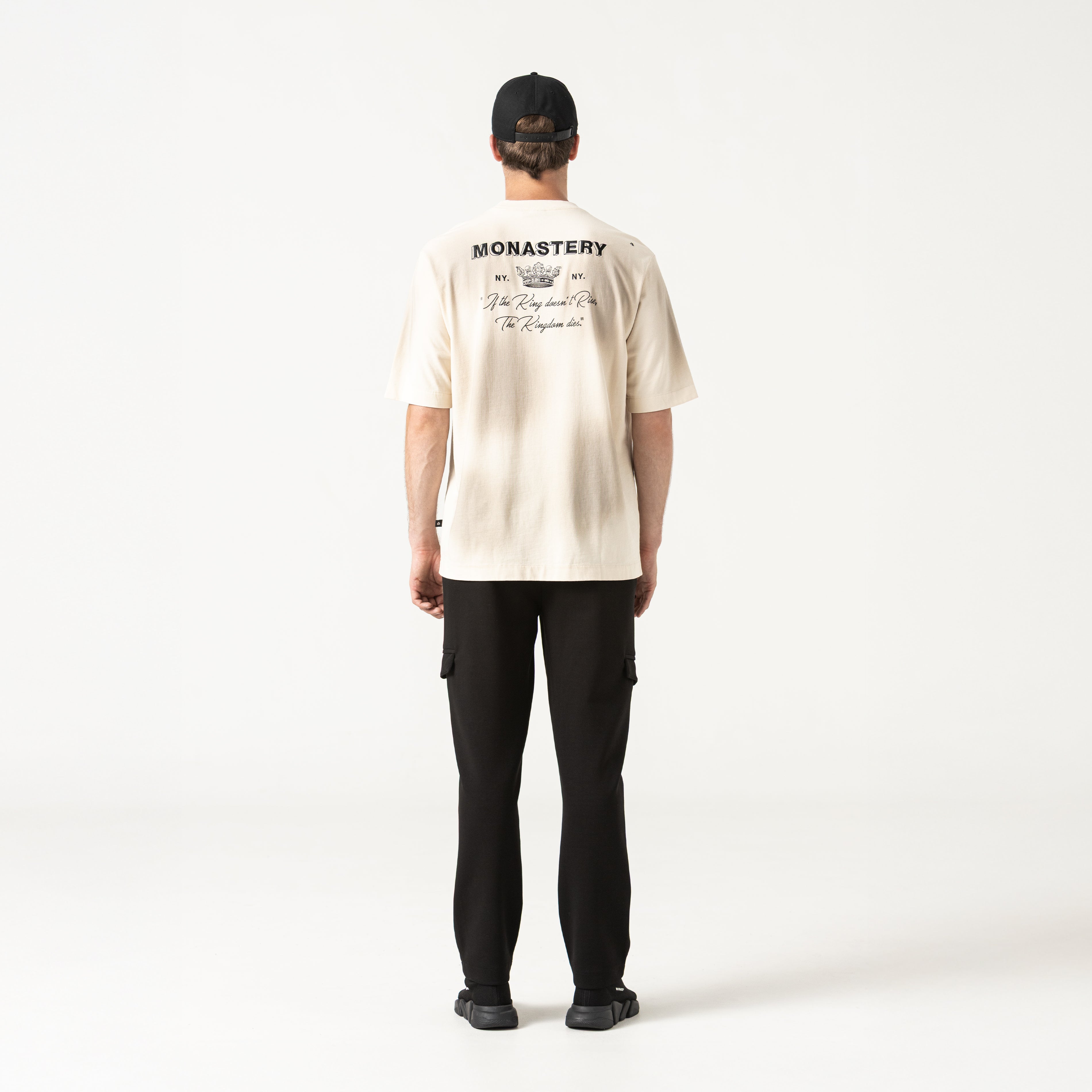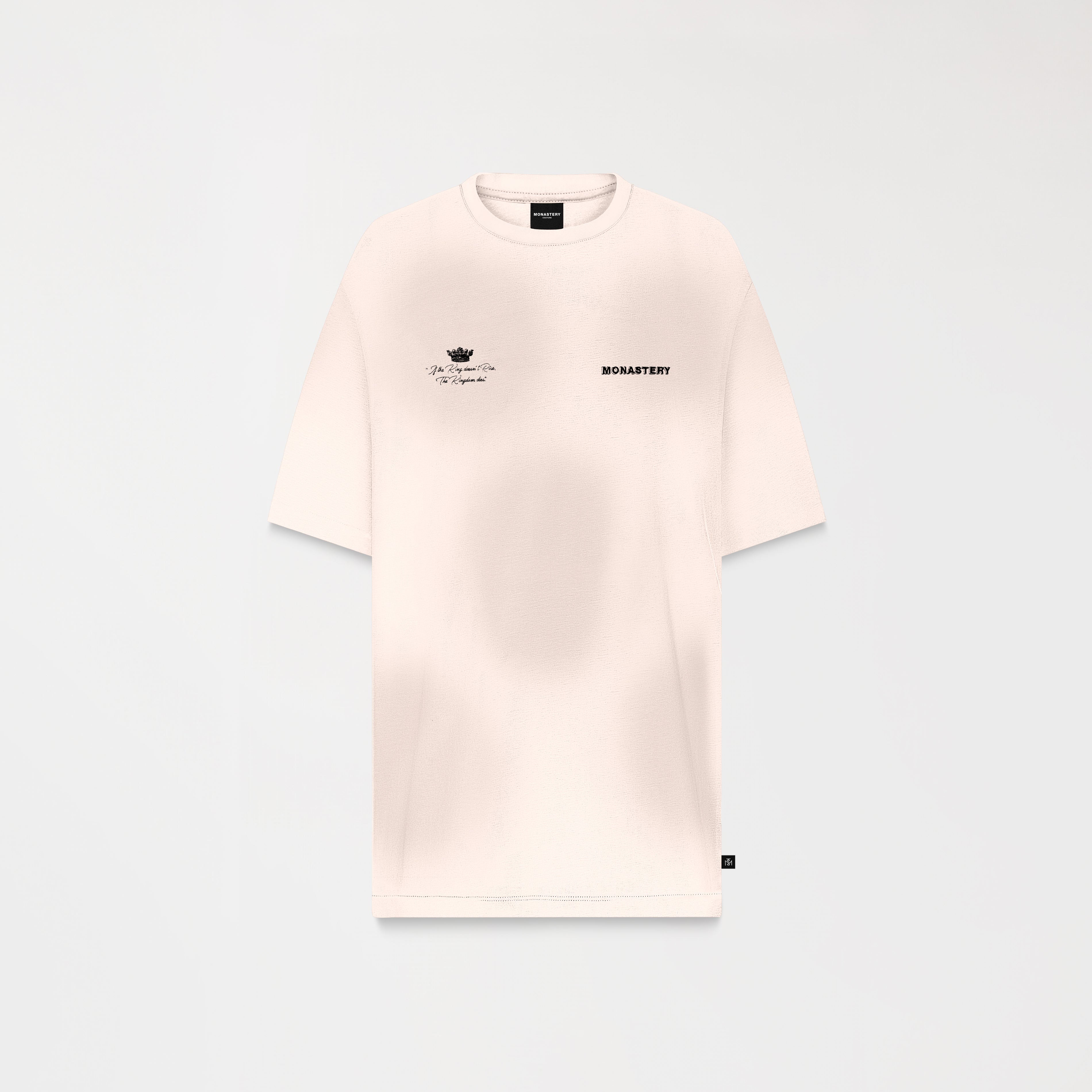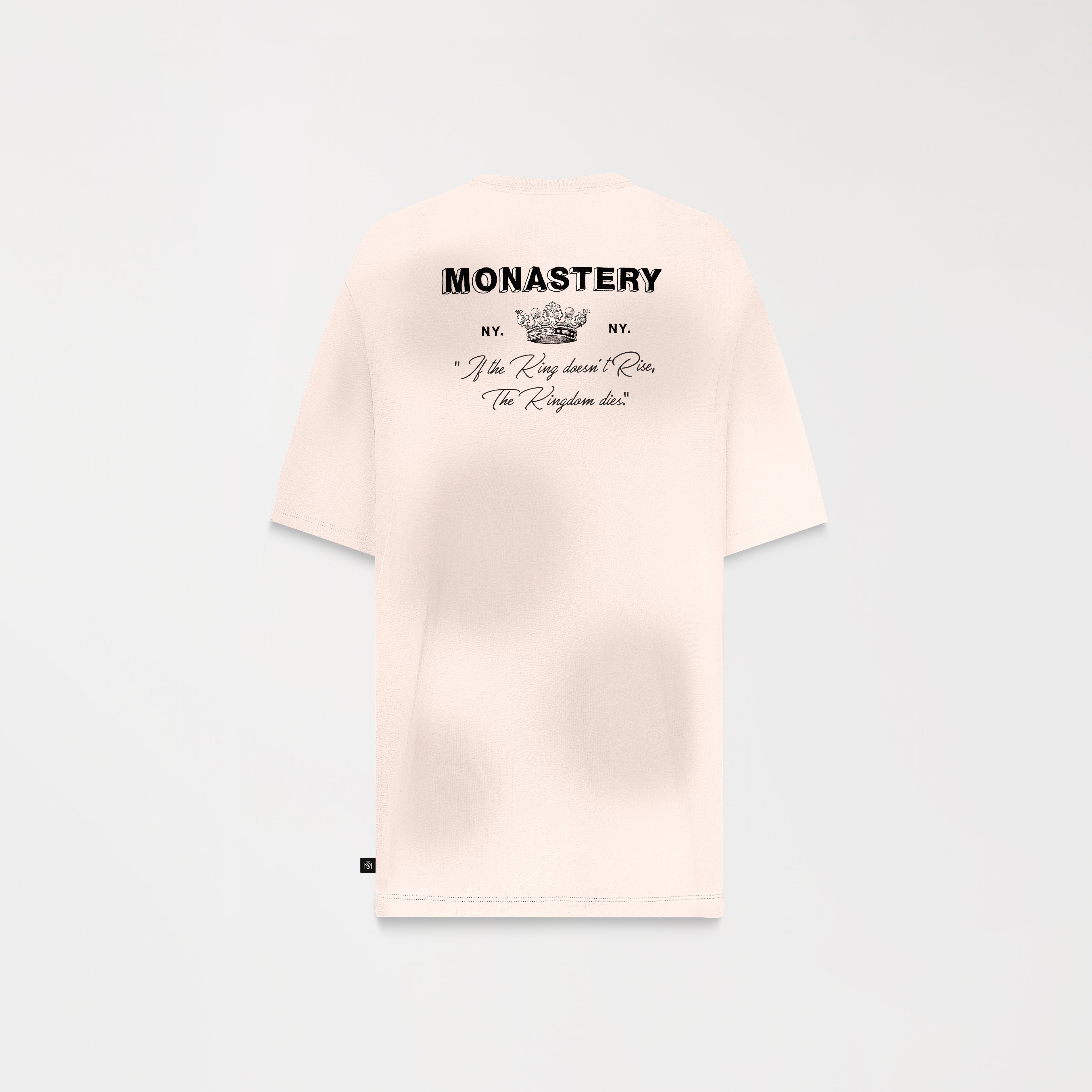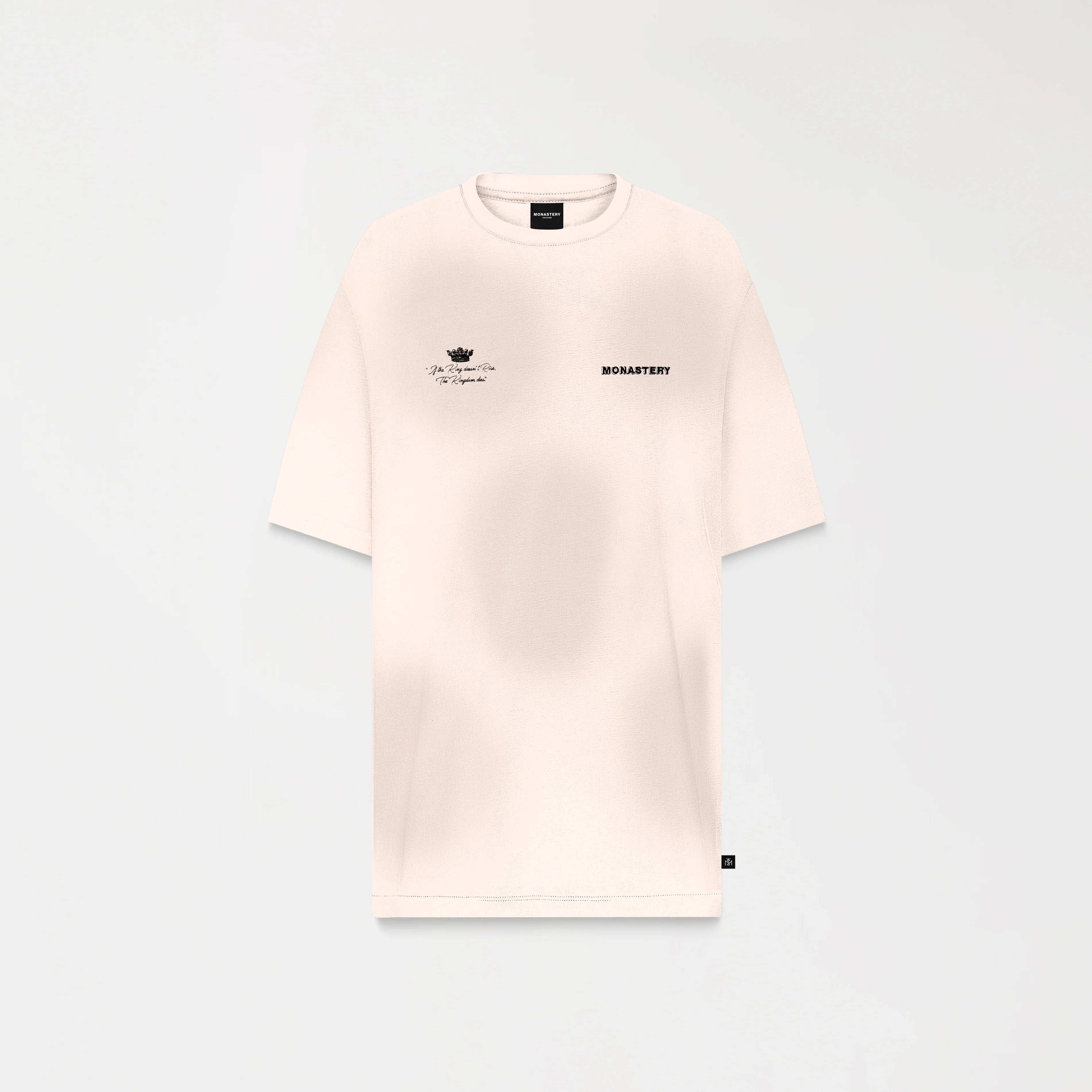 Loan es una camiseta masculina, elaborada en 100% algodón exclusivo para Monastery. Esta prenda presenta en frente un arte exclusivo para la colección The King y nuestro icónico logo Monastery en técnica de bordado plano, en espalda tiene una consigna que se presenta como propósito y principio de vida; combinando técnicas de bordado plano, semialta y alta densidad; ésta es una prenda con detalles renovado, como su efecto ahumado, creando un arte para sobresalir.