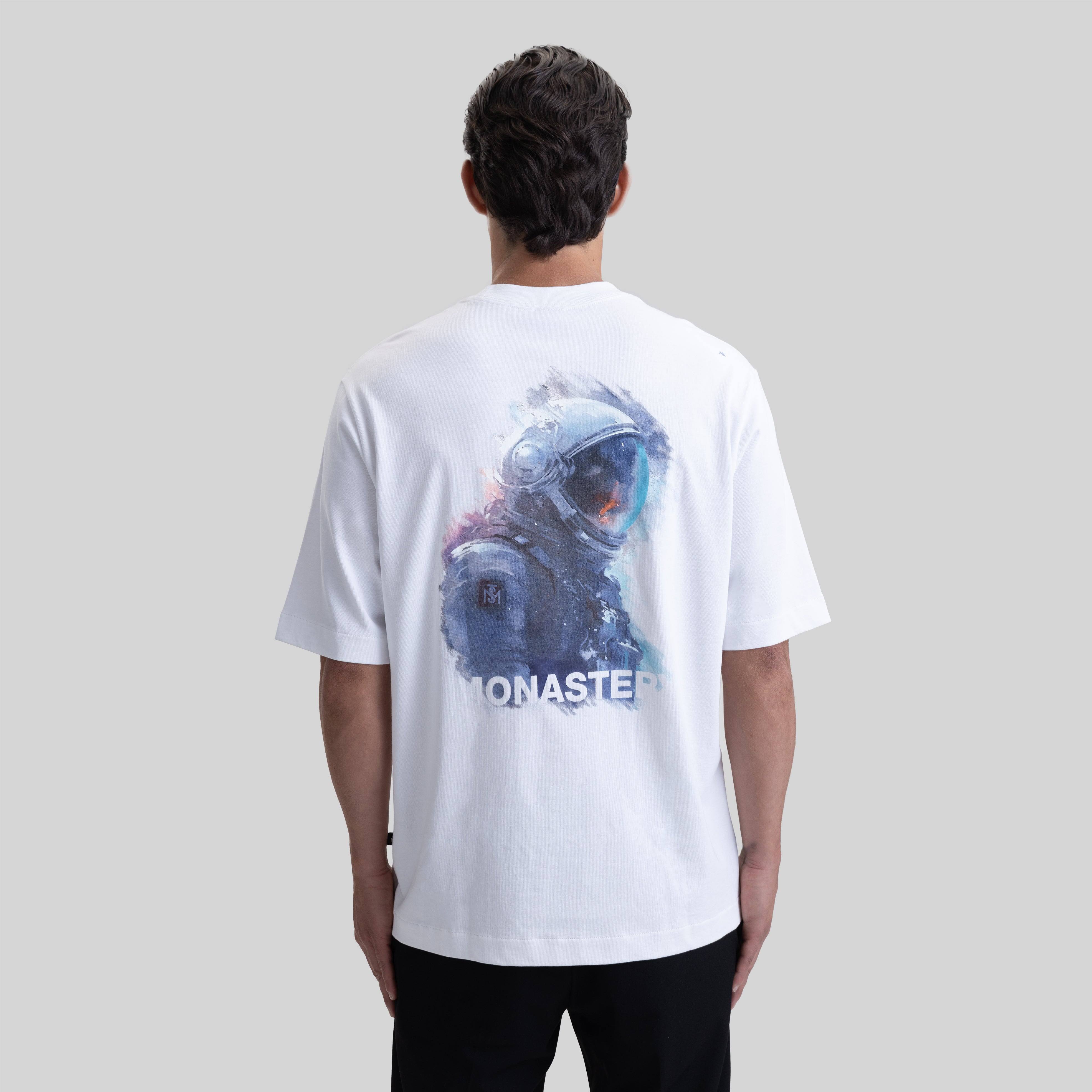 Maranello es una camiseta oversize masculina con estampado del logo TSM en el centro del frente, y con estampado en tramas policromáticas en el centro de la espalda de nuestro icónico astronauta Phillip, acompañado del logo Monastery en el mismo tono de la prenda, creando un arte destacado. Este artículo está elaborado en algodón peruano exclusivo para Monastery.