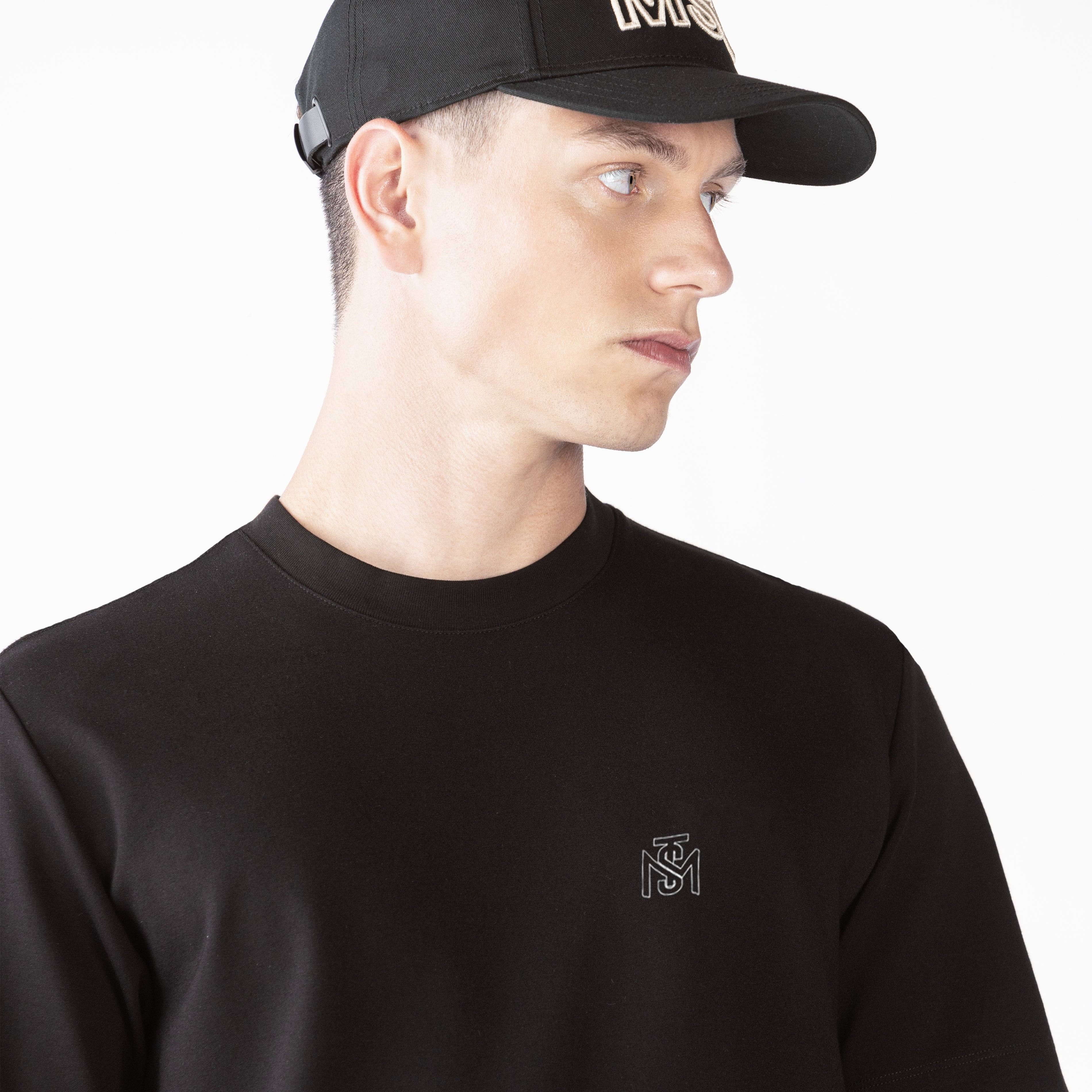 En el frente de la camiseta, destaca el estampado plano textil del logo TSM, un diseño sencillo pero moderno, con un acabado nítido y preciso. En la parte posterior , la camiseta presenta un estampado en gel round, una técnica que aporta una textura ligeramente elevada y un acabado brillante. Este estampado incluye logos clásicos de la marca, aplicados en un acabado plano textil. El contraste entre el gel round y el estampado textil plano crea un efecto visual único, dando una sensación de profundidad y dinamismo al diseño.