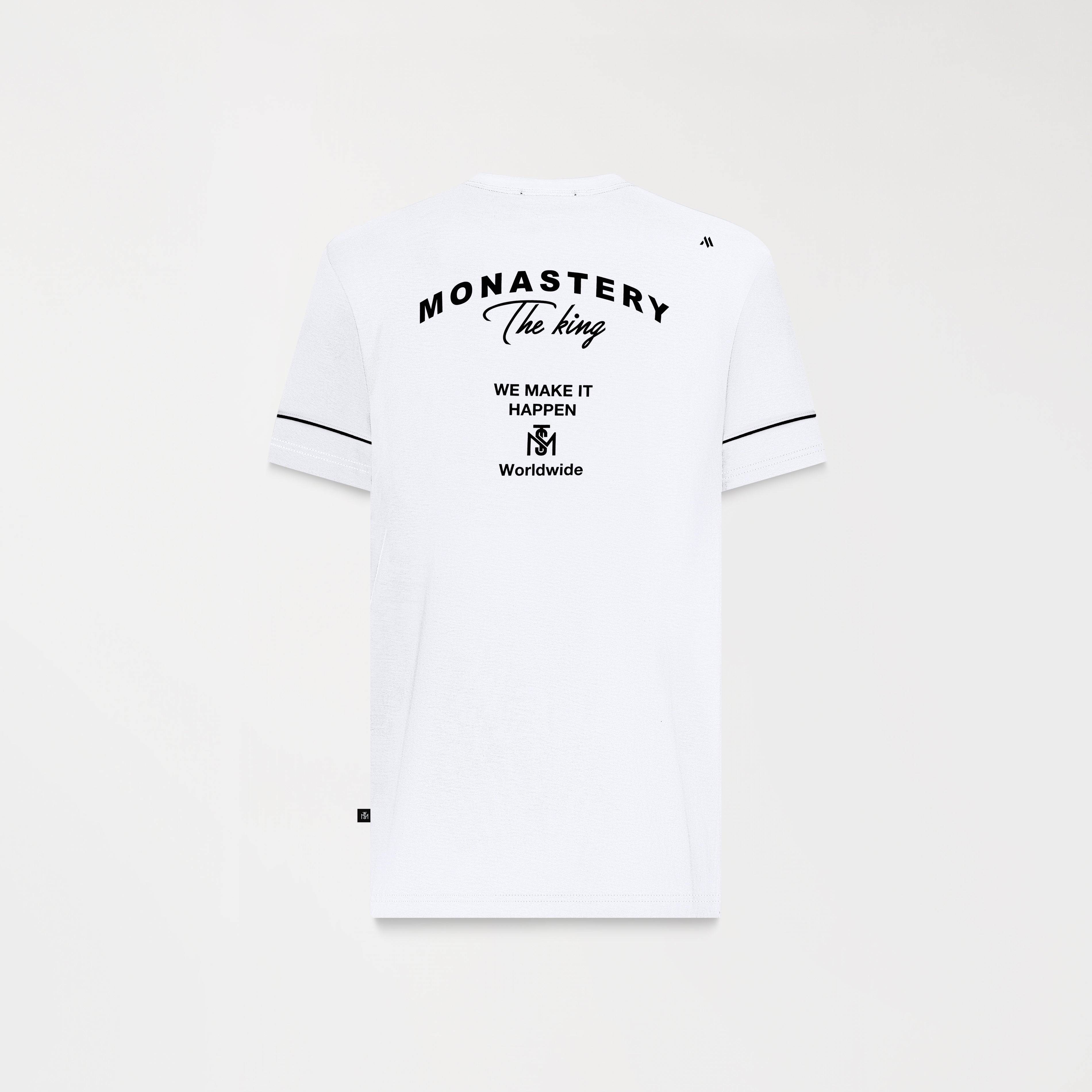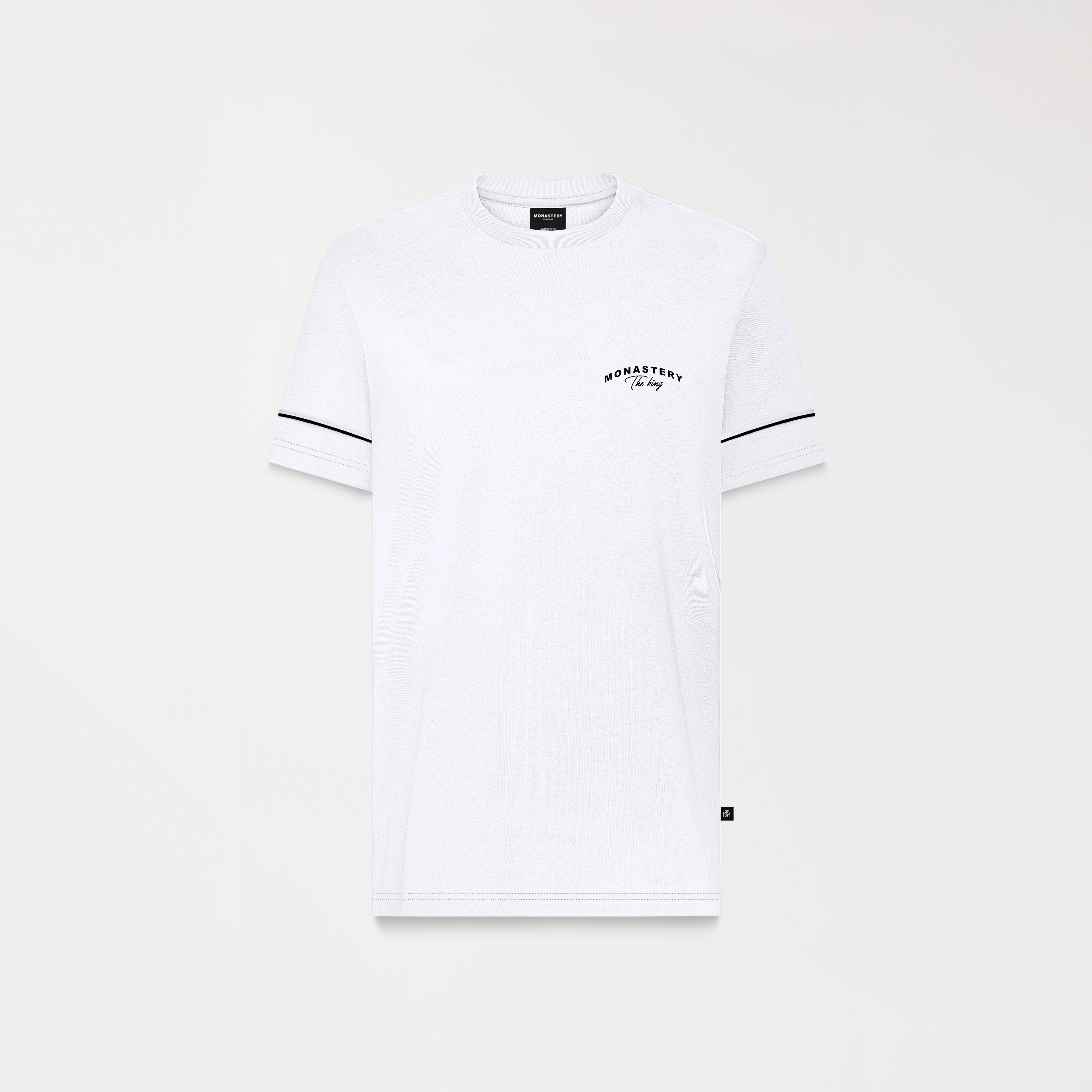 Nox es una camiseta masculina, fresca y cómoda, la cual lleva arte logo Monastery en punto corazón en técnica plastisol transfer mate y en espalda cuenta con arte logo Monastery en alta densidad, convirtiendo este articulo en una prenda dinámica y moderna. Elaborado en una silueta regular con cuello rib 2,5cm en algodón 100% exclusivo para la marca.