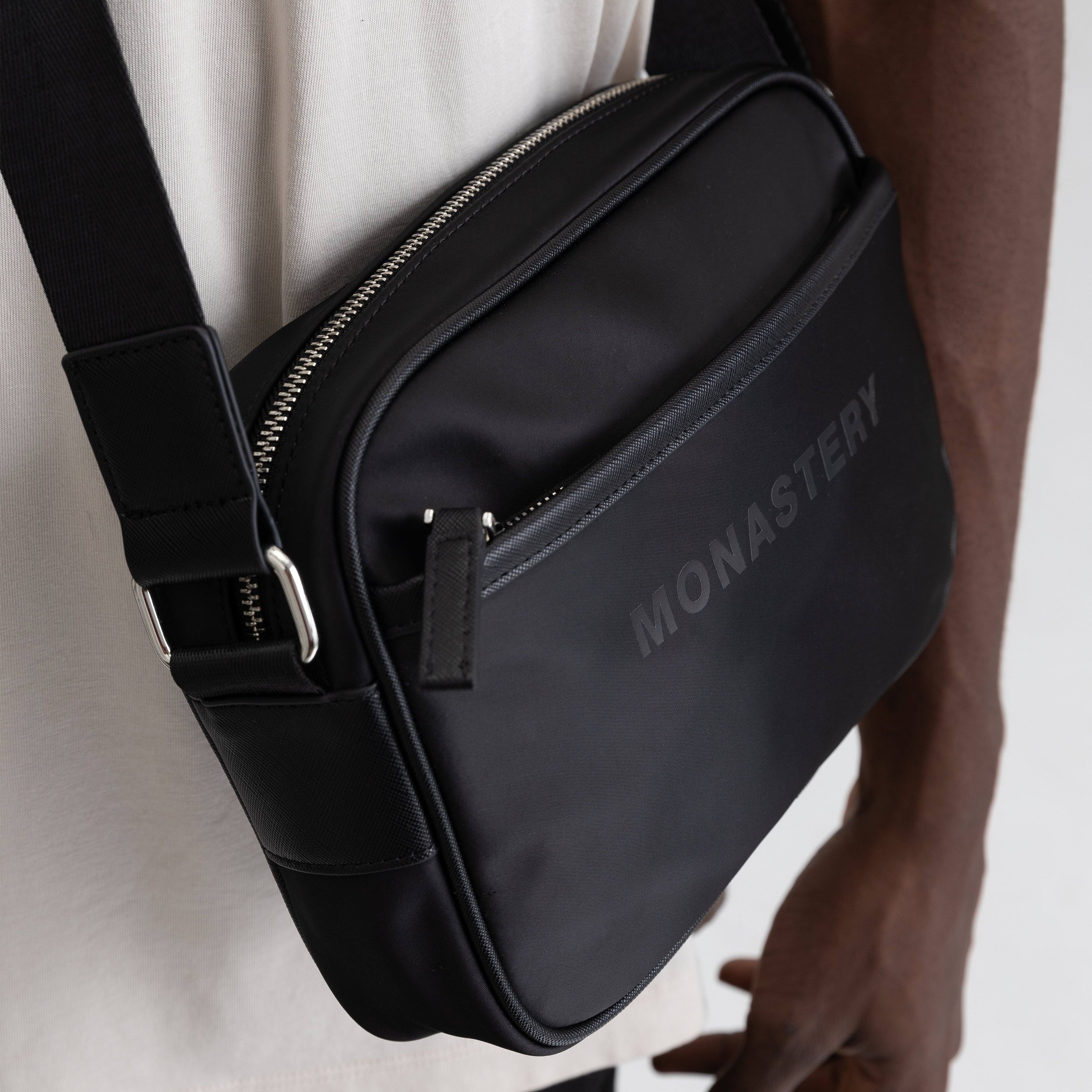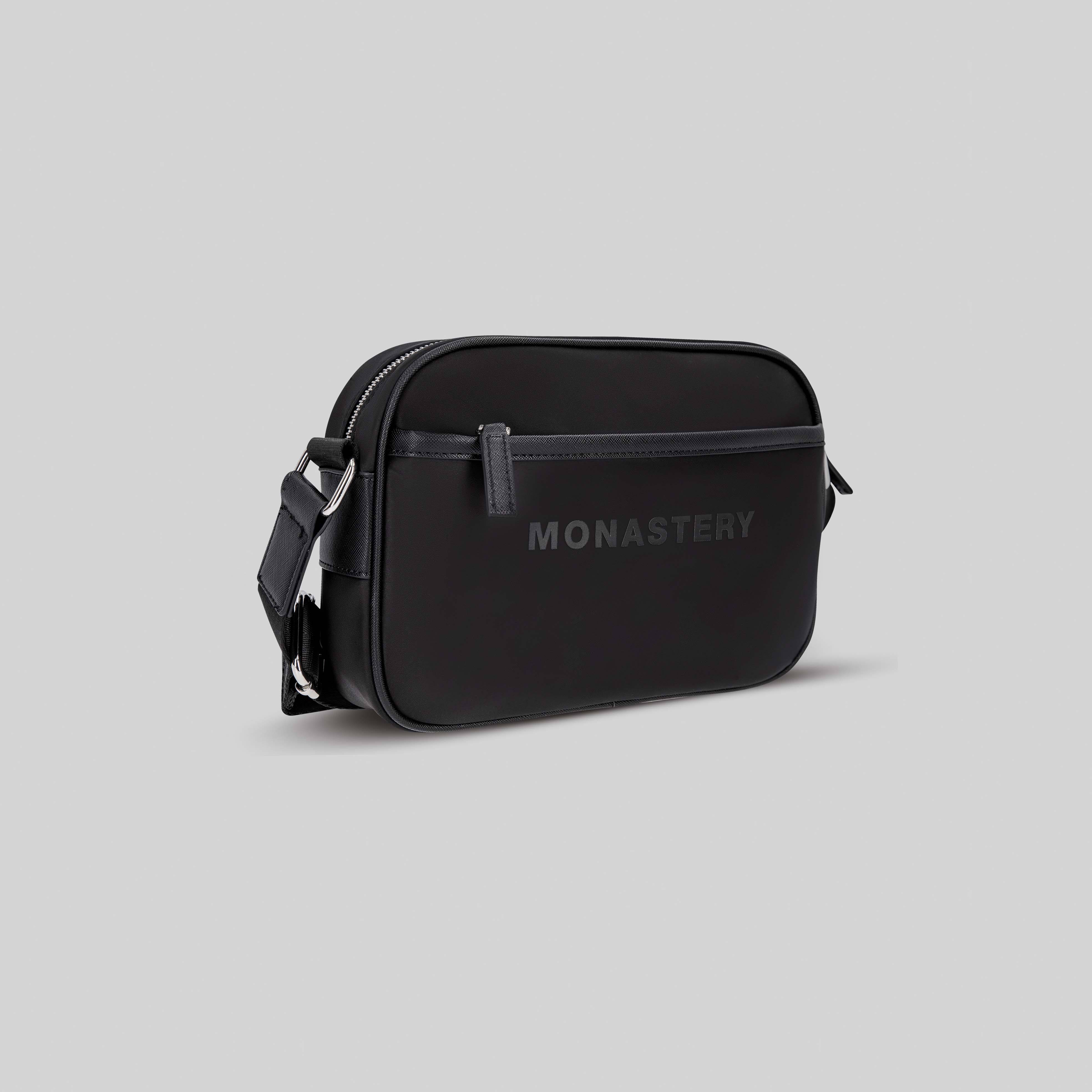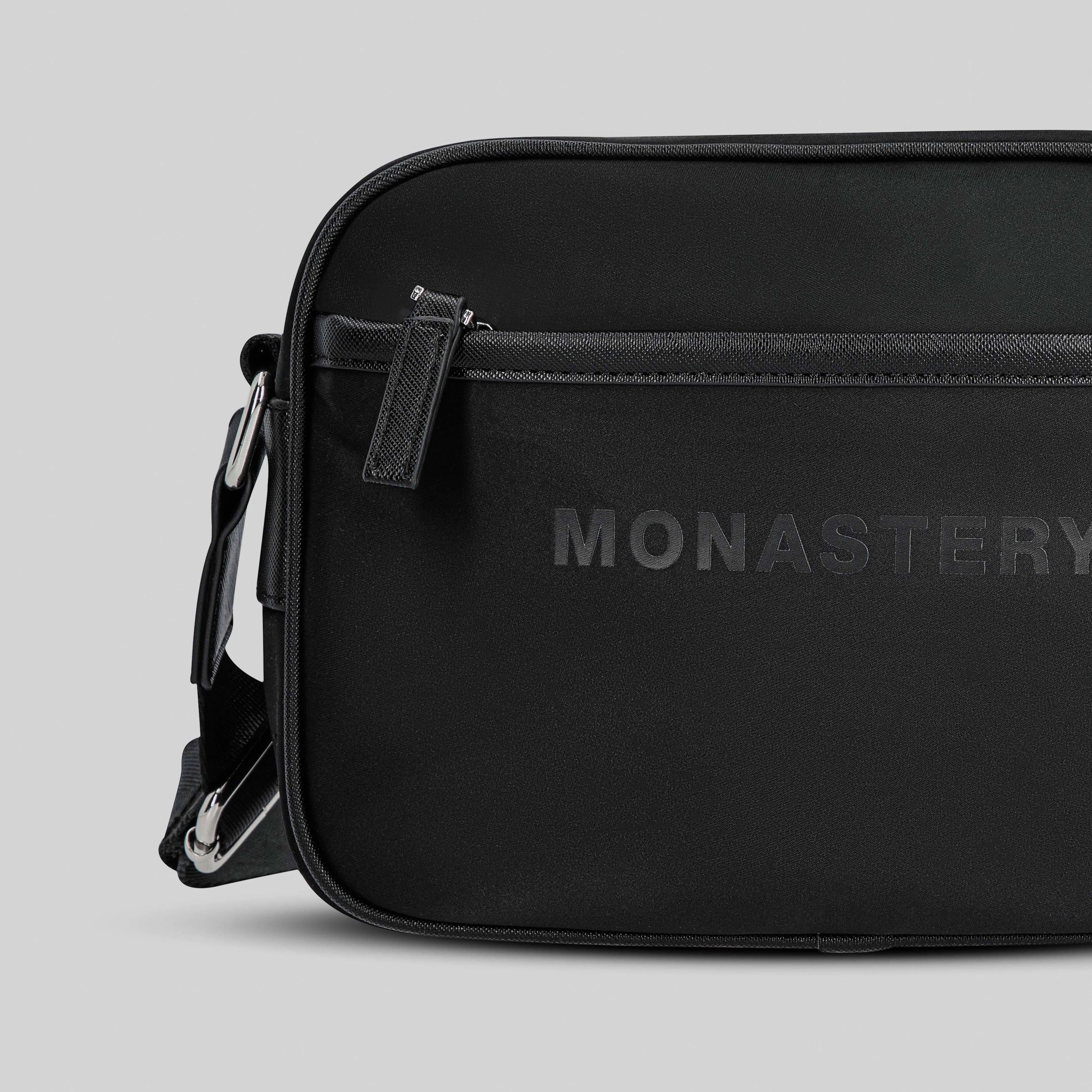 El FannyPack Alfa está elaborado en nylon y ofrece amplio almacenamiento con múltiples bolsillos. Destaca por tener el icónico logo de la marca estampado en su cara delantera, así como una placa con el logo Monastery Couture repujado sobre metal, que combina con sus herrajes y cierres. Además, cuenta con una cargadera en Jacquard que muestra sutilmente el logo de la marca entre su tejido, y refuerzos en las puntas para añadir durabilidad y dinamismo.