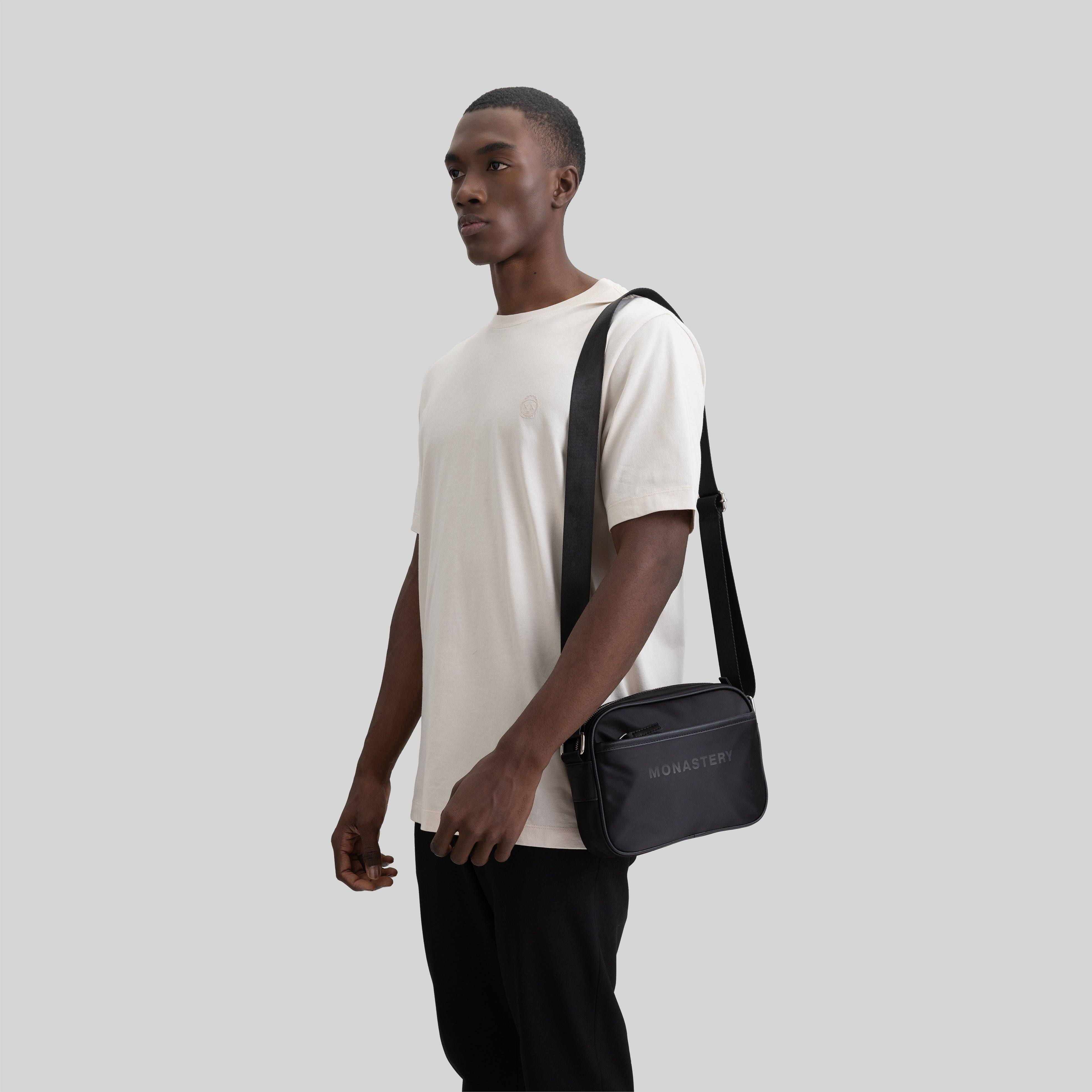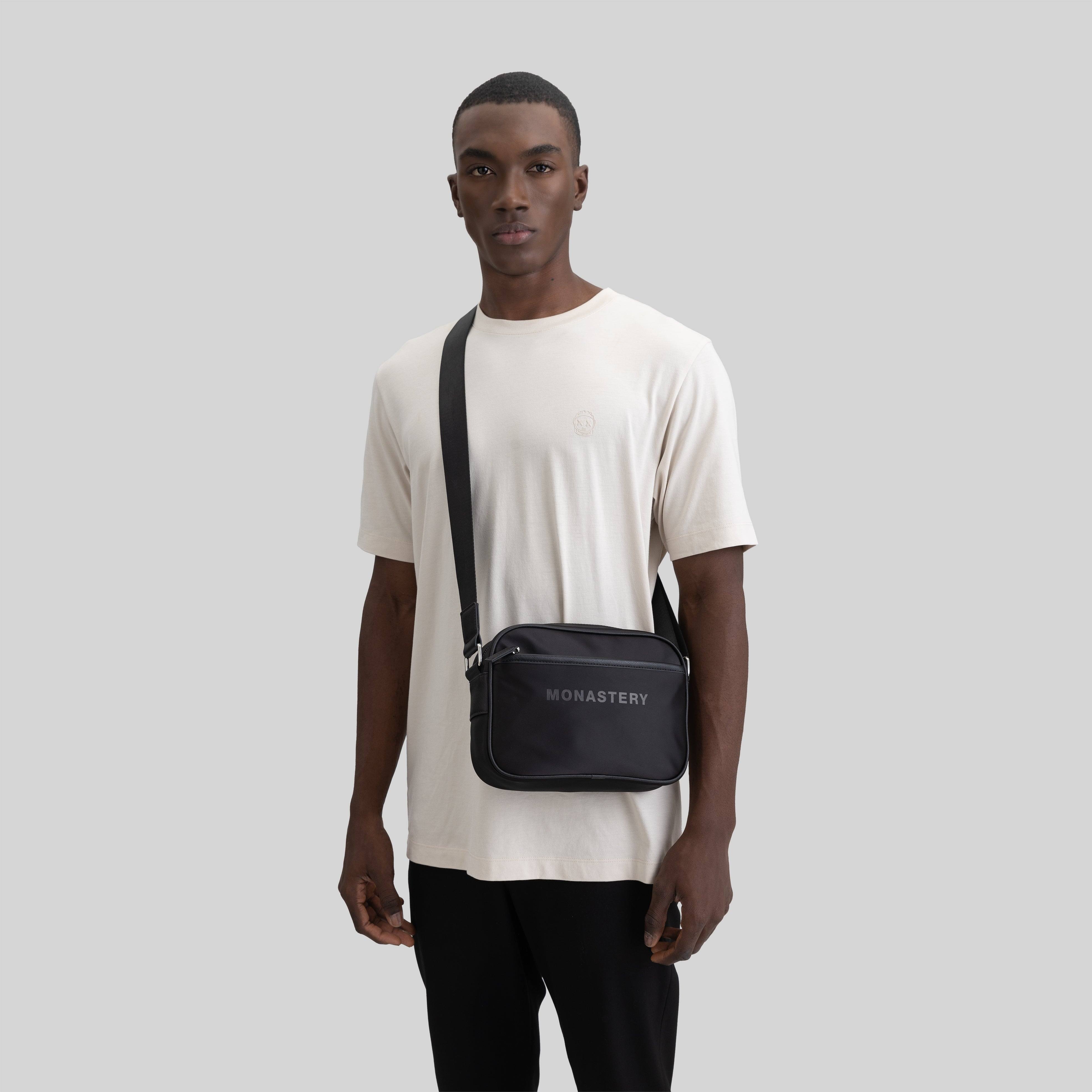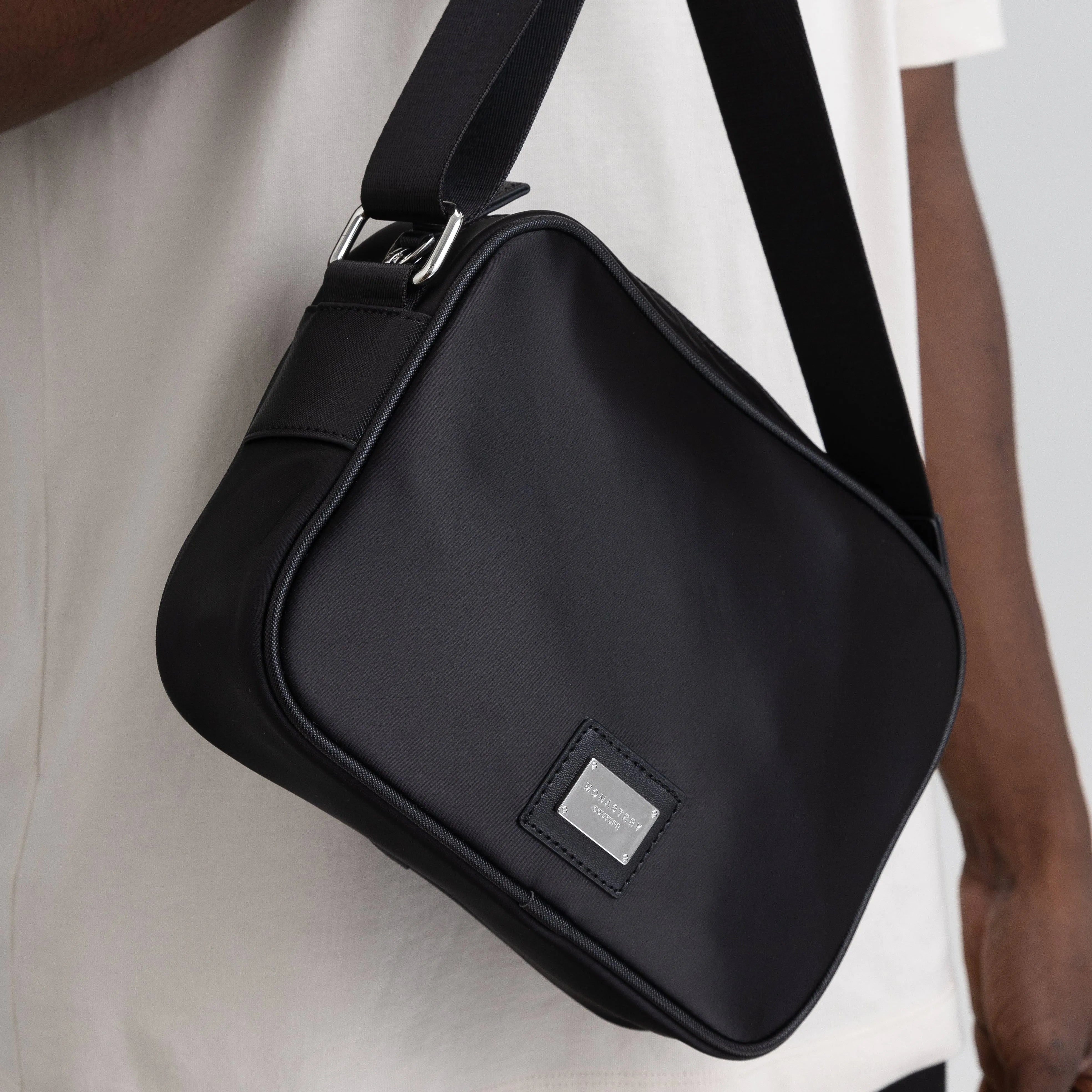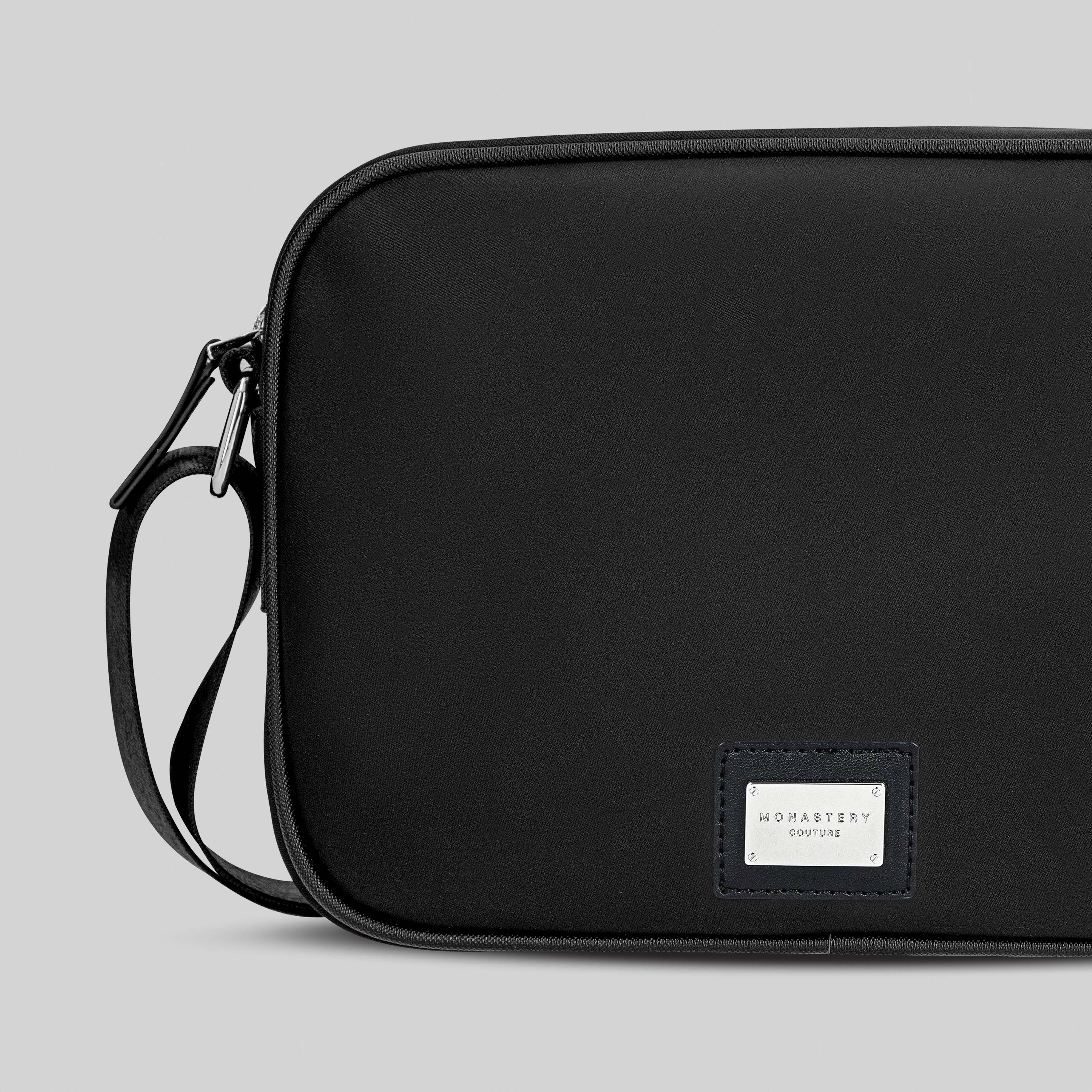 El FannyPack Alfa está elaborado en nylon y ofrece amplio almacenamiento con múltiples bolsillos. Destaca por tener el icónico logo de la marca estampado en su cara delantera, así como una placa con el logo Monastery Couture repujado sobre metal, que combina con sus herrajes y cierres. Además, cuenta con una cargadera en Jacquard que muestra sutilmente el logo de la marca entre su tejido, y refuerzos en las puntas para añadir durabilidad y dinamismo.