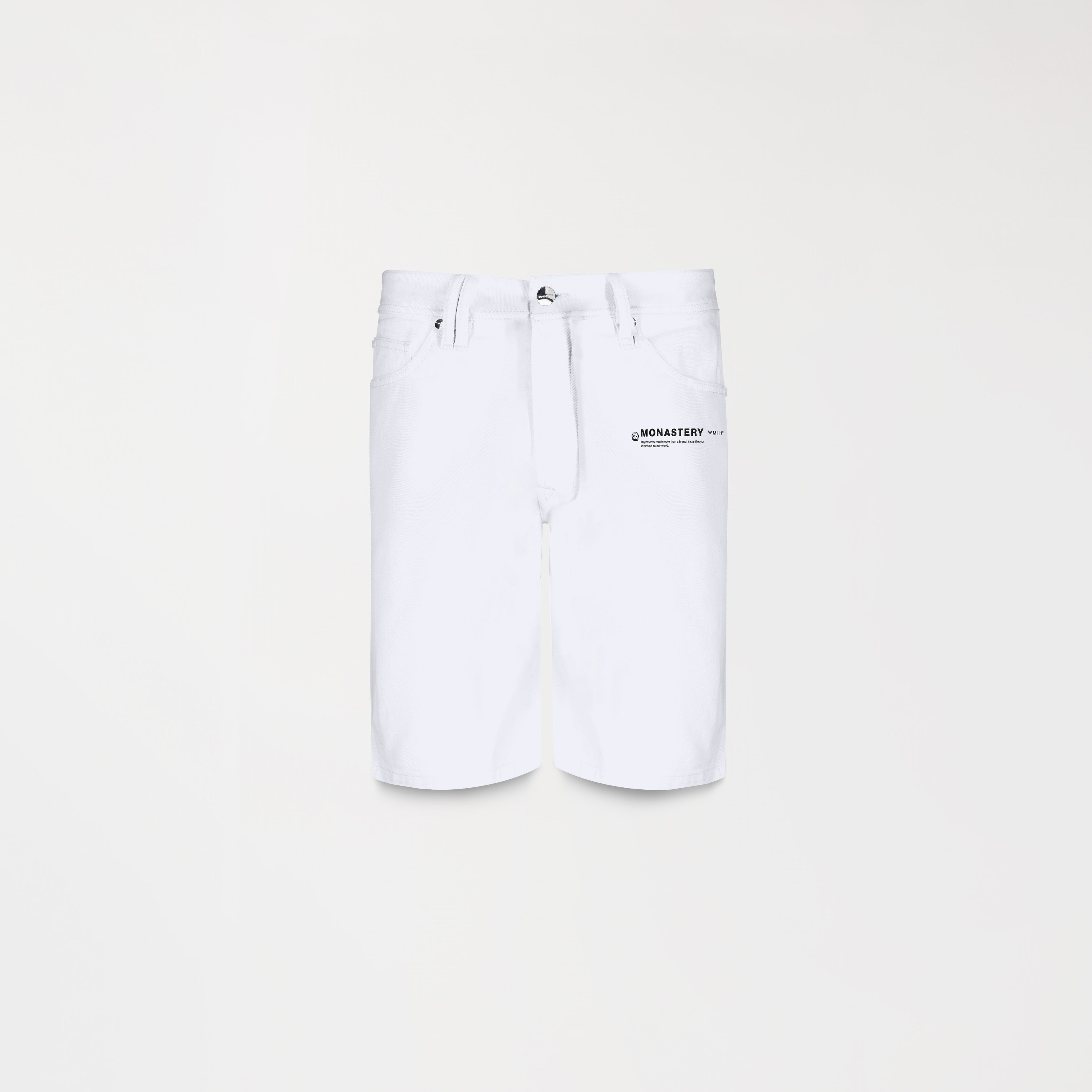 Denim short masculino 5 bolsillos, elaborado en silueta regular en 100% algodón, que le brinda comodidad y resistencia. Pantrer presenta en frente un estampado plano de nuestro logo Monastery acompañado de diferentes iconos de nuestra marca, además lleva un cordón estampado con nuestra icónica frase, junto a sus detalles métalicos contramarcados del logo Monastery, hacen éste artículo perfecto para lucir.
