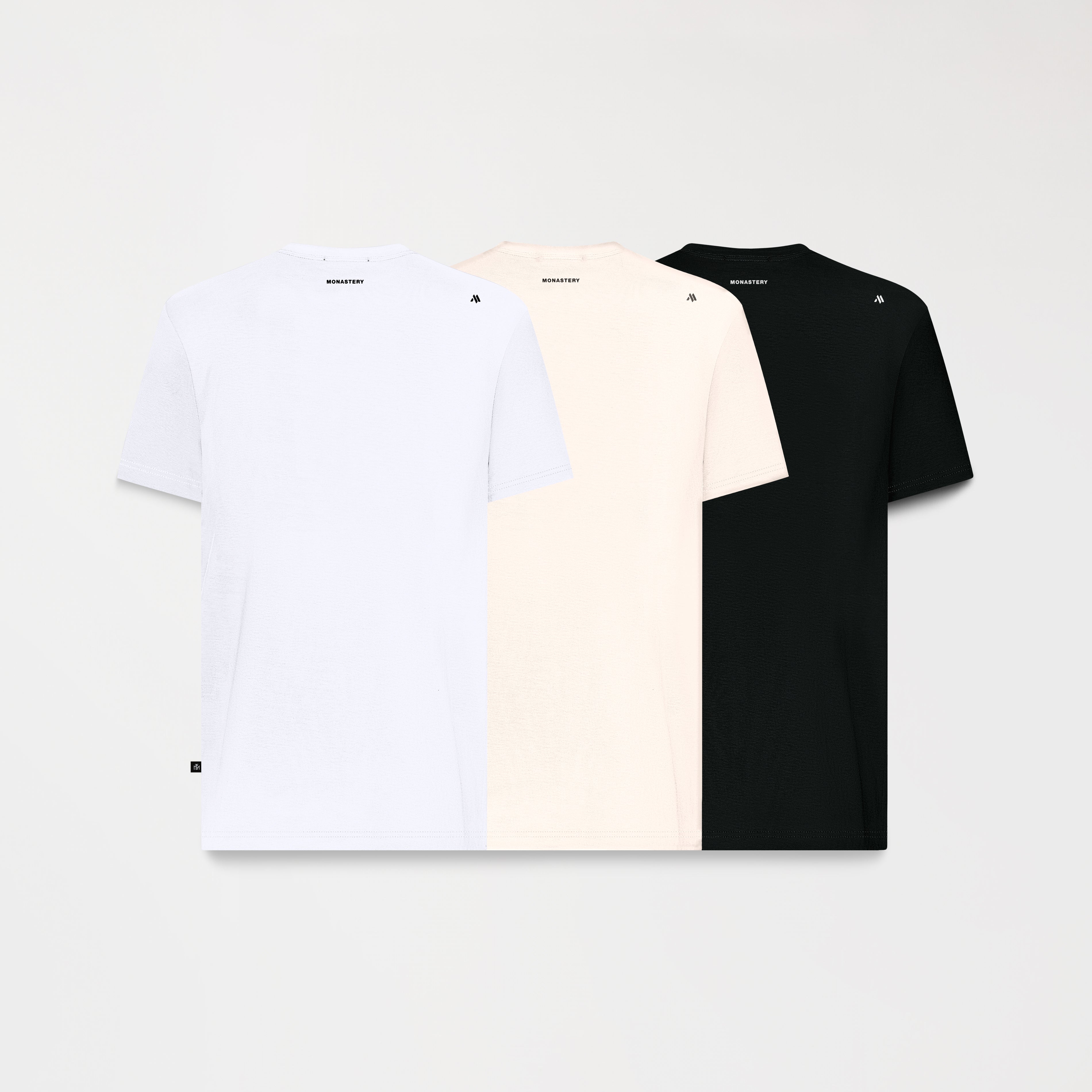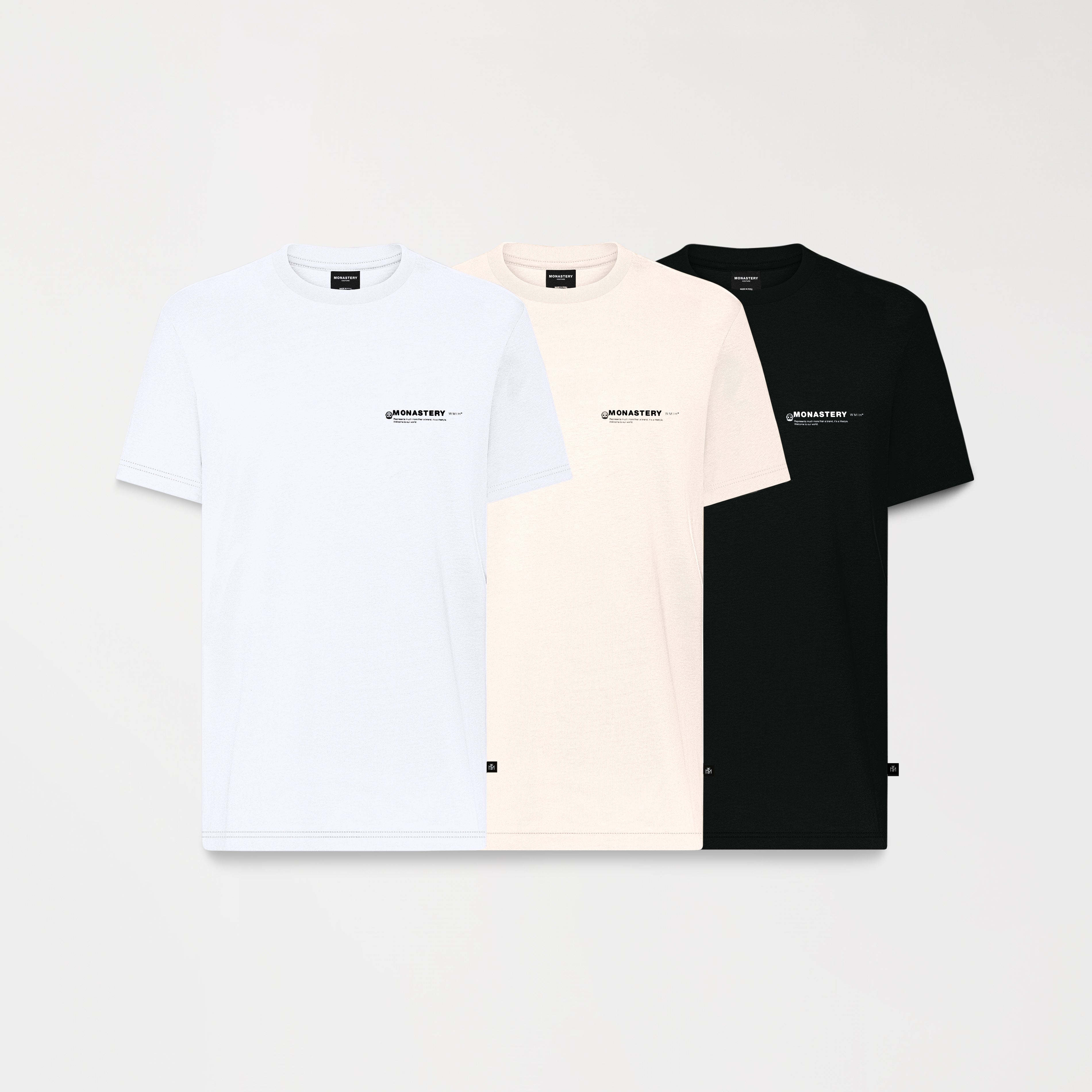 Pantro es un tripack de camisetas, elaborado en silueta regular en algodón 100% pima peruano exclusivo para Monastery. En frente centro presenta nuestro logo Monastery acompañado de diferentes iconos de nuestra marca, creado bajo combinación de técnicas plano y alta densidad, en espalda nuestros logos insignia en alta densidad, convirtiendo esta referencia en un artículo fresco y cómodo, perfecto para tu vestir del día a día.