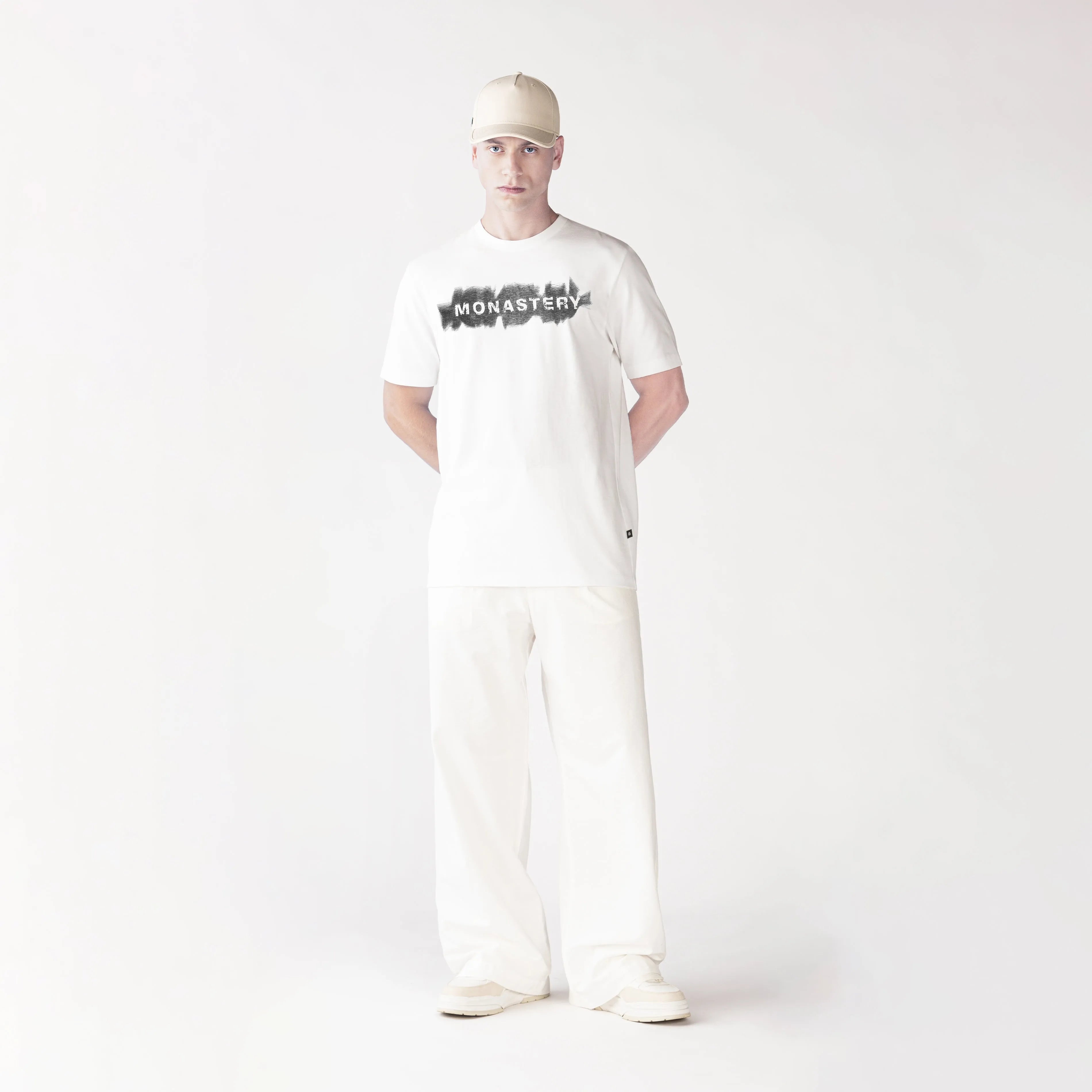 Te presentamos la camiseta Plein para hombre, confeccionada en algodón Monastery de alta calidad. Esta camiseta de silueta regular destaca por su arte en el frente, que combina un estampado plano con texto en un fondo de tela, creando un efecto visual distintivo y contemporáneo.