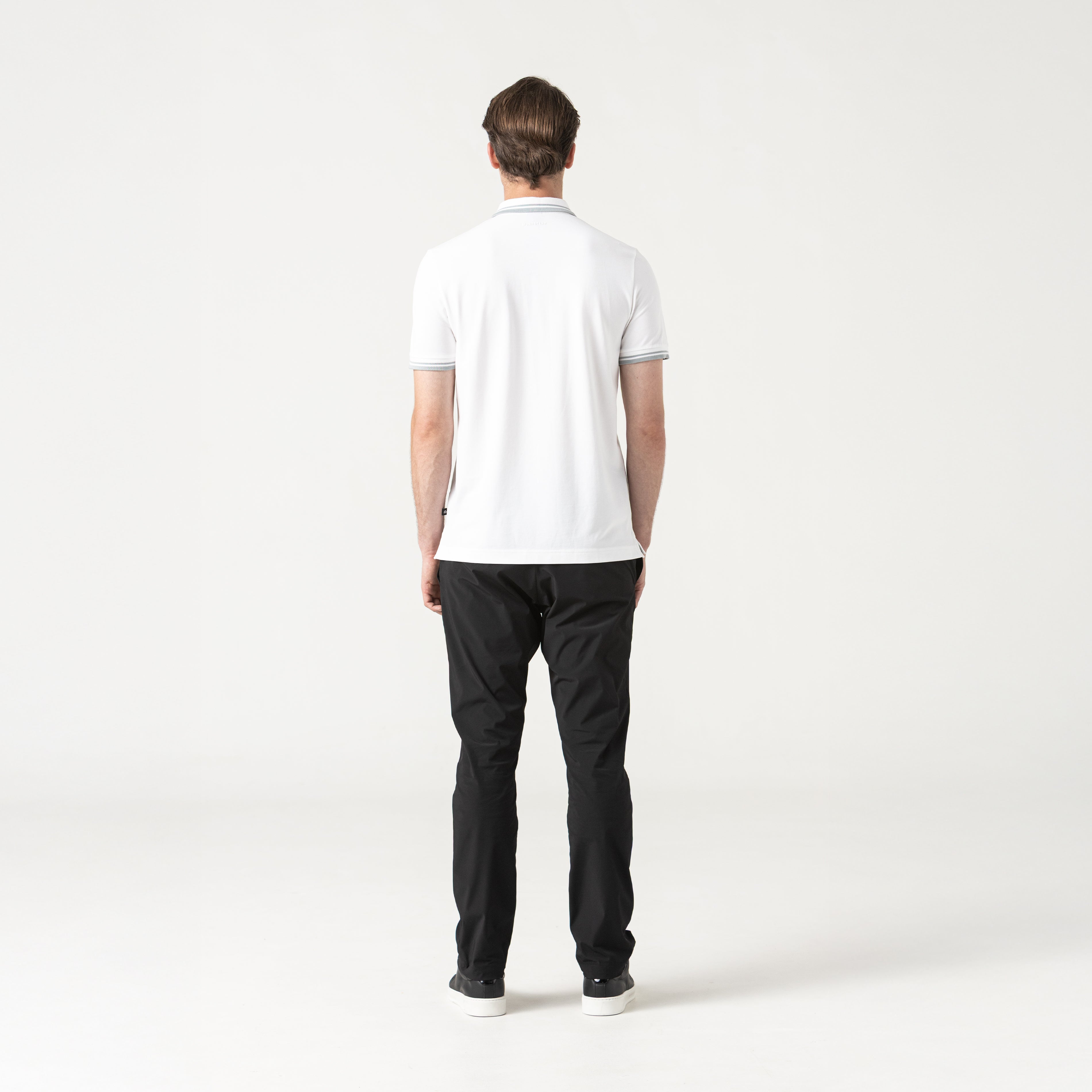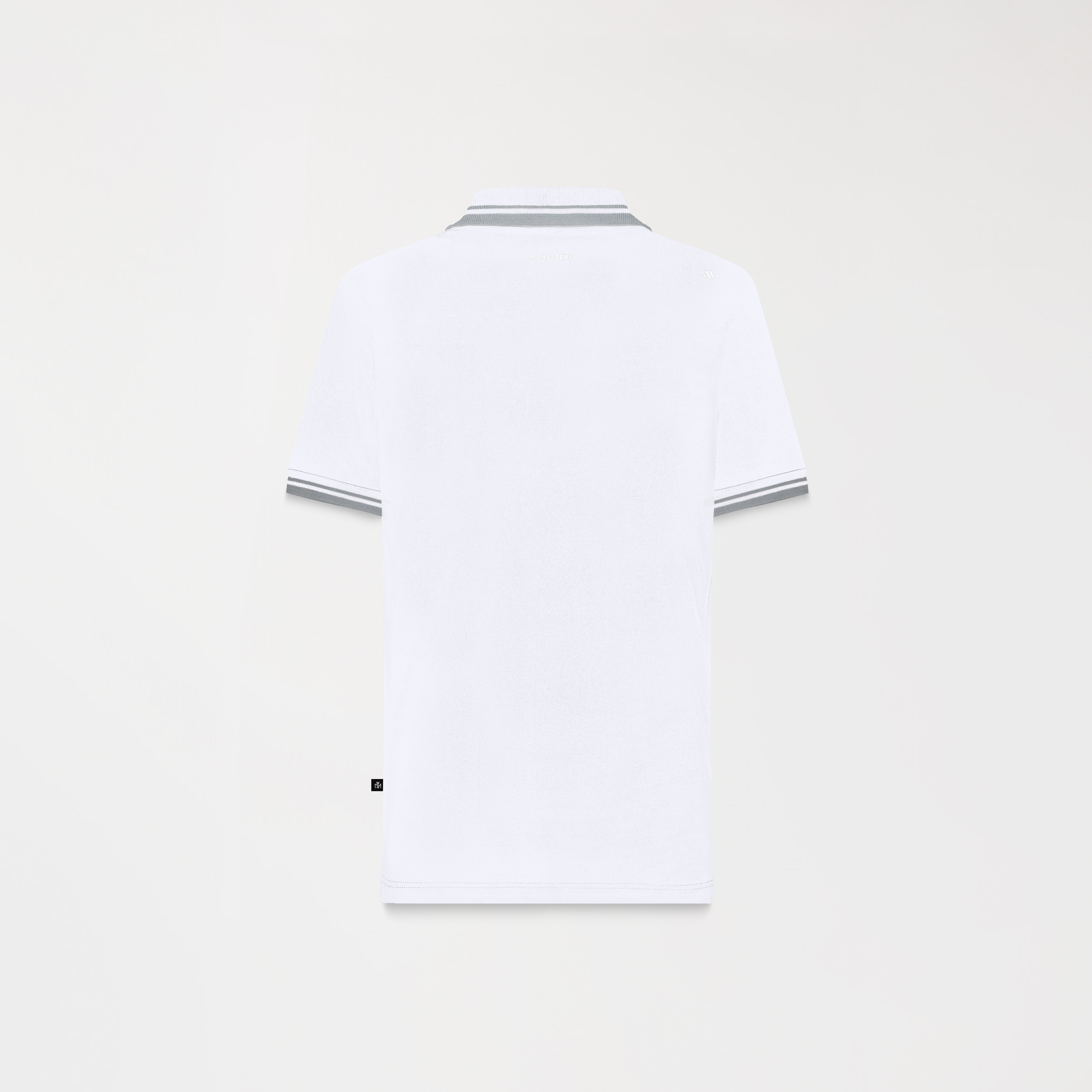 Samur es una camiseta tipo polo para hombre, elaborada en algodón 100% pima peruano exclusivo para la marca. Creando una referencia fresca y cómoda, con una silueta clásica y elegante, presenta un diseño renovado cuello y puños en tejido rectilíneo con líneas en contraste, hechos especialmente para ésta referencia; a lo largo de la caída de hombre tiene arte de nuestro logo Monastery bajo técnica de estampado plano y espalda con logos insignia en alta densidad. Convirtiendo este artículo ideal para lucir en cualquier ocasión.