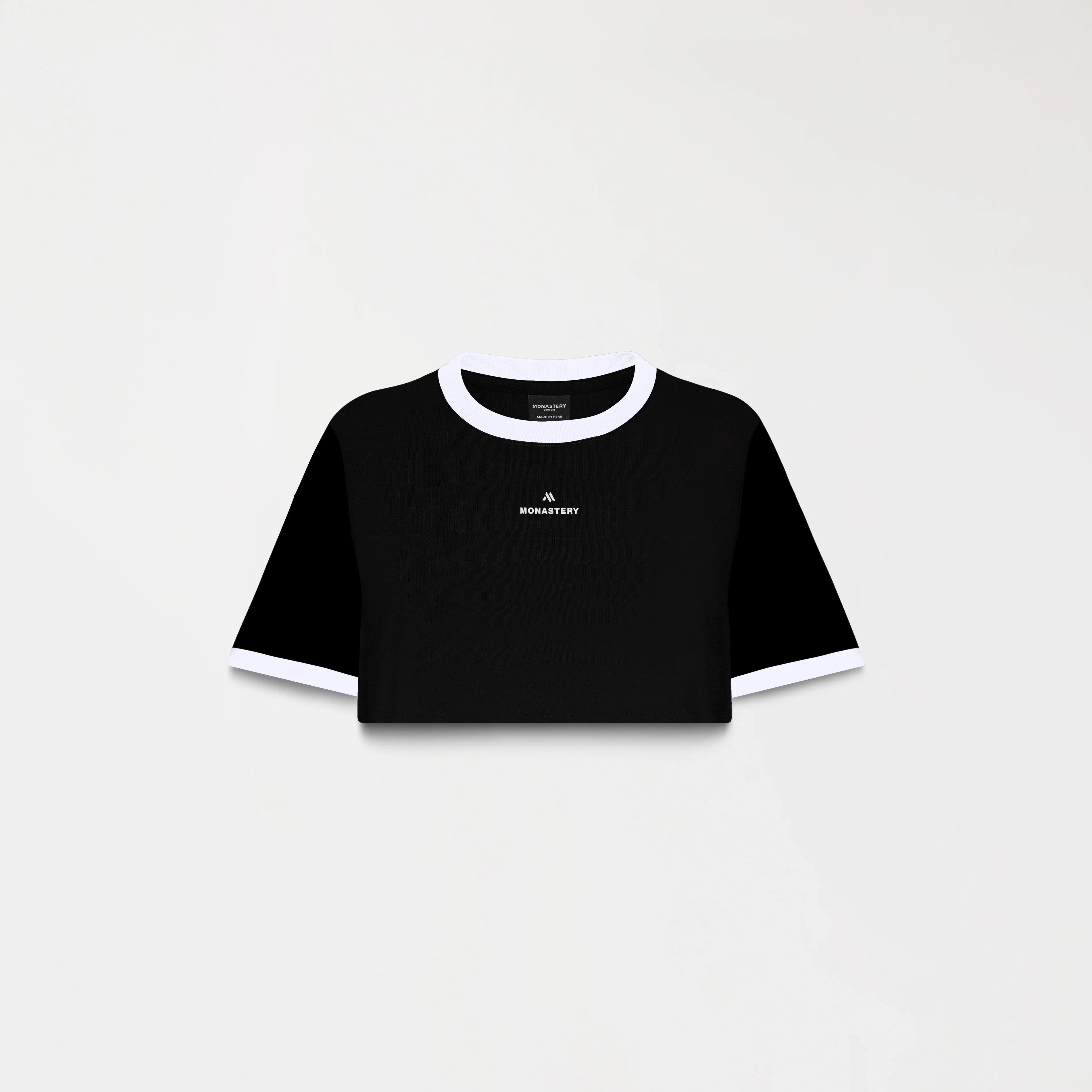 Crop top para mujer en algodón peruano exclusivo para Monastery, elaborada en silueta pequeña, Senn cuenta con logo Monastery e insignia en técnica plastisol + transfer brillante. Esta referencia cuenta con detalles en tono contraste que le dan un toque distintivo y moderno, este crop top es ideal para quienes buscan un look cómodo y sofisticado gracias a su gran base textil.