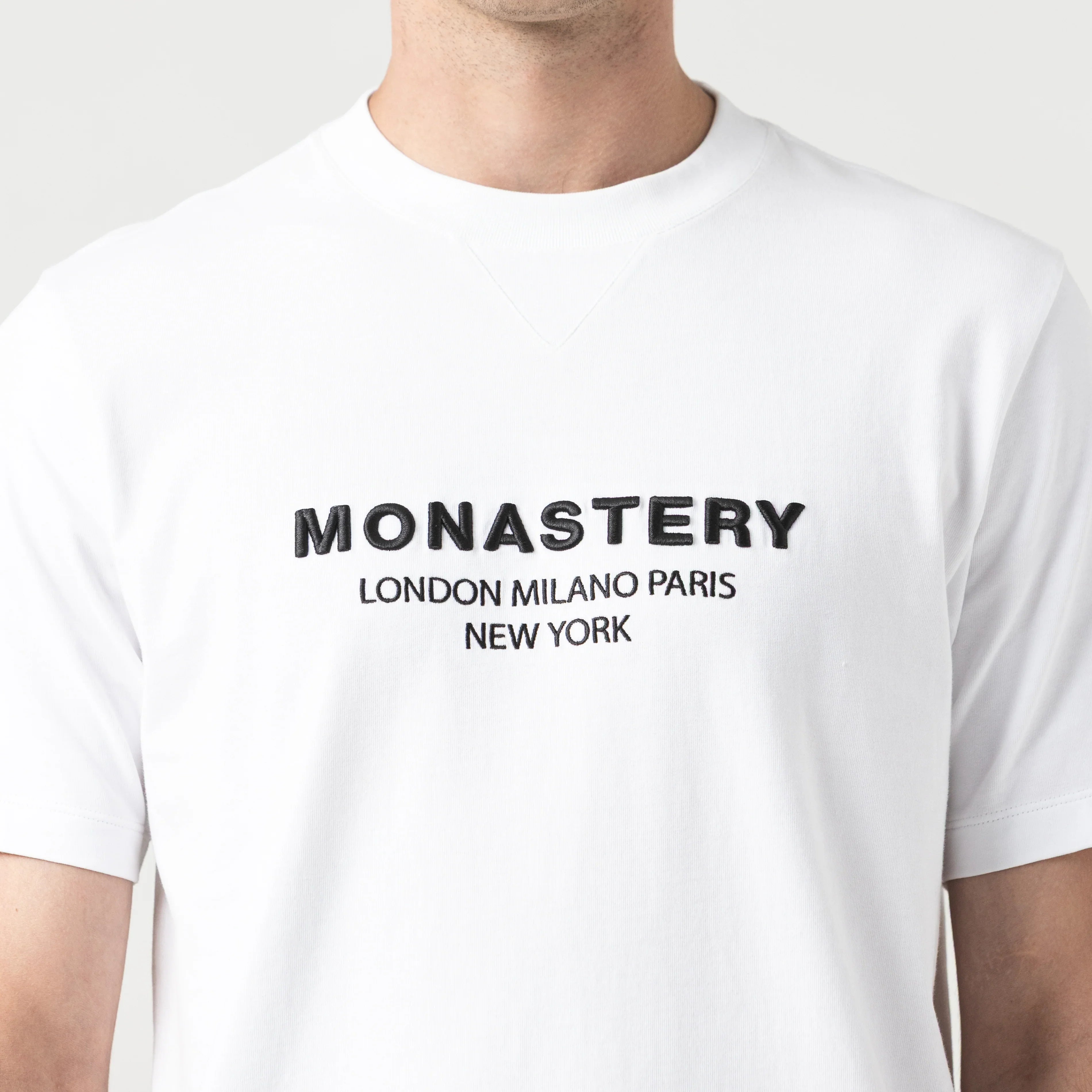 Sharam es un t-shirt masculina, elaborada en 100% algodón Peruano exclusivo para Monastery. En frente, esta prenda cuenta con nuestro icónico logo Monastery acompañado de las ciudades referentes de nuestro ADN bajo la técnica bordado 3D y plano. Sharam es una prenda con detalles renovados, como su cuello triangulo en rib 2,5cm, convirtiéndose en un artículo infaltable de tu vestuario.