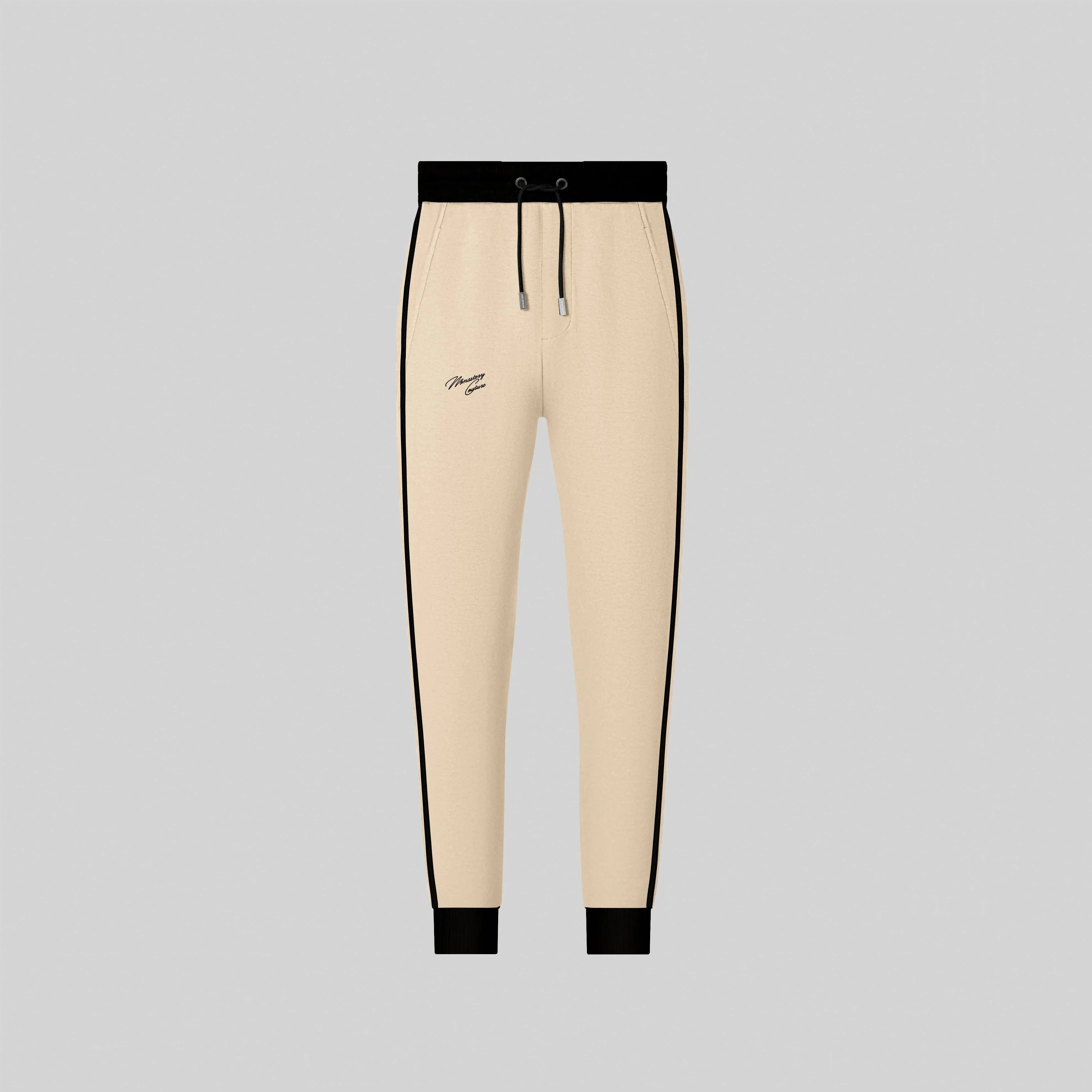 Pantalón deportivo, producido en tejido de punto Double face. Este conjunto presenta placa metálica Monastery Couture y líneas laterales en contraste, agregando un toque distintivo a la prenda.