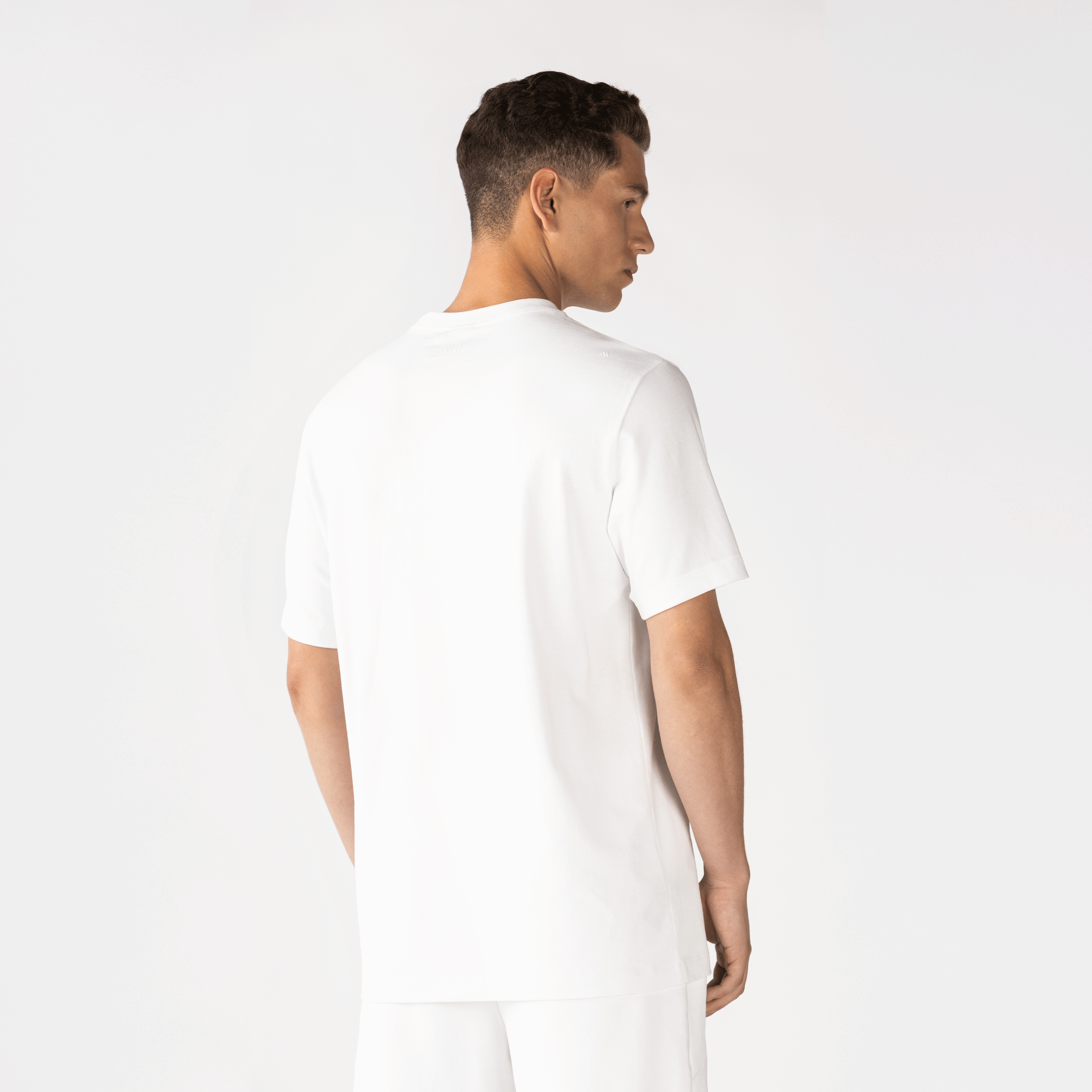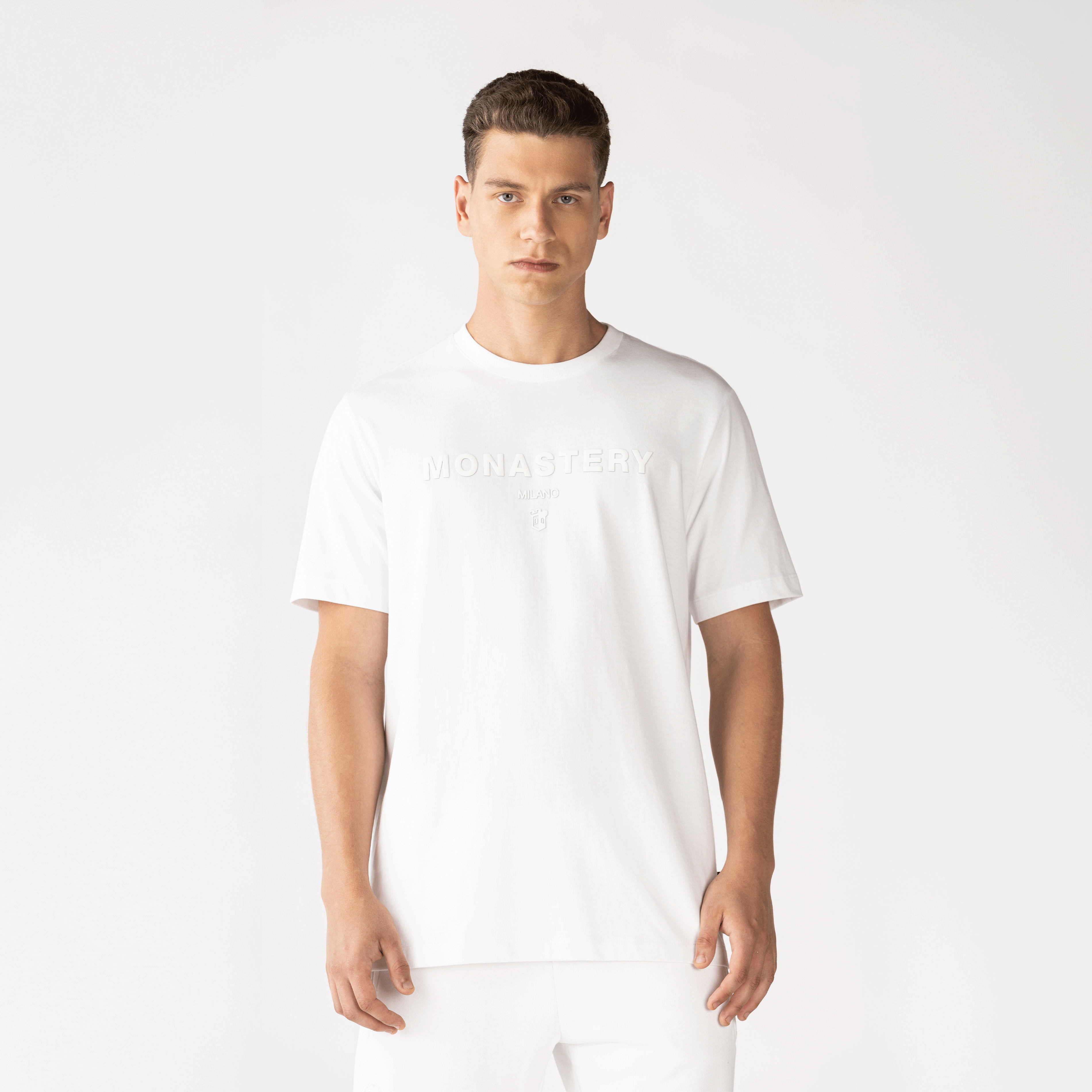 La camiseta Warking blanca confeccionada en una silueta regular y confeccionada en algodón Monastery, esta camiseta destaca por su arte en técnica de doble alta densidad en el frente, que crea un efecto visual único y atractivo. En la parte posterior, un estampado clásico en alta densidad añade un toque elegante y atemporal. Perfecta para lograr un look casual con un estilo distintivo, esta camiseta Warkwing se convierte en una pieza imprescindible para tu guardarropa.}